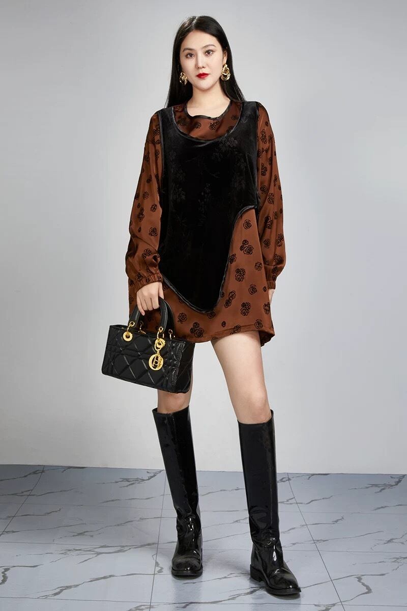 黒 茶色 ブラウス チュニック ワンピース アジアン