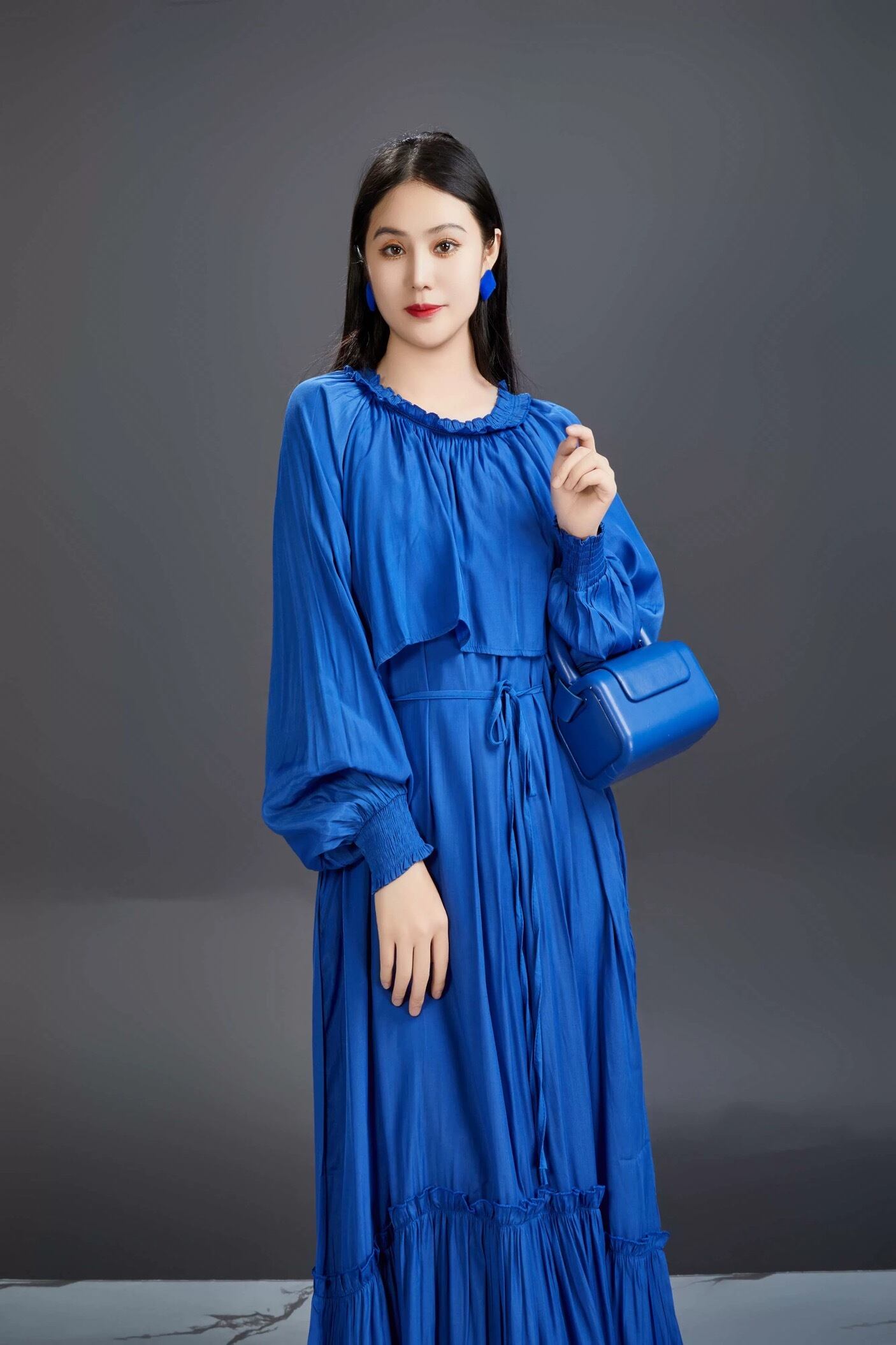 黒 ブラウス ブルー 紫 カジュアル ゆったり 長袖 黒