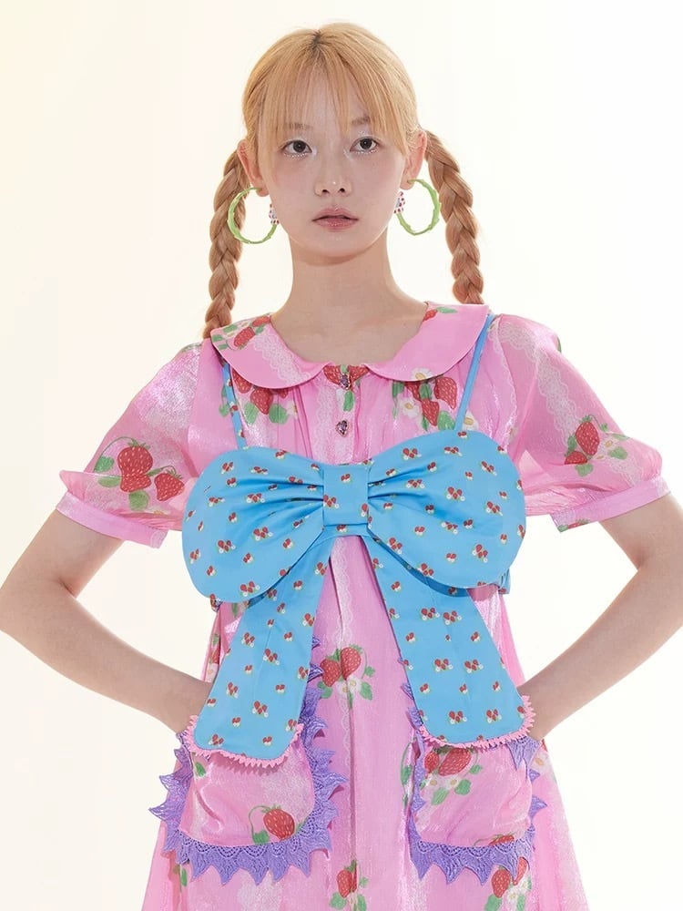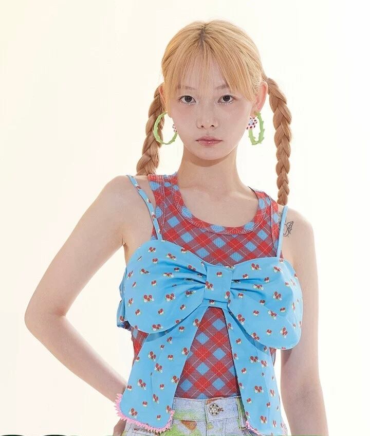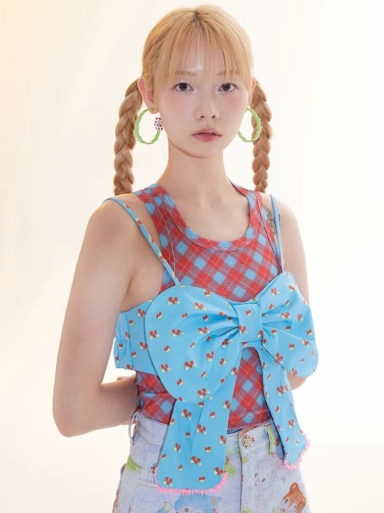 水色 リボン トップス キャミソール ガーリー ブラウス アクセサリー