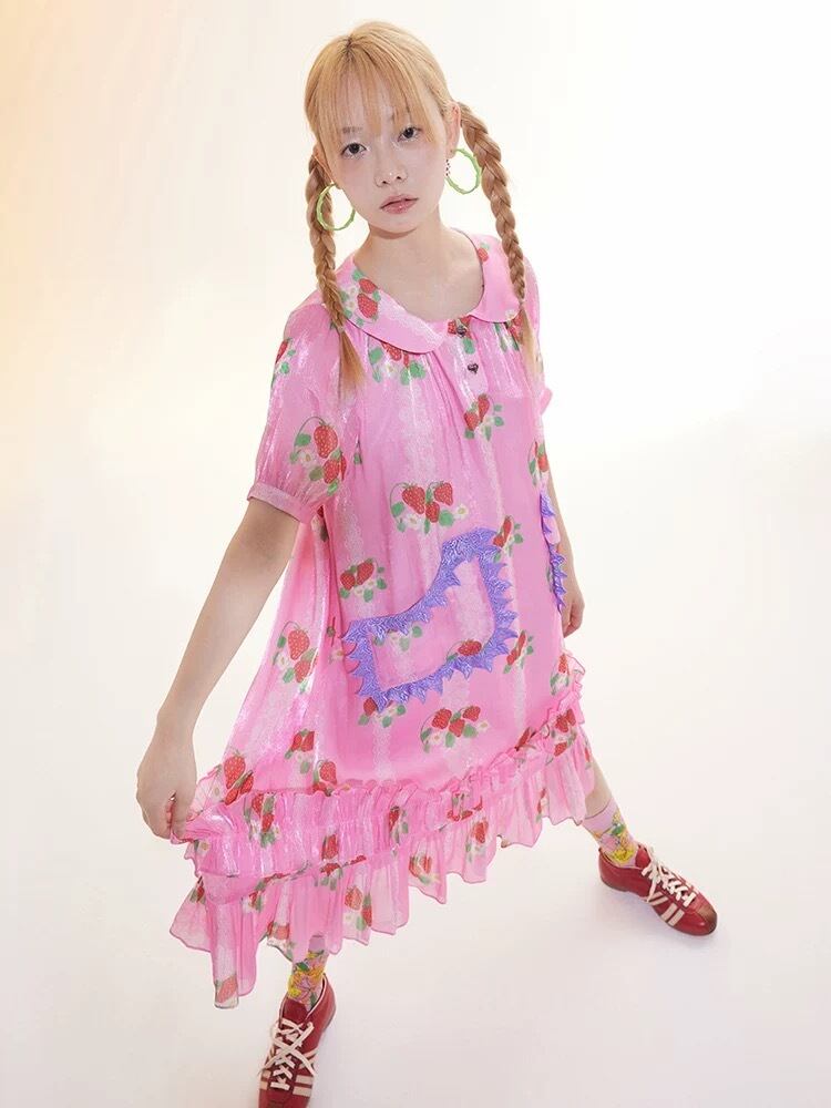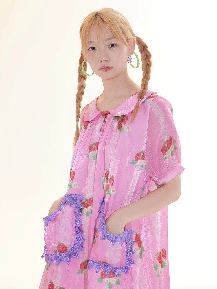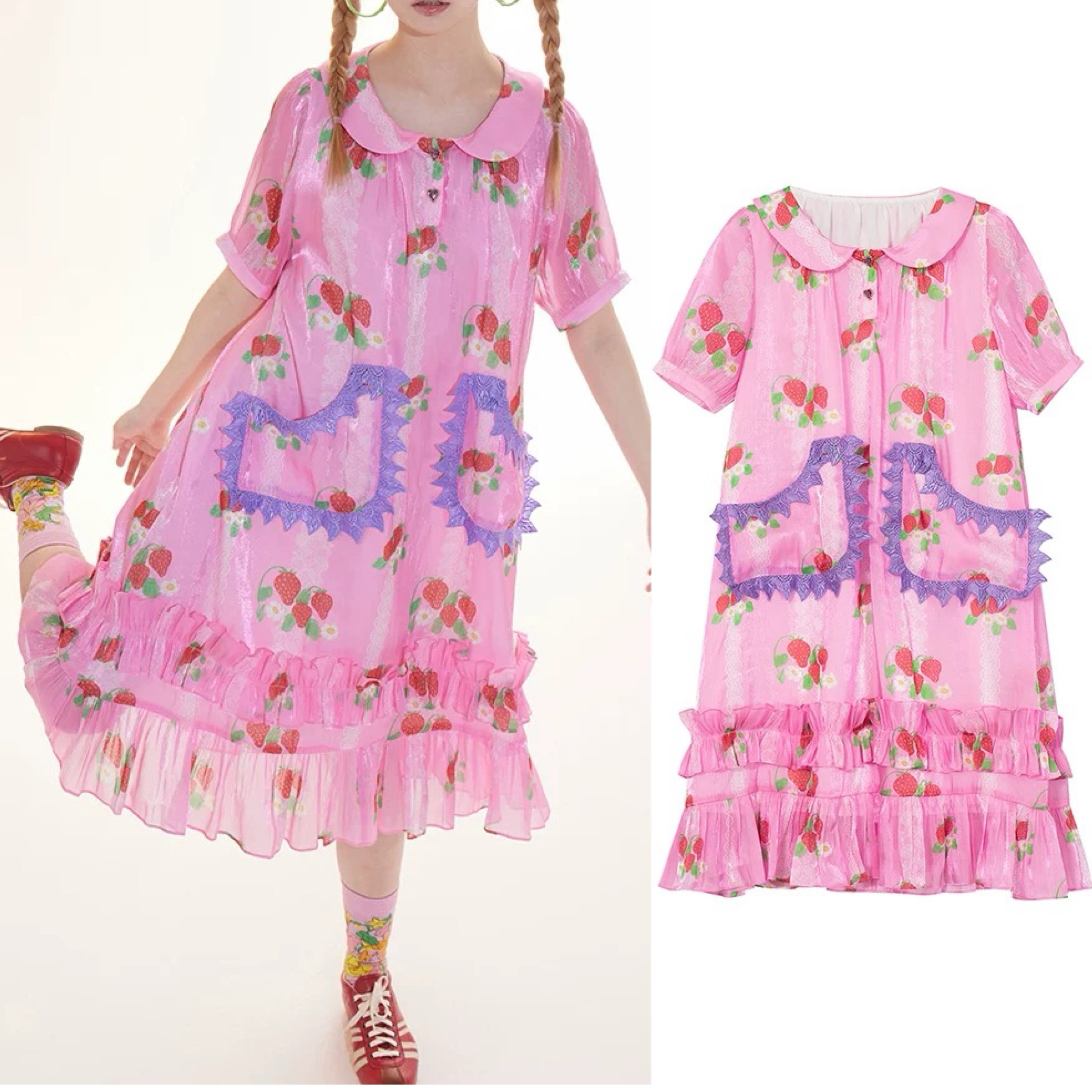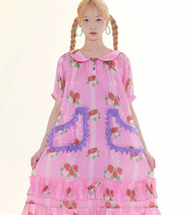 ピンク 丸襟 紫 ガーリー ワンピース ブラウス 可愛い 原宿