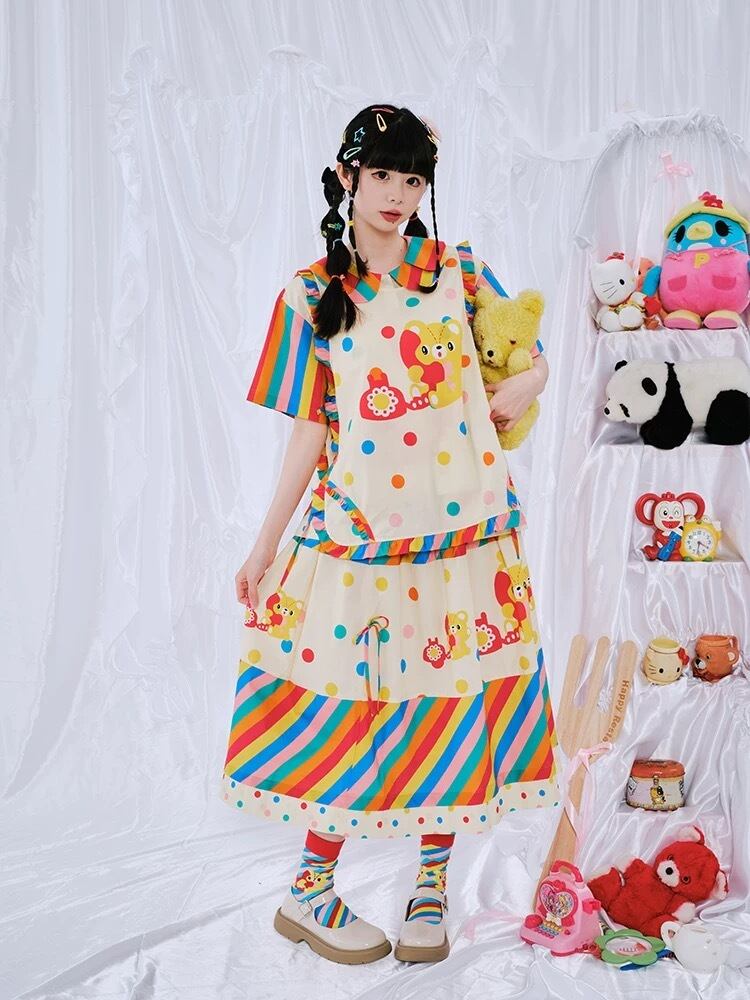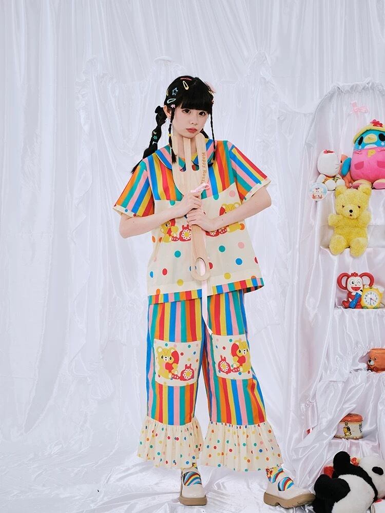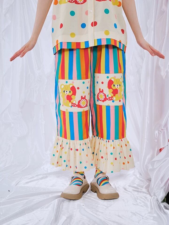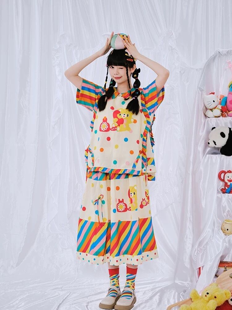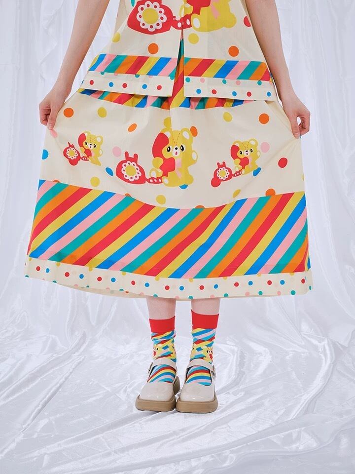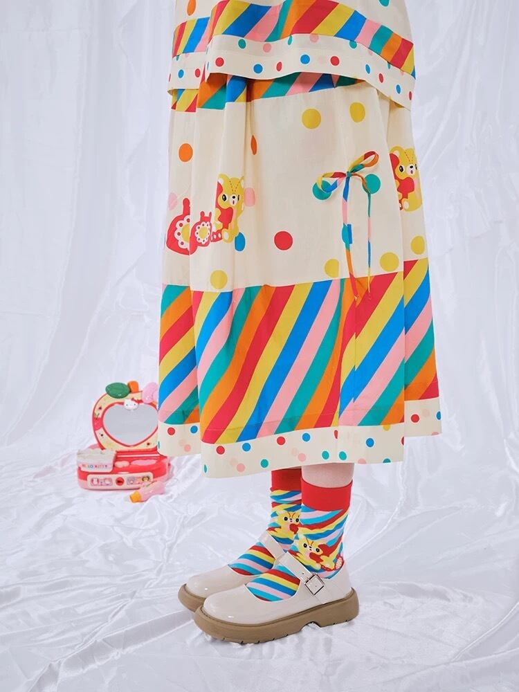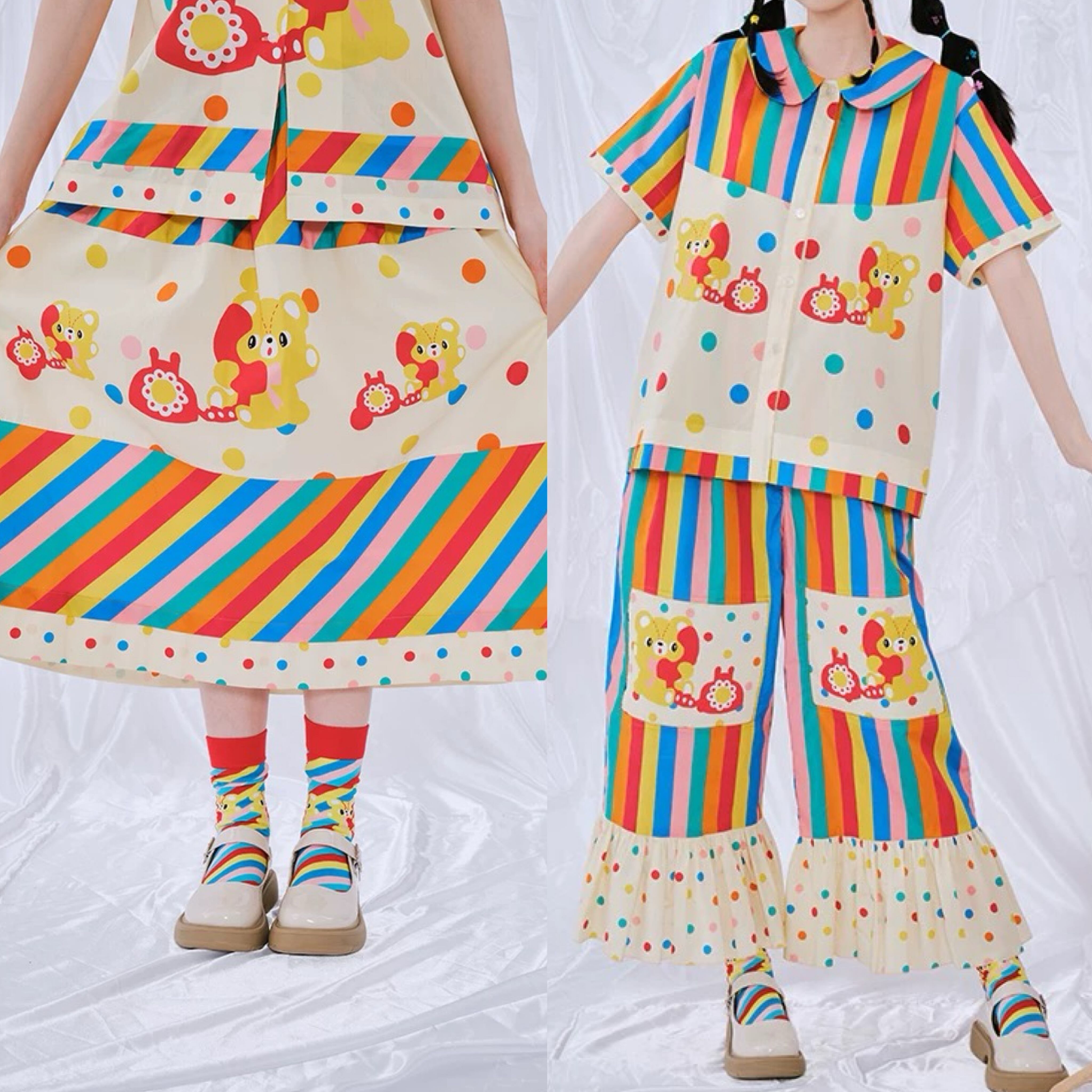 スカート 黄色 パンツ ズボン カジュアル レインボー オレンジ ボーダー 可愛い