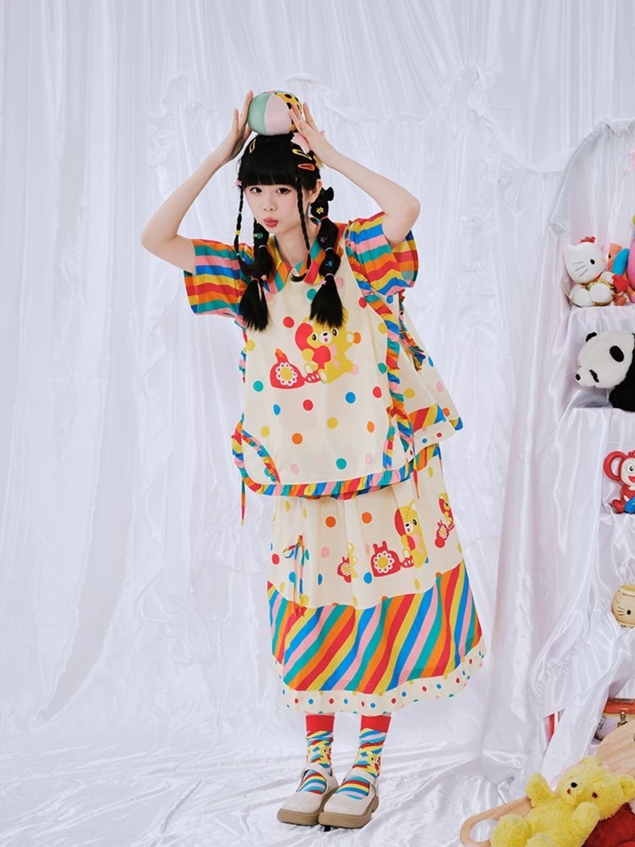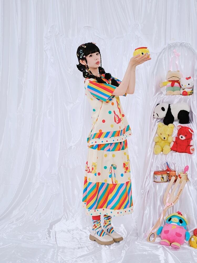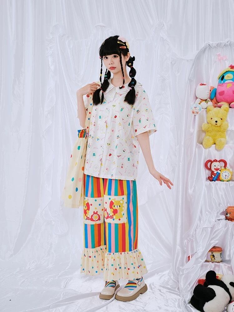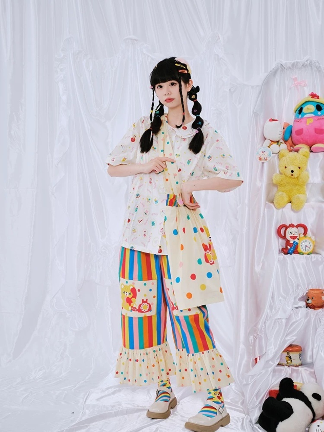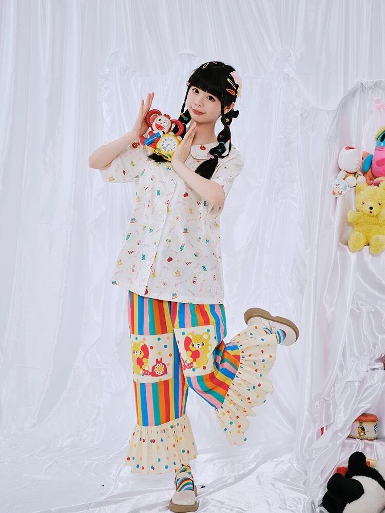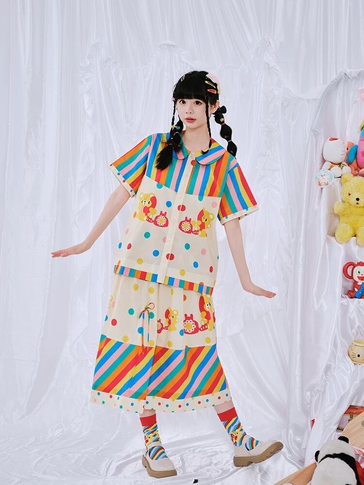 スカート 黄色 パンツ ズボン カジュアル レインボー オレンジ ボーダー 可愛い