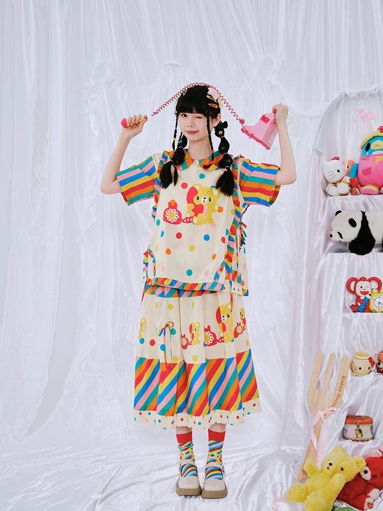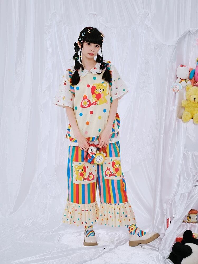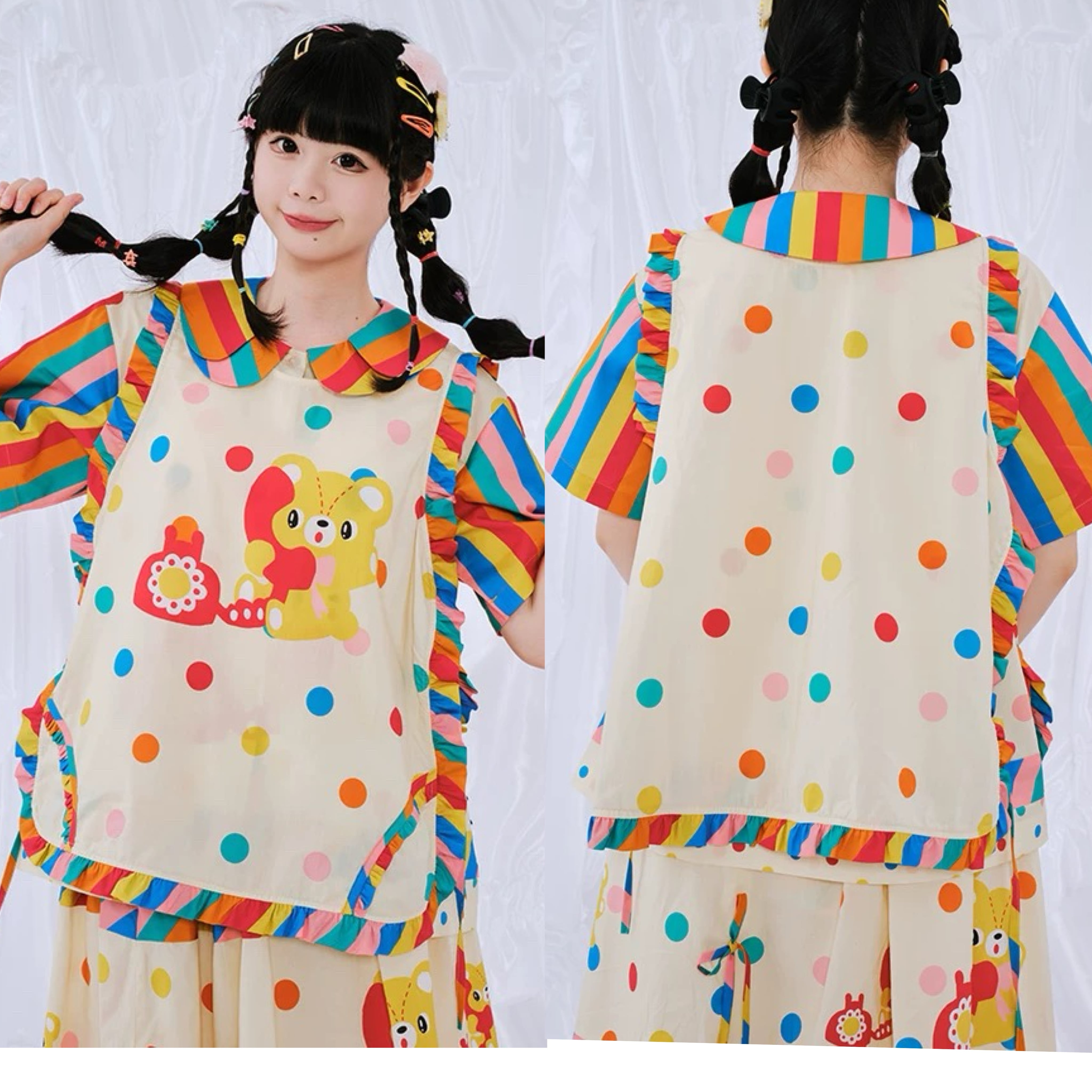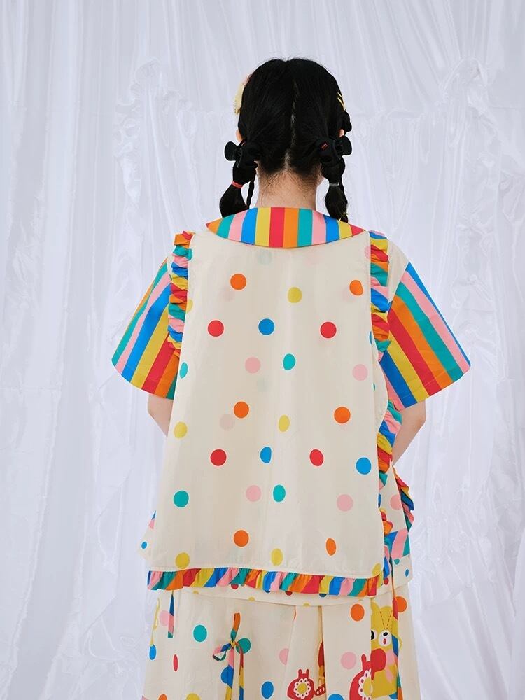 カラフル 水玉 ドット ベスト リボン ブラウス シャツ ガーリー