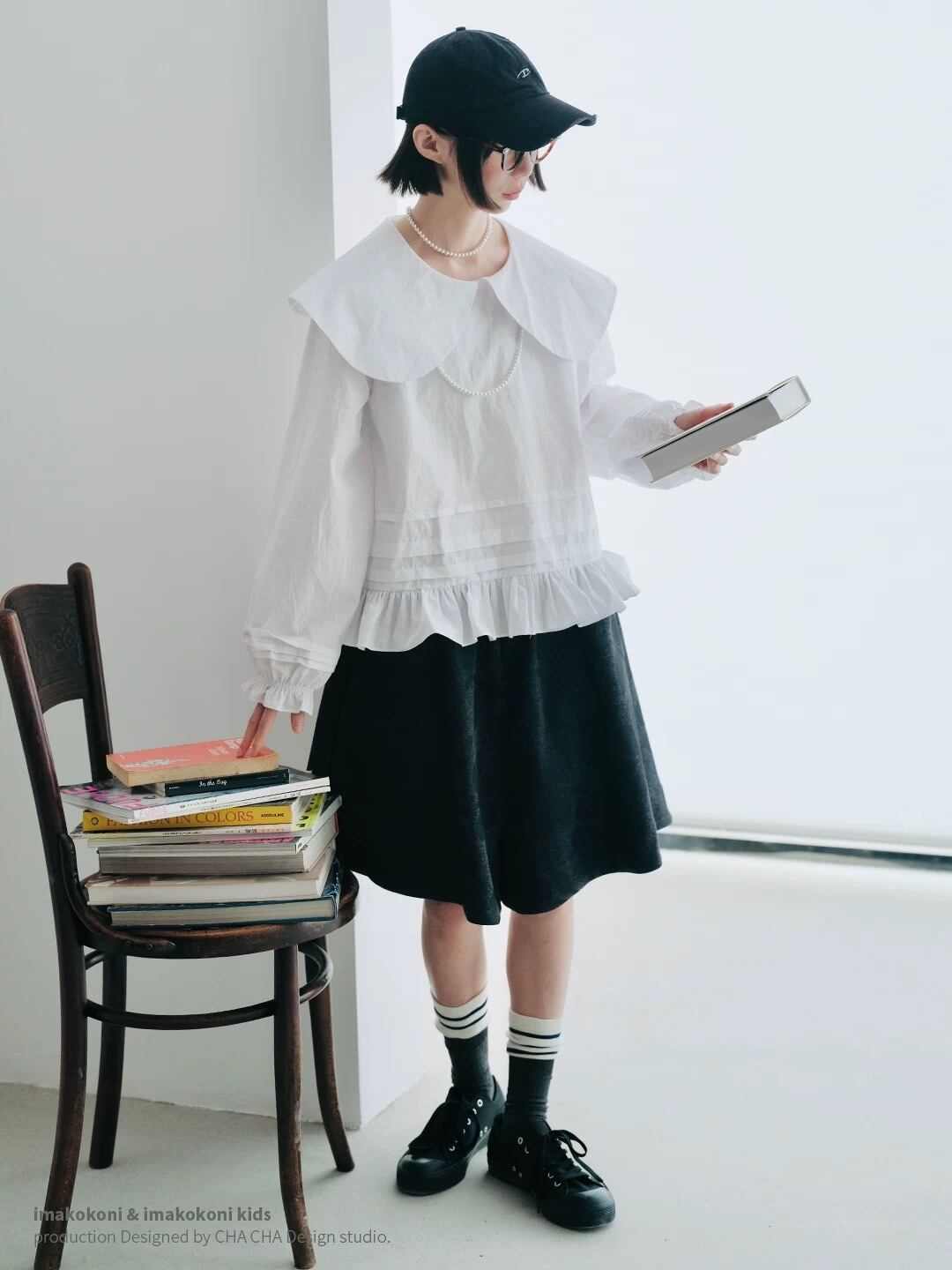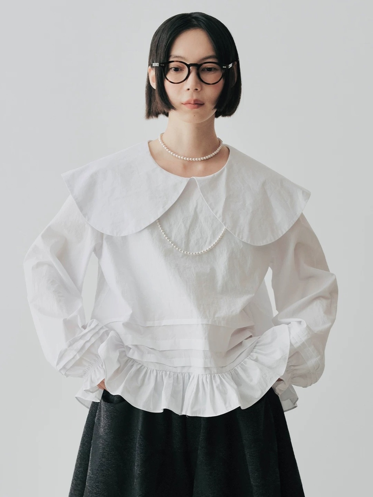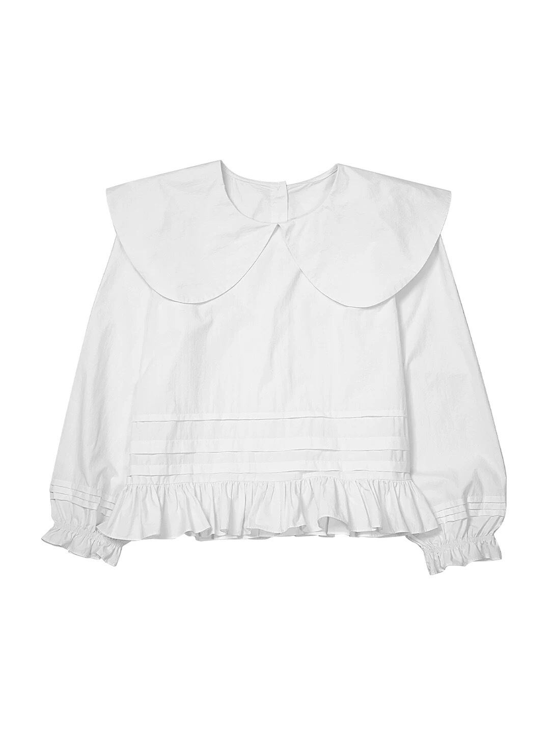 丸襟 デカ襟 ブラウス シャツ トップス シンプル 白 黒 カジュアル 可愛い
