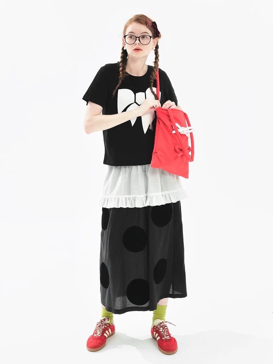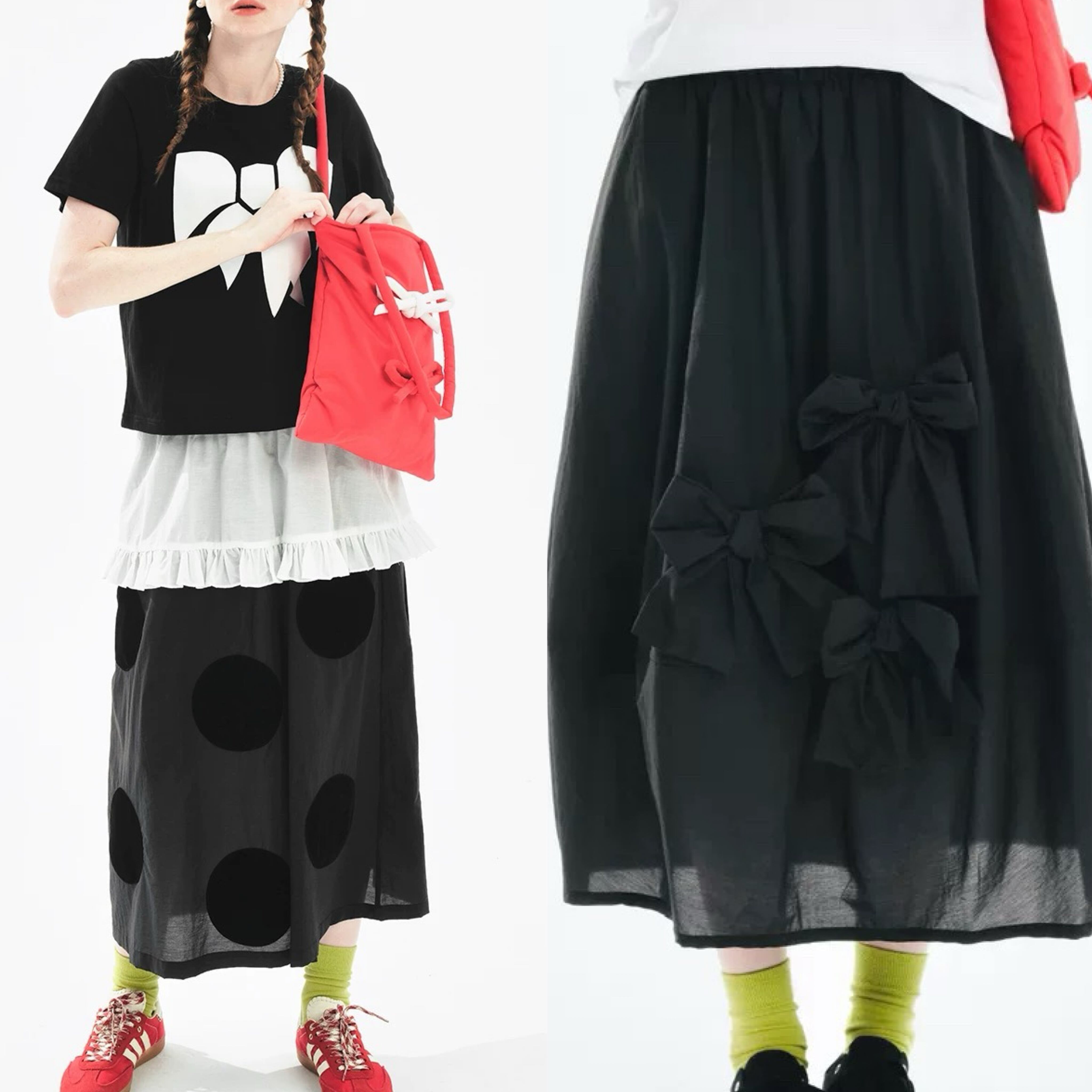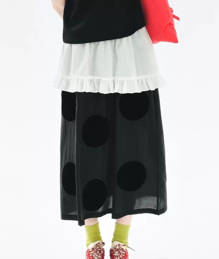 黒 水玉 ドット リボン ガーリー カジュアル ボトムス スカート