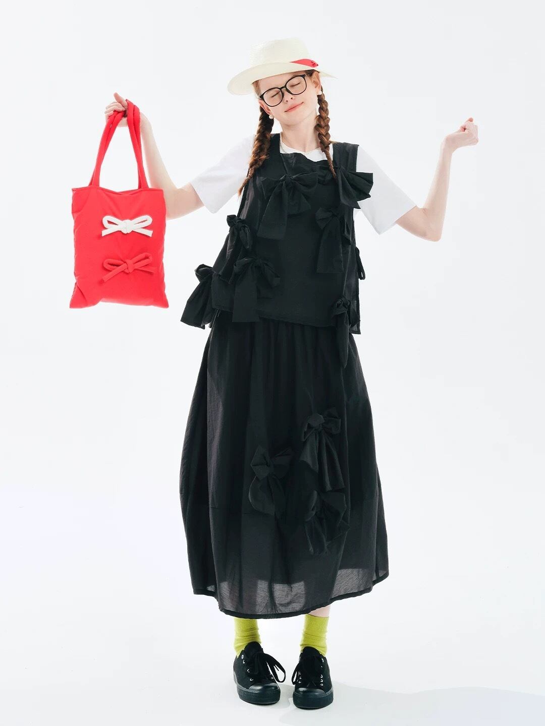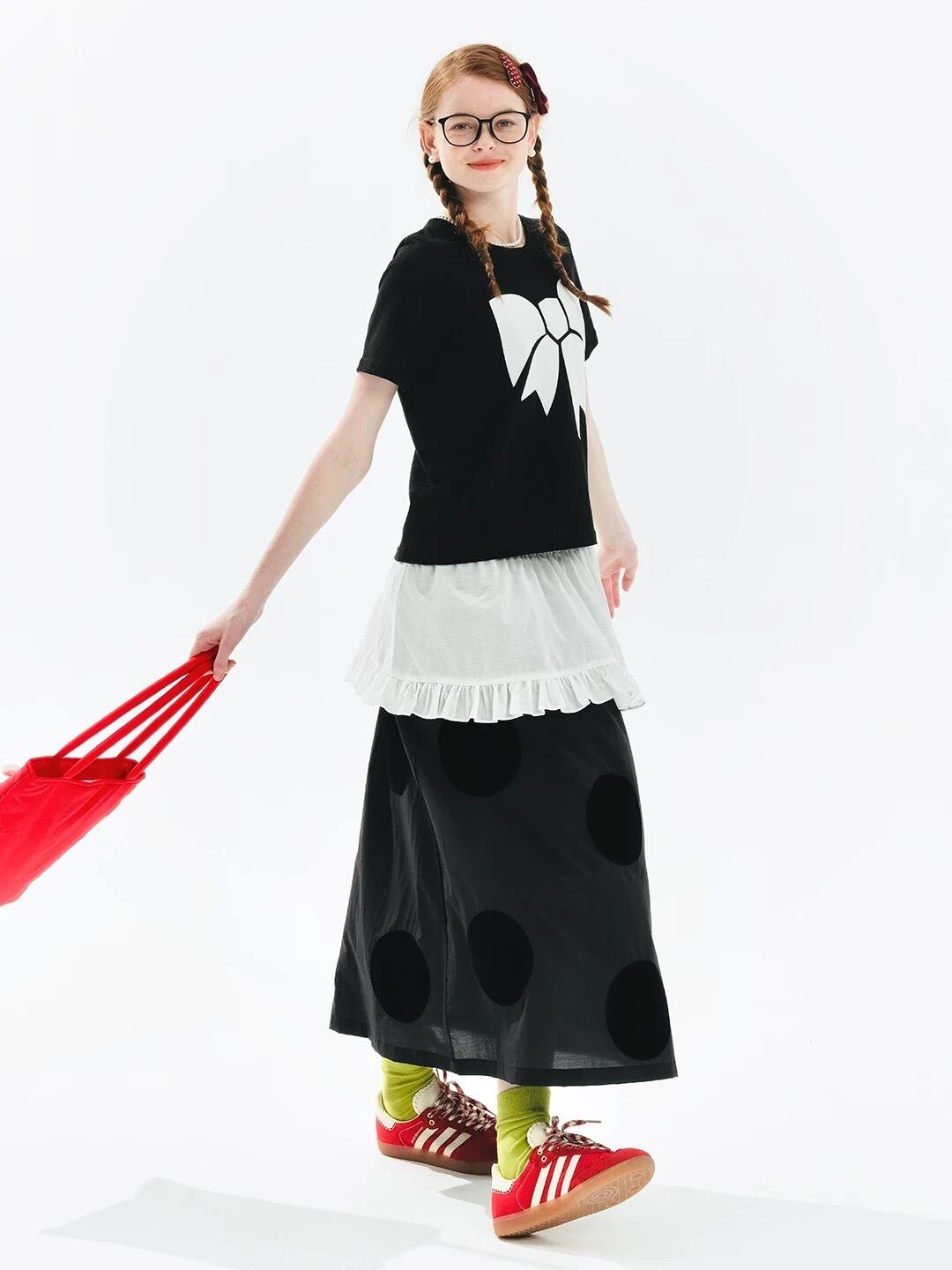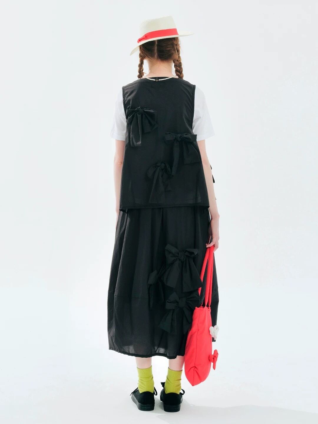 黒 水玉 ドット リボン ガーリー カジュアル ボトムス スカート