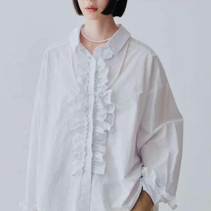 白 ブラウス シャツ リボン シンプル ガーリー 可愛い トップス