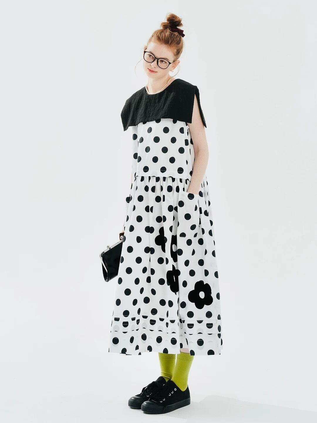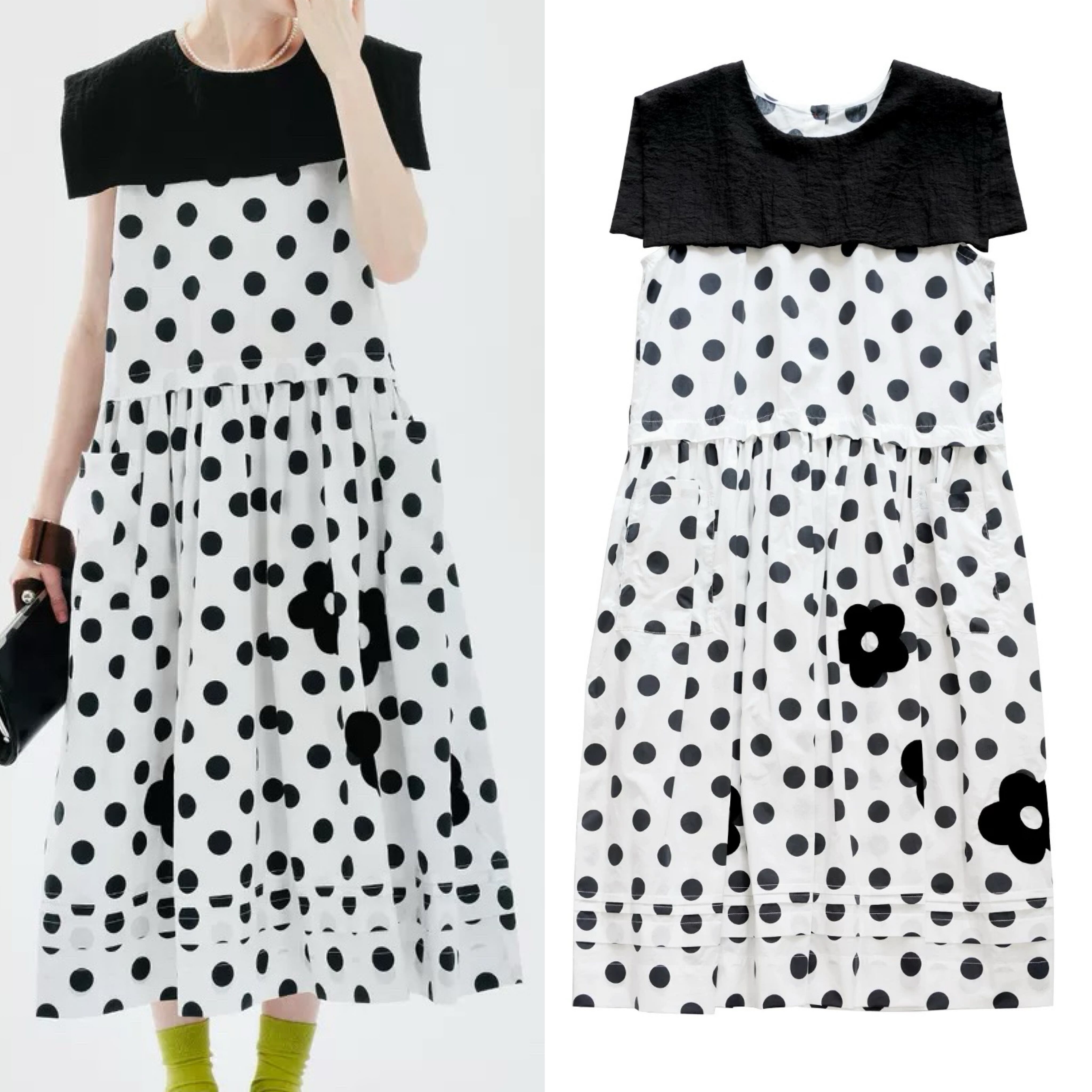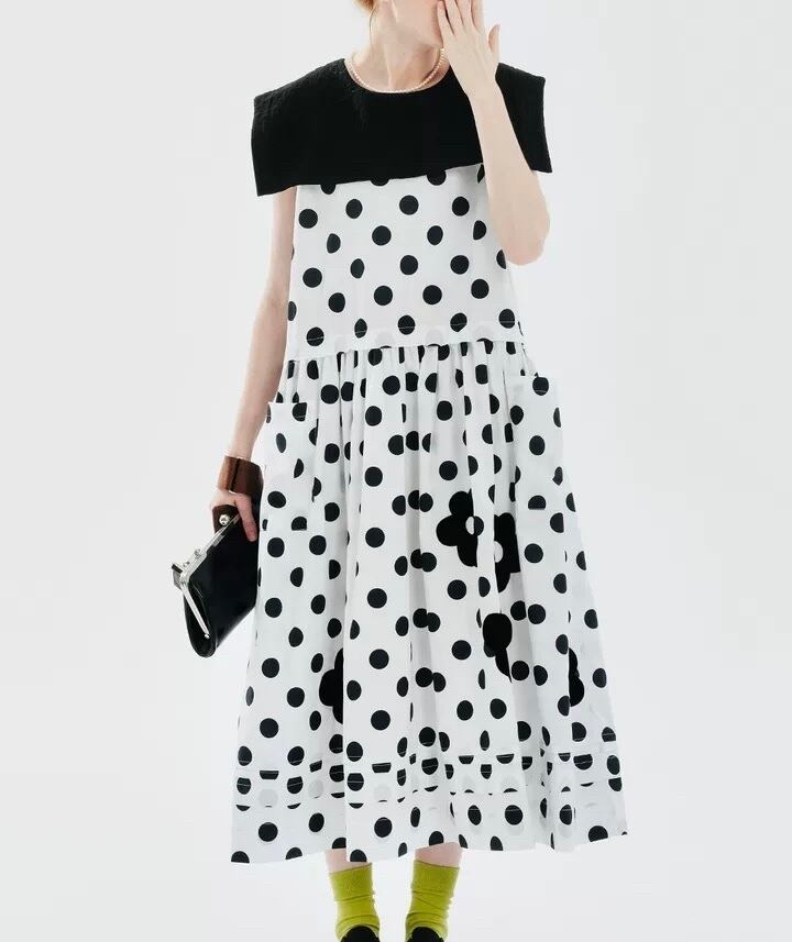 白 久保ち 水玉 ドット ブラウス セーラー ワンピース 可愛い ゆったり 原宿