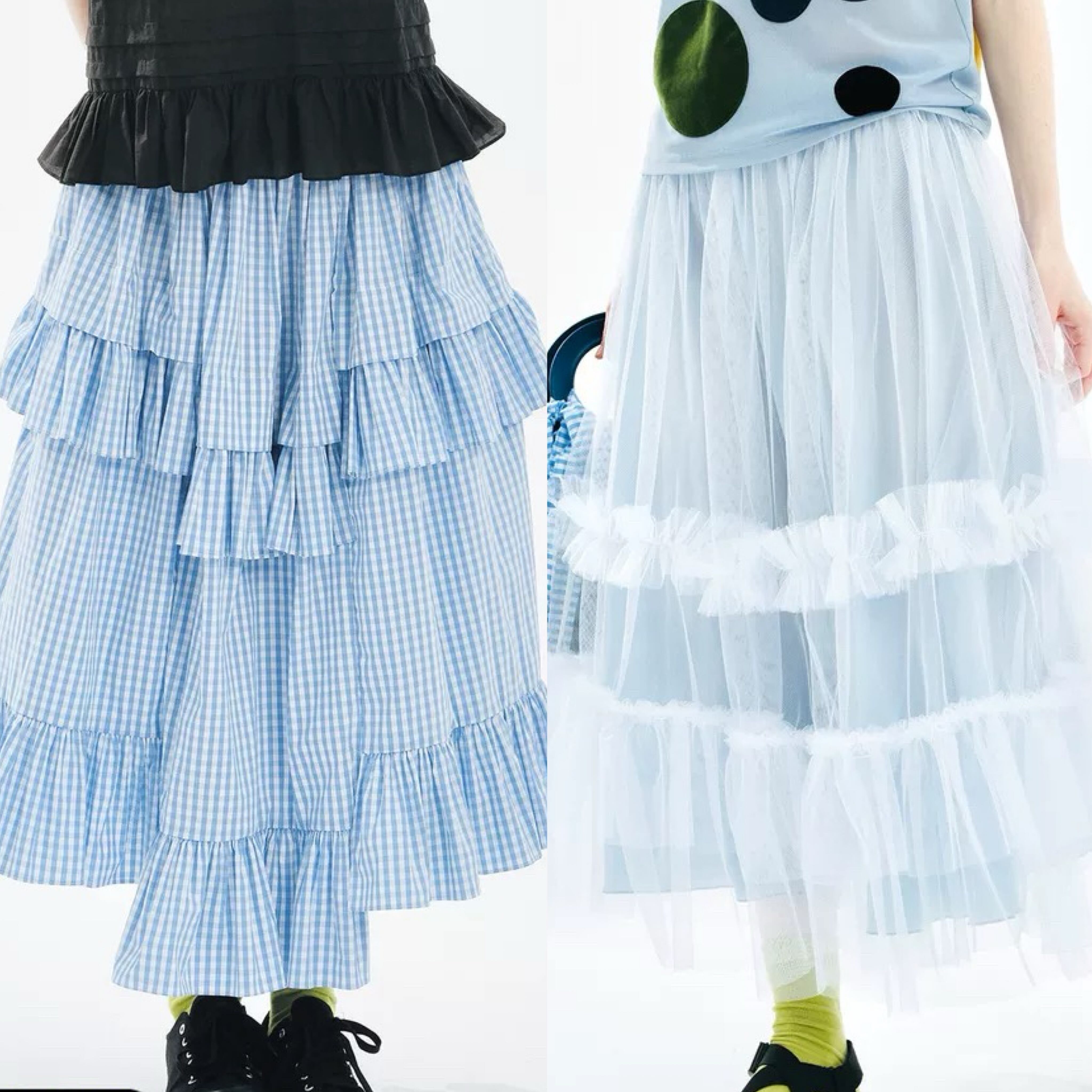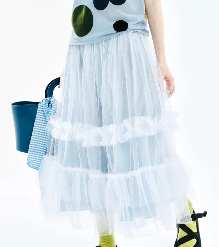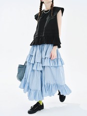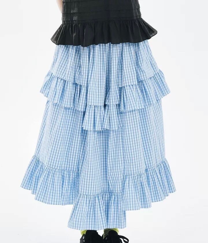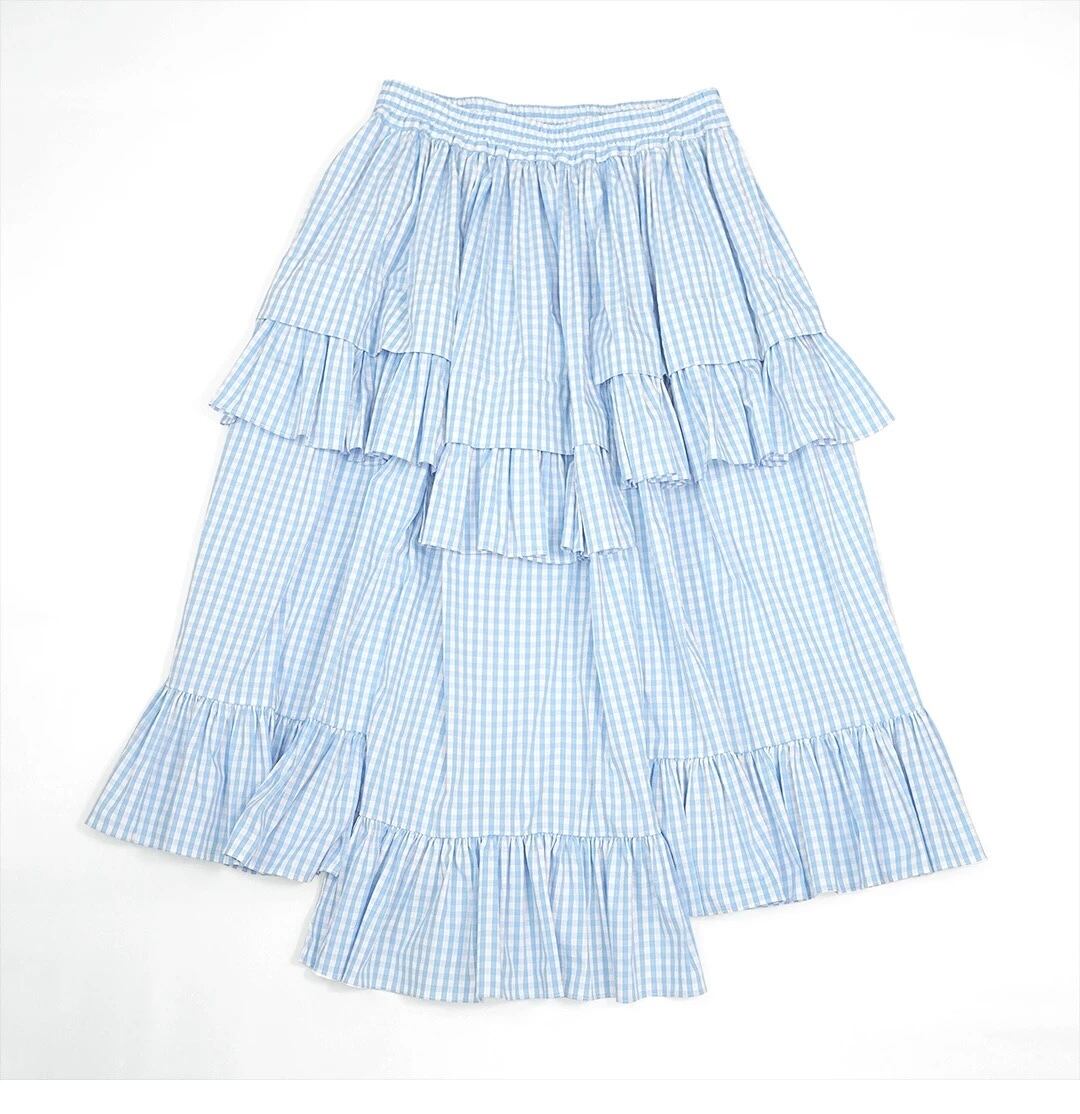 水色 チェック ボトムス スカート マキシ 可愛い はら時 ゆったり