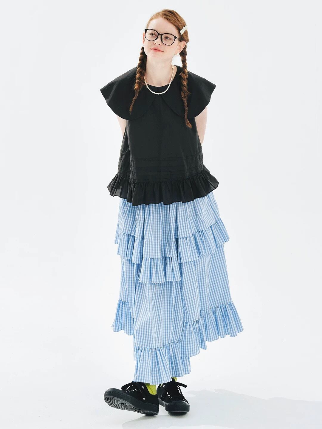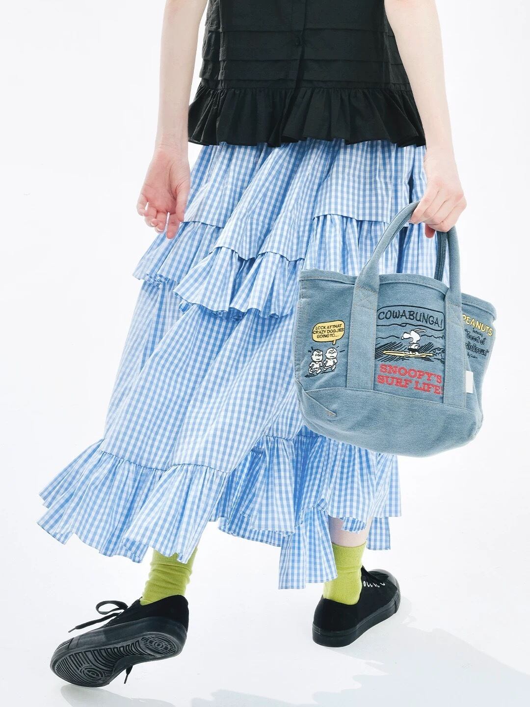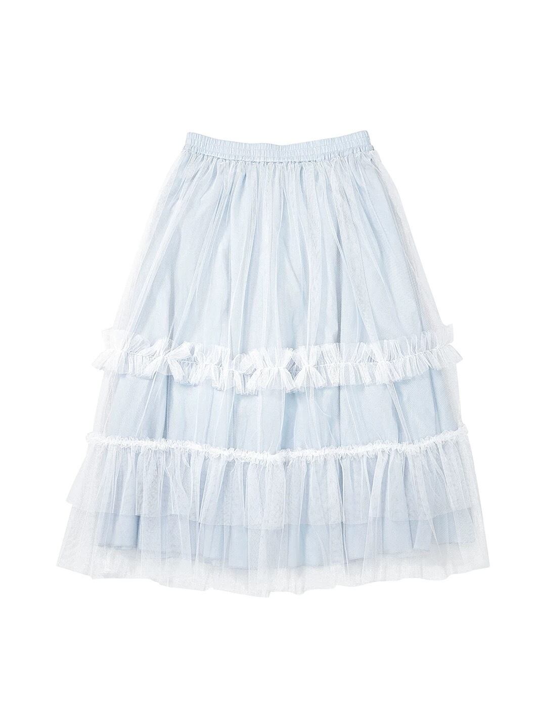 水色 チェック ボトムス スカート マキシ 可愛い はら時 ゆったり
