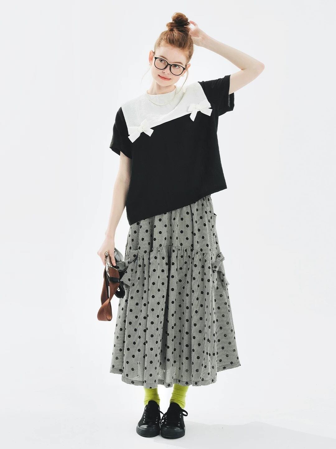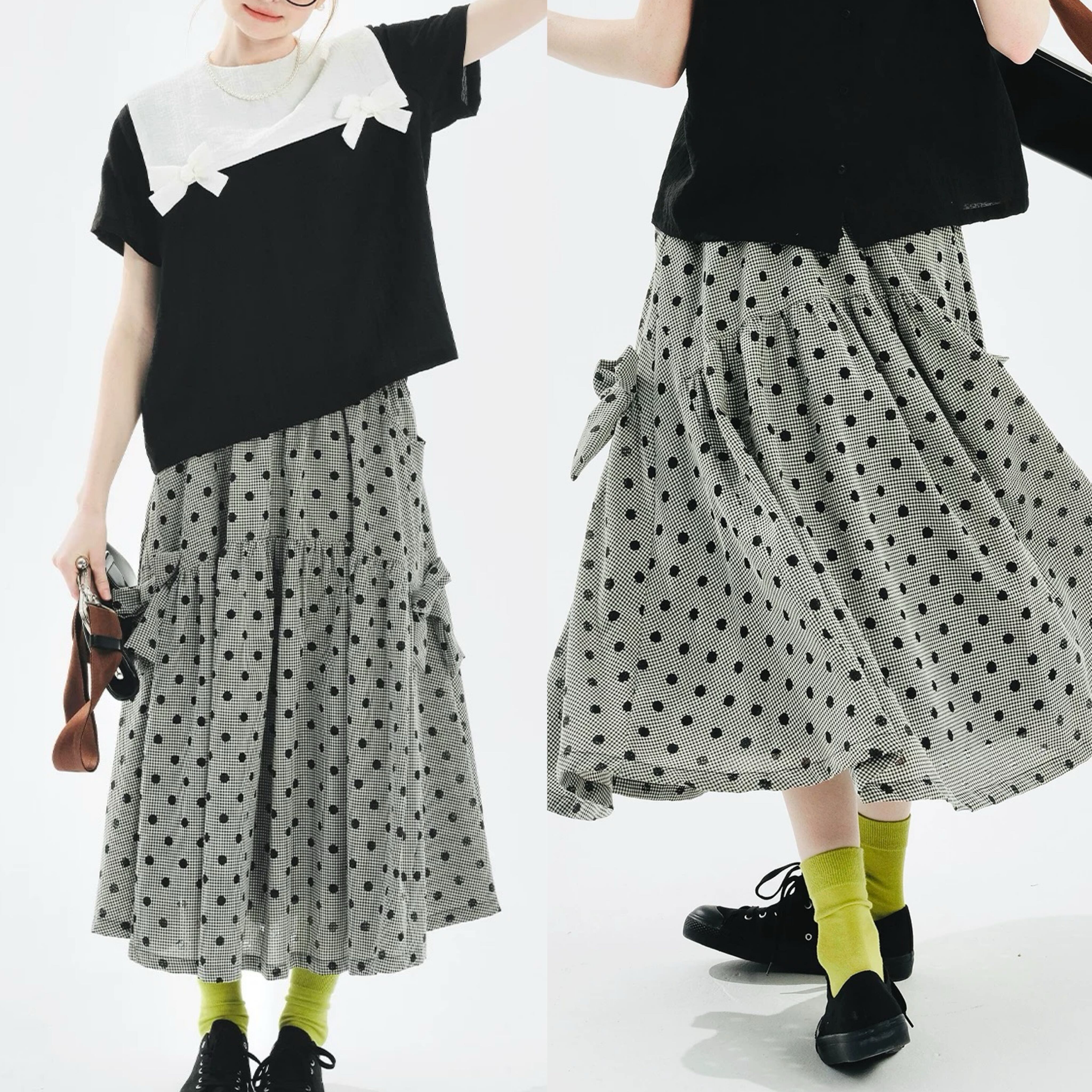 水玉 グレー ボトムス スカート ガーリー 可愛い チェック