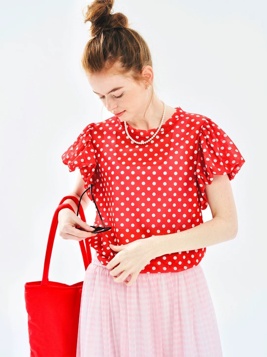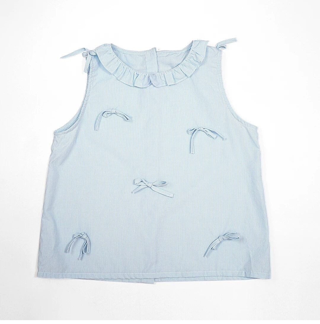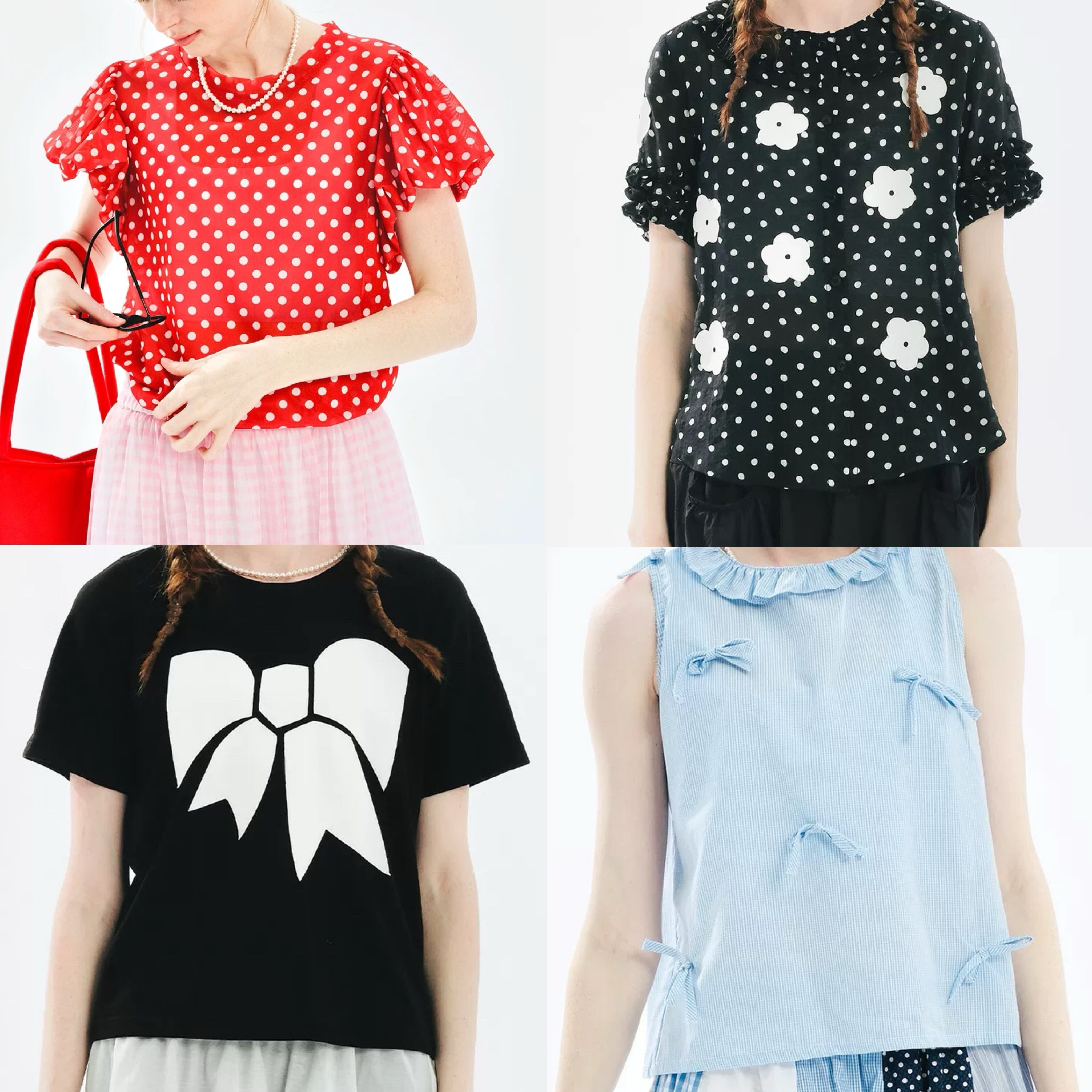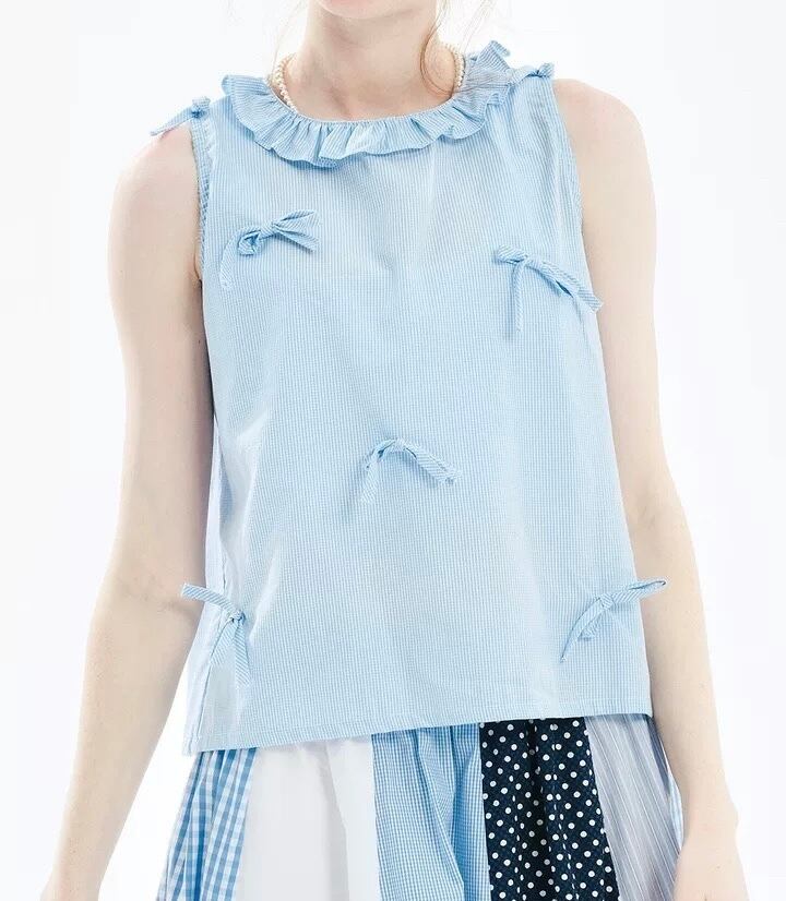 赤 丸襟 チェック ブラウス ガーリー 可愛い トップス ガーリー ネイビー 水色 リボン 赤
