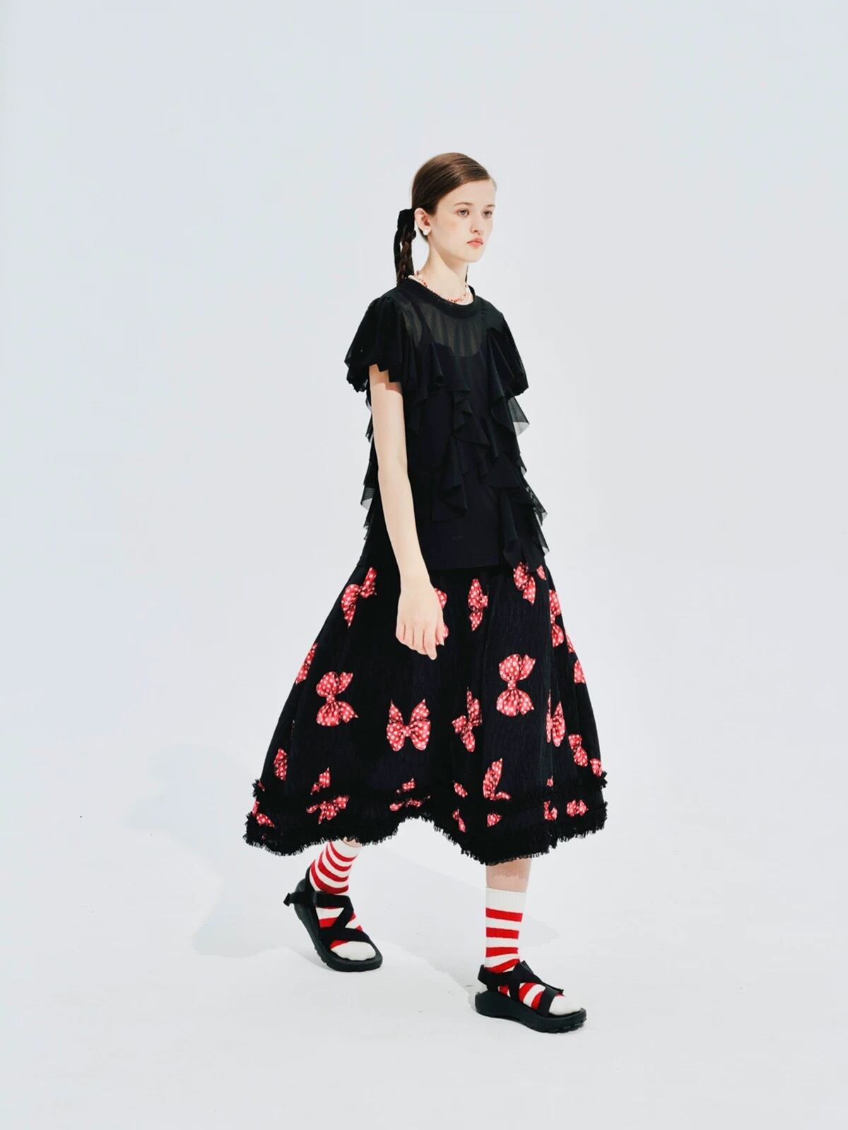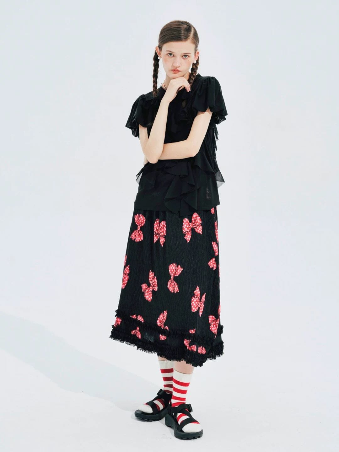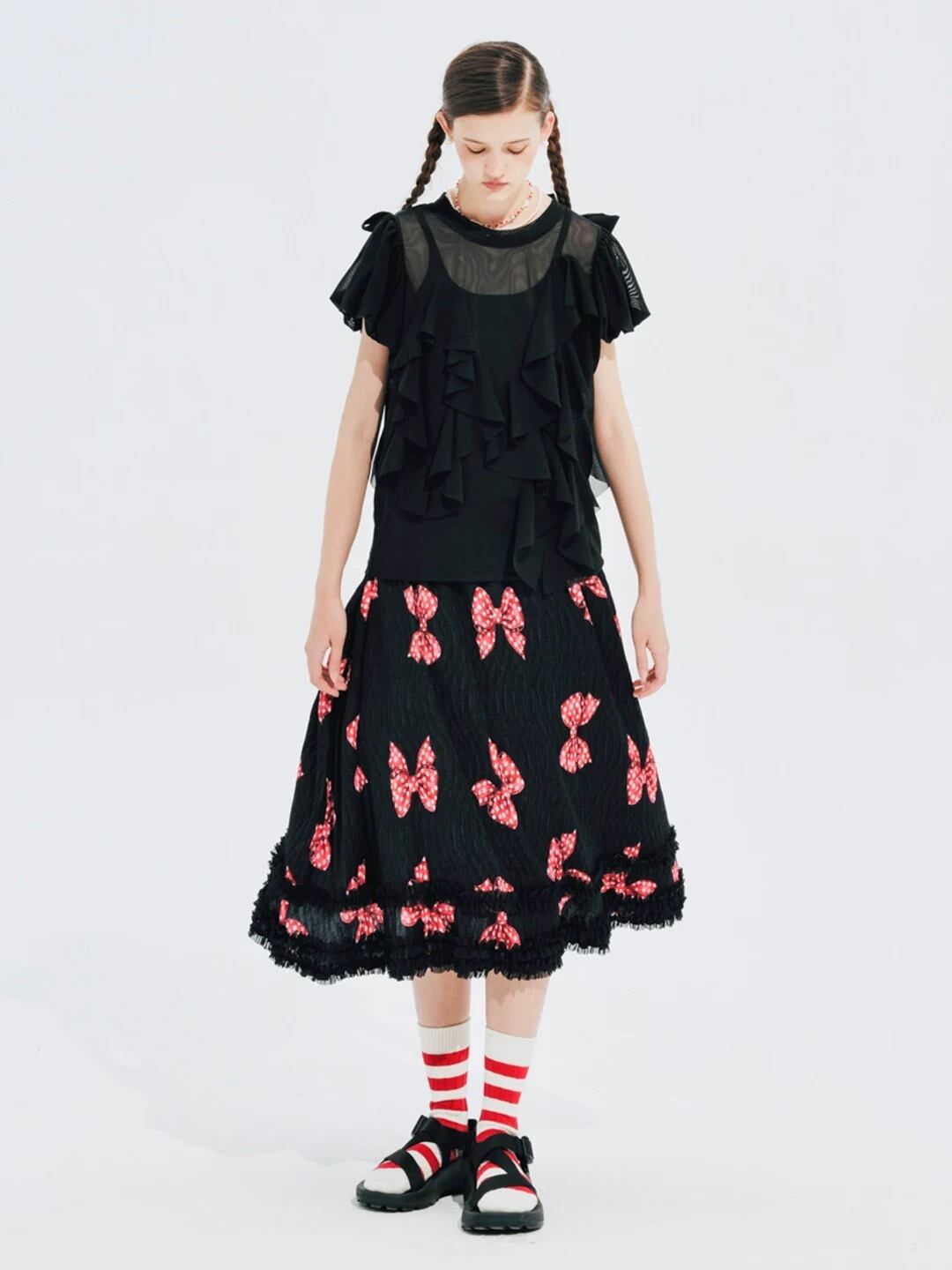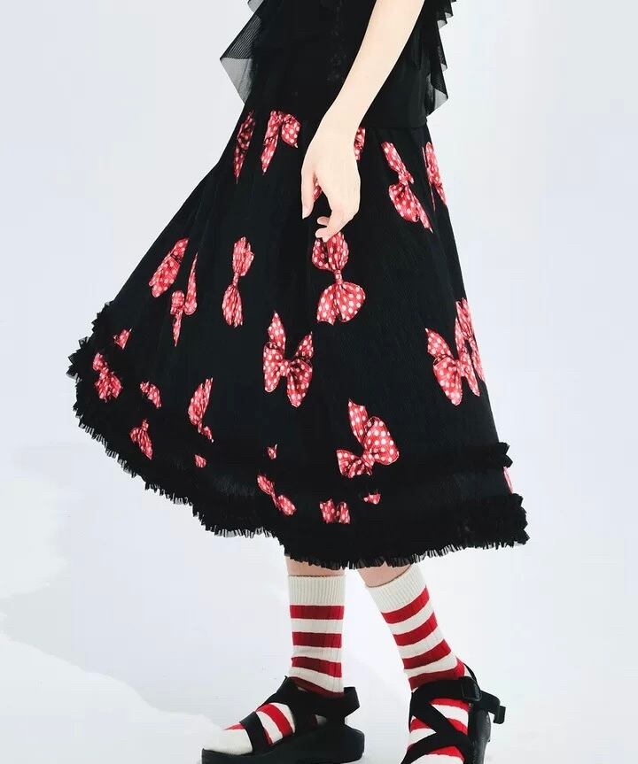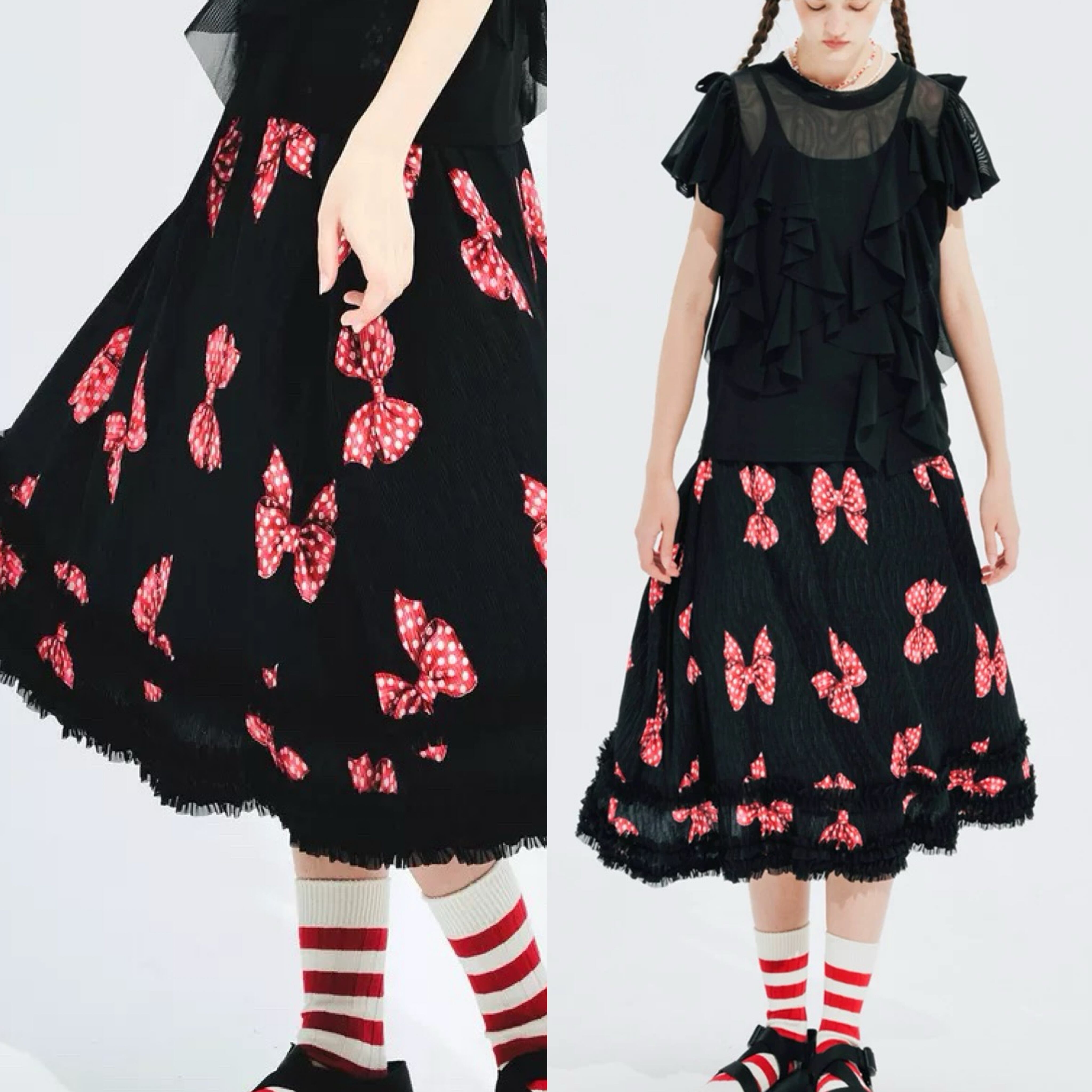 黒 リボン 可愛い ボトムス 赤 リボン 水玉 ガーリー スカート