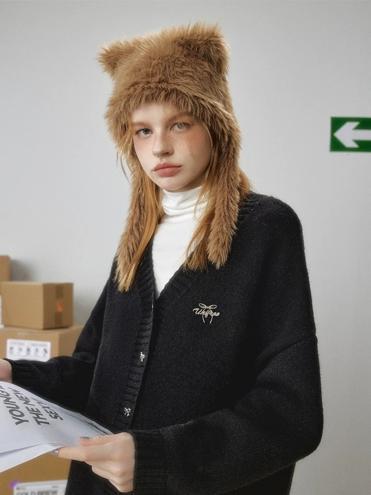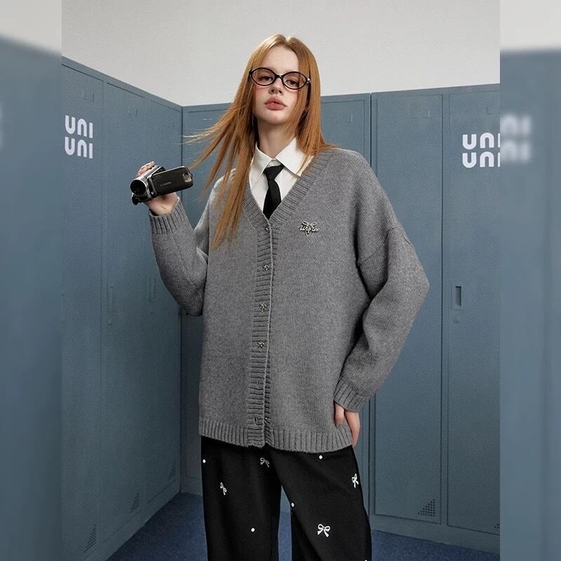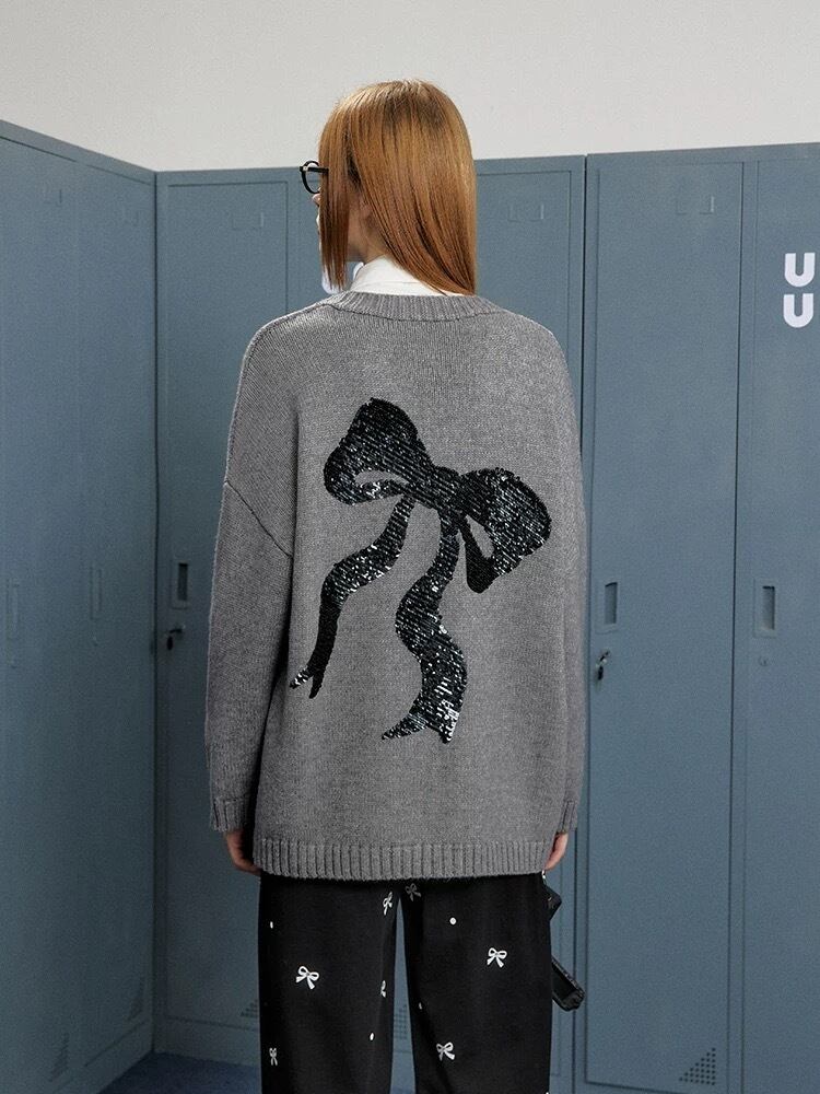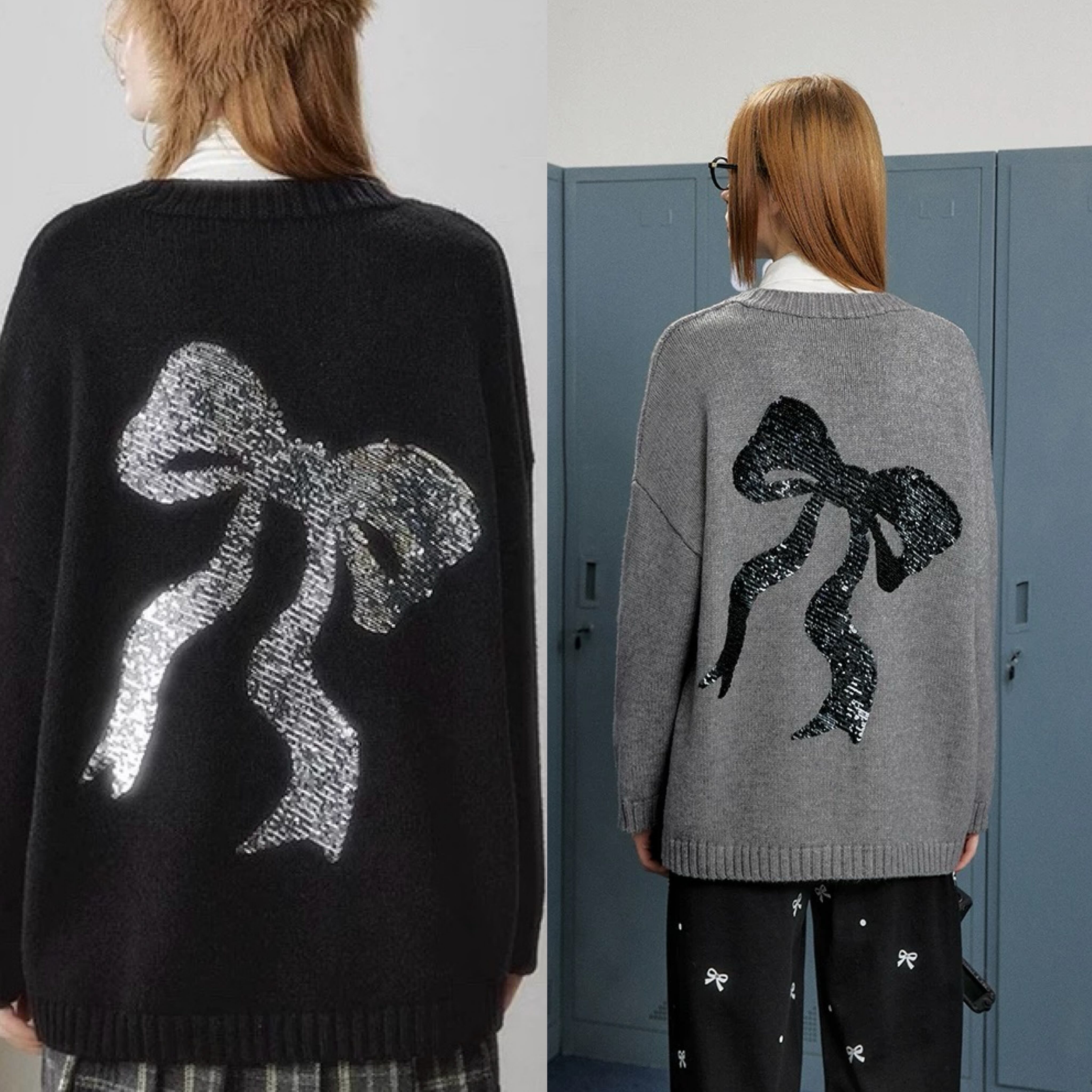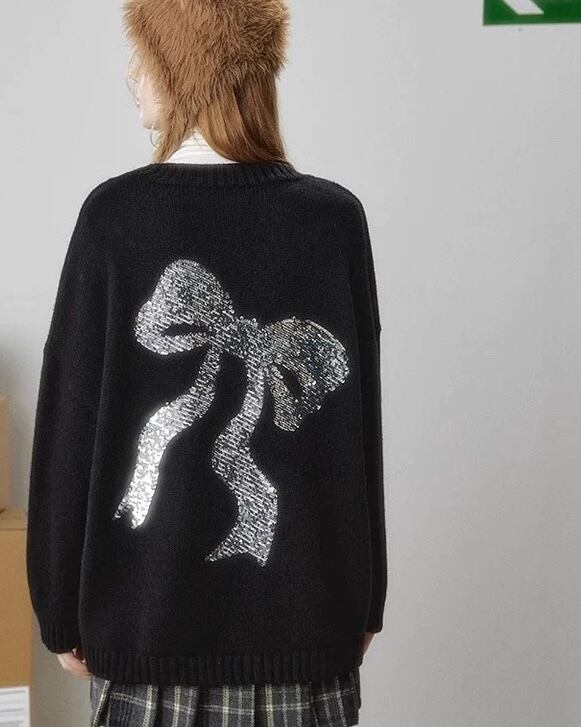 グレー キラキラ 黒 リボン カーディガン セーター ガーリー 可愛い ニット