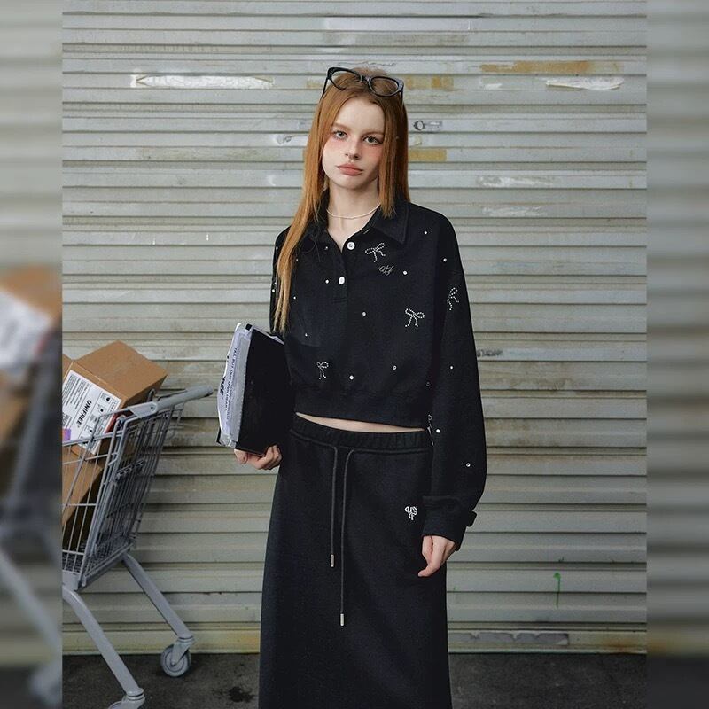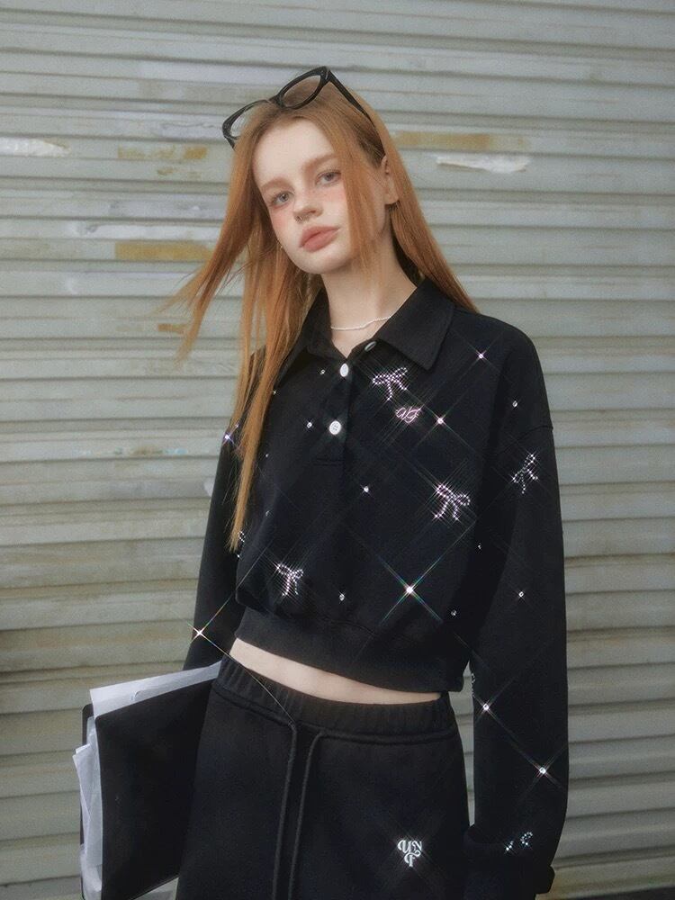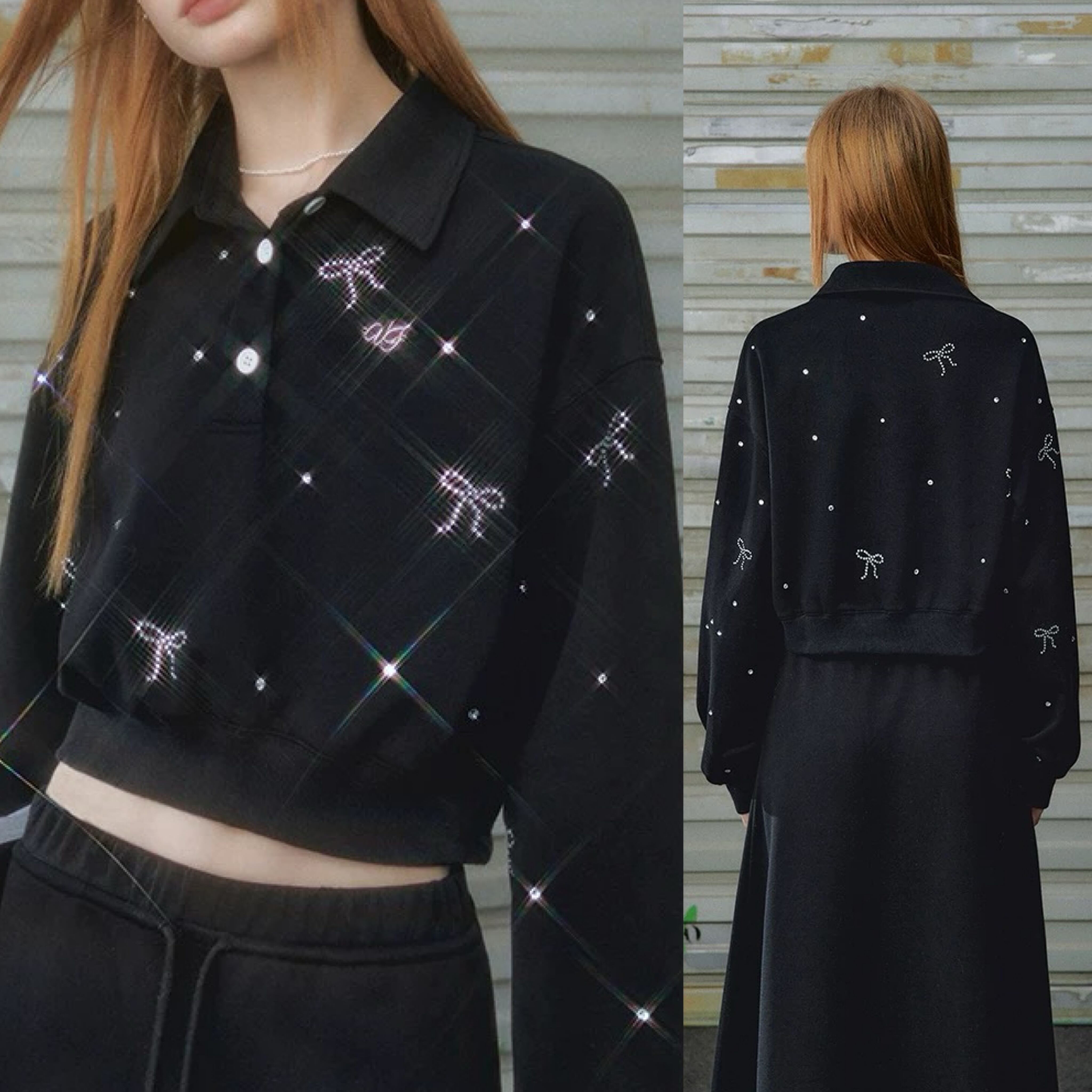 グレー 黒 キラキラ リボン トレーナー スウェット パーカー