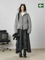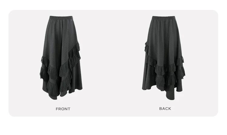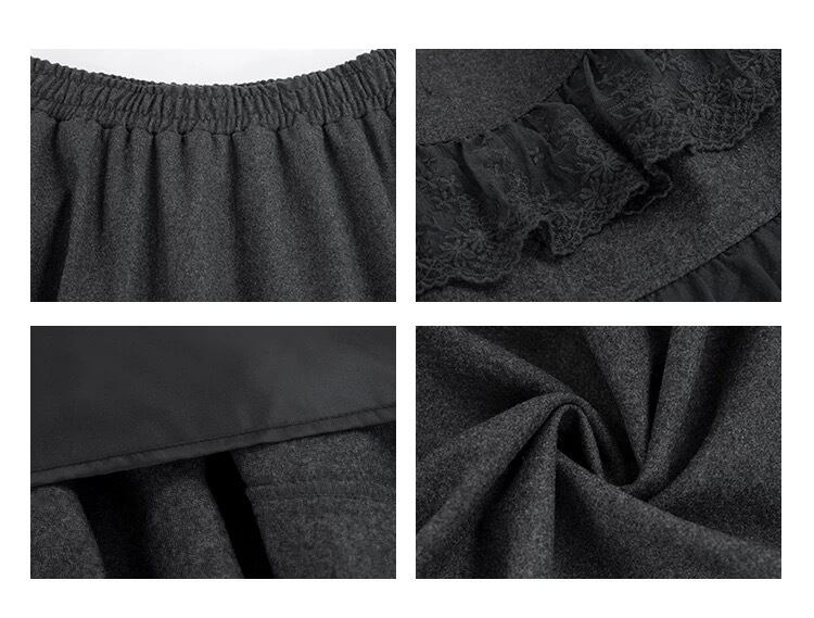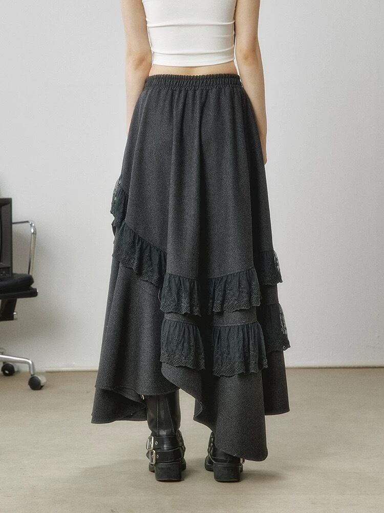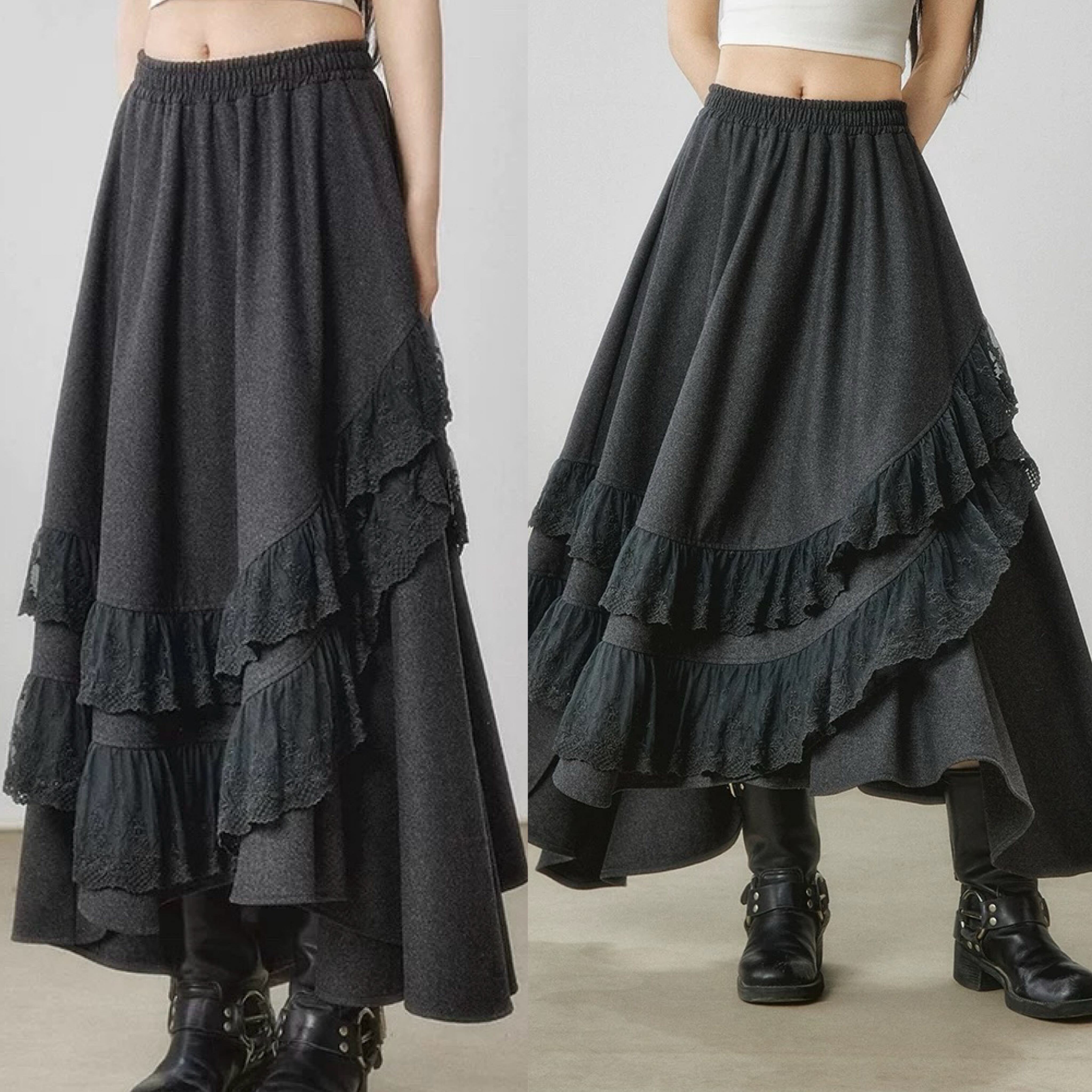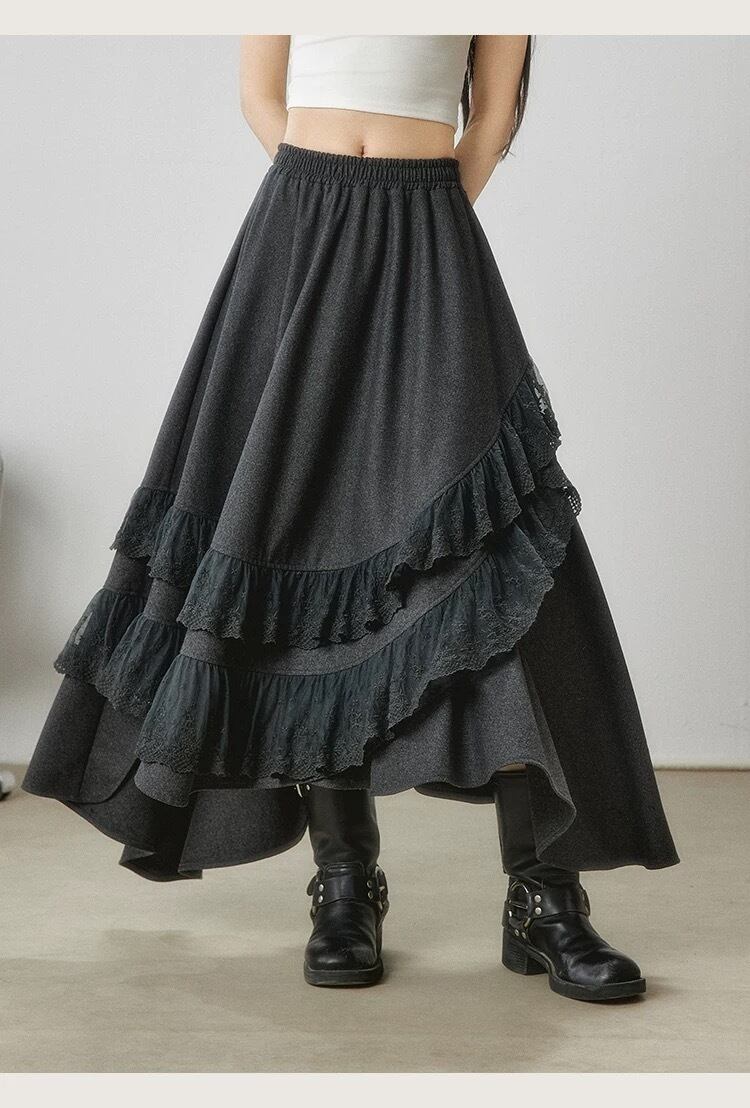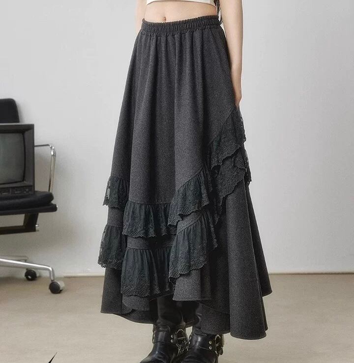 グレー ウール スカート ボトムス 可愛い マキシ ロング リボン シンプル