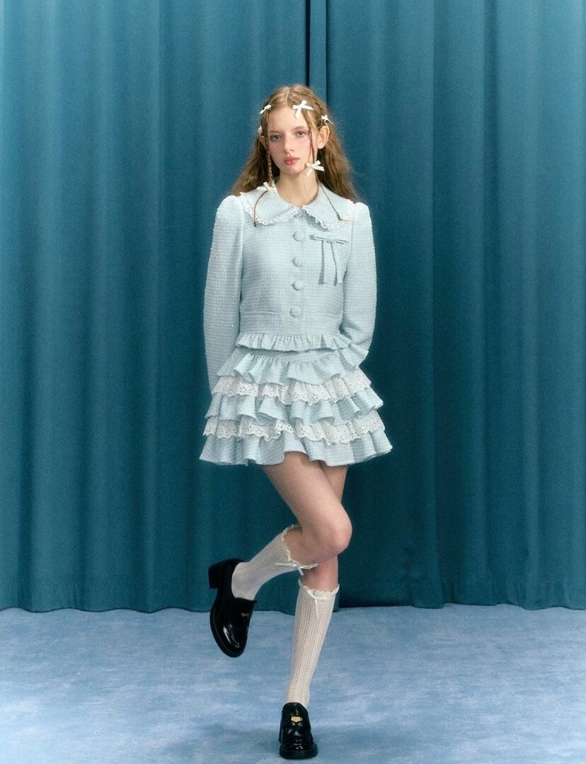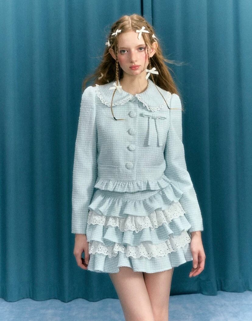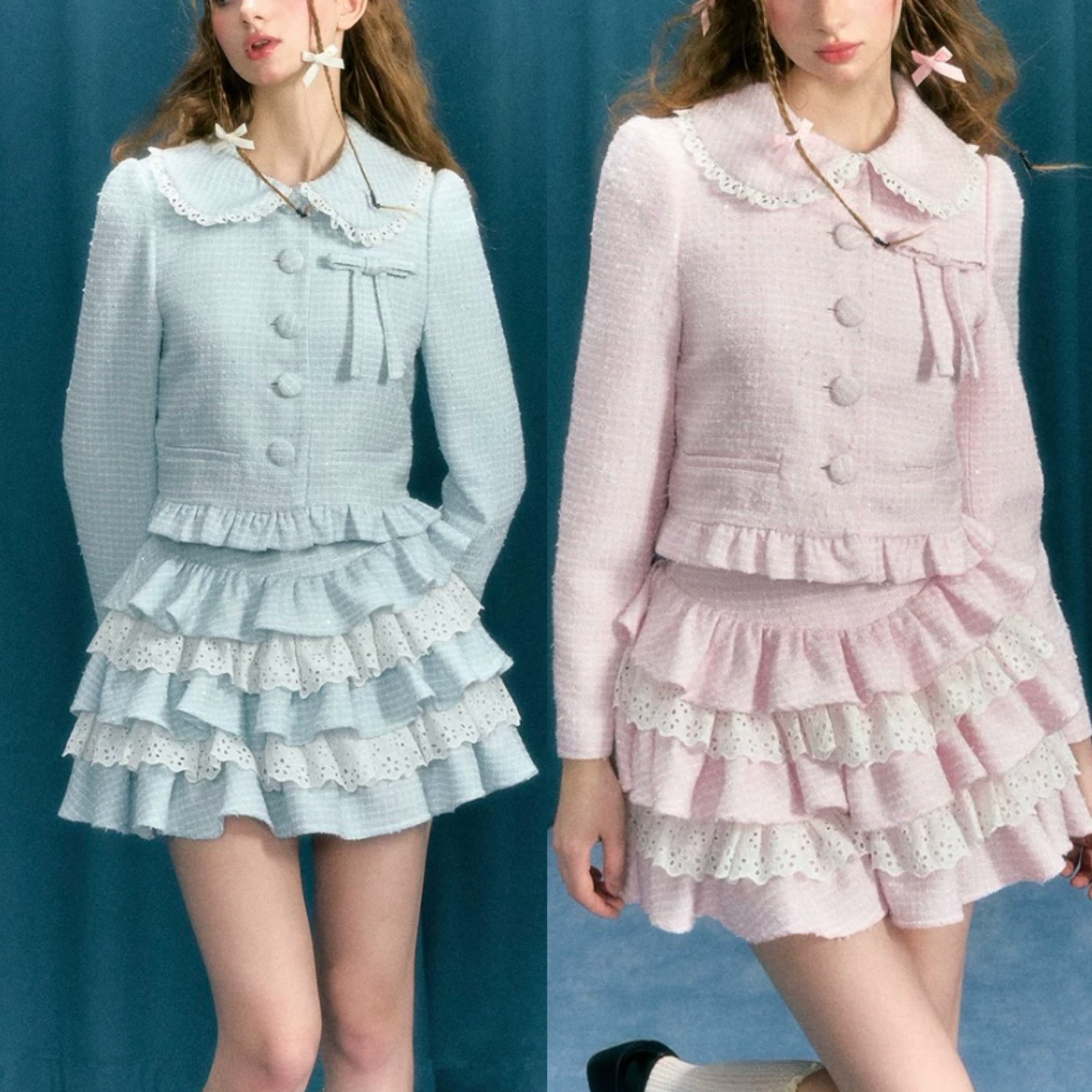 【スカート】水色 ピンク ガーリー 可愛い フリル セットアップ