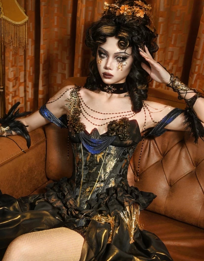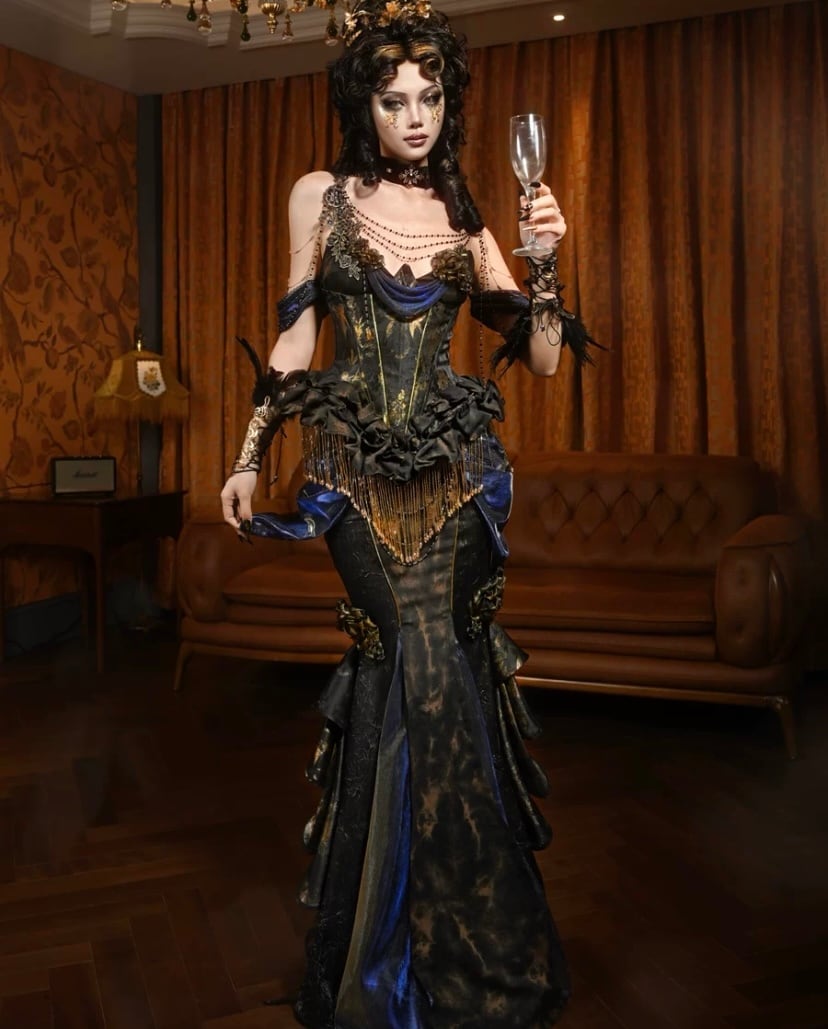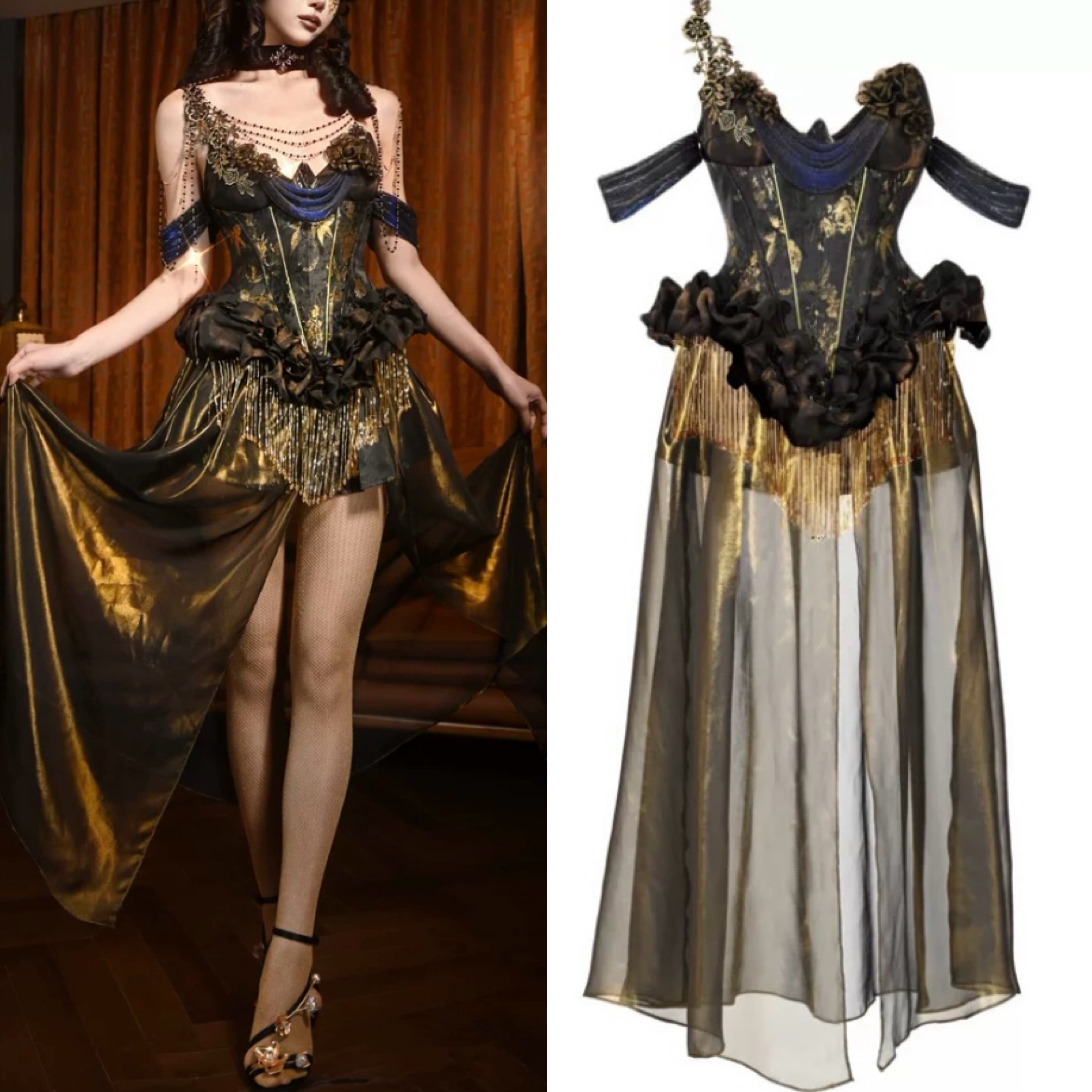 ゴールド ドレス 金色 黒 ハロウィン ドレス コスプレ 魔女