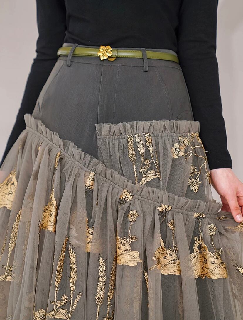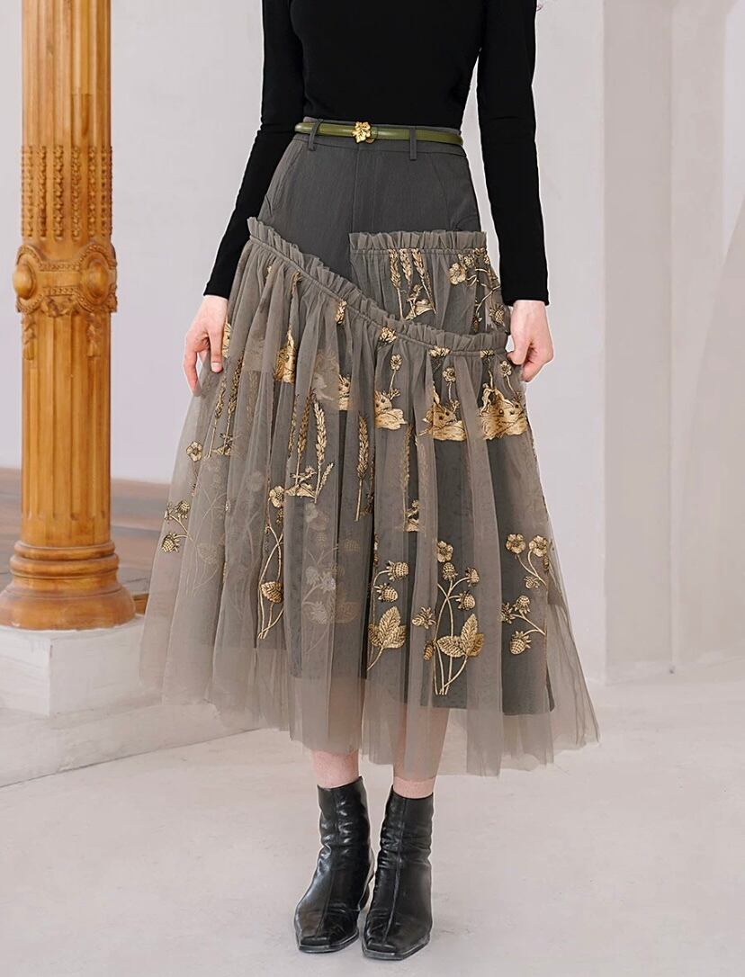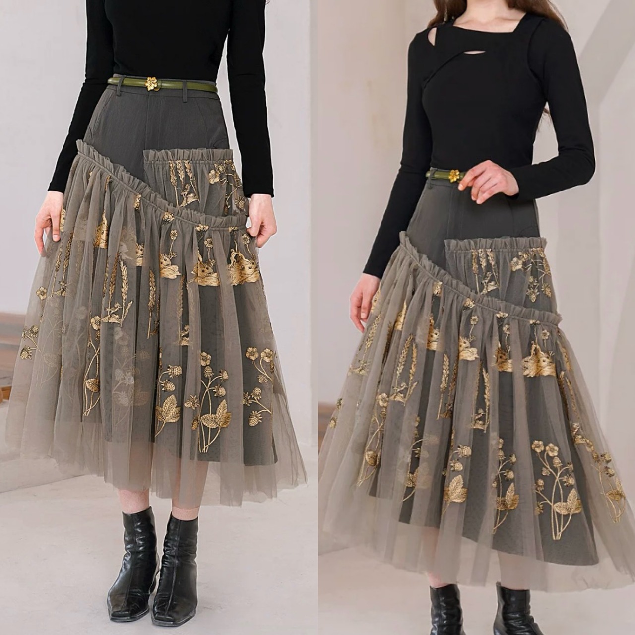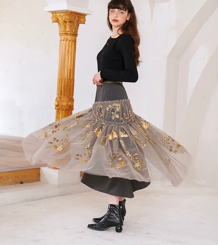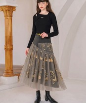 黒 花柄 フラワー スカート ボトムス ガーリー ベージュ