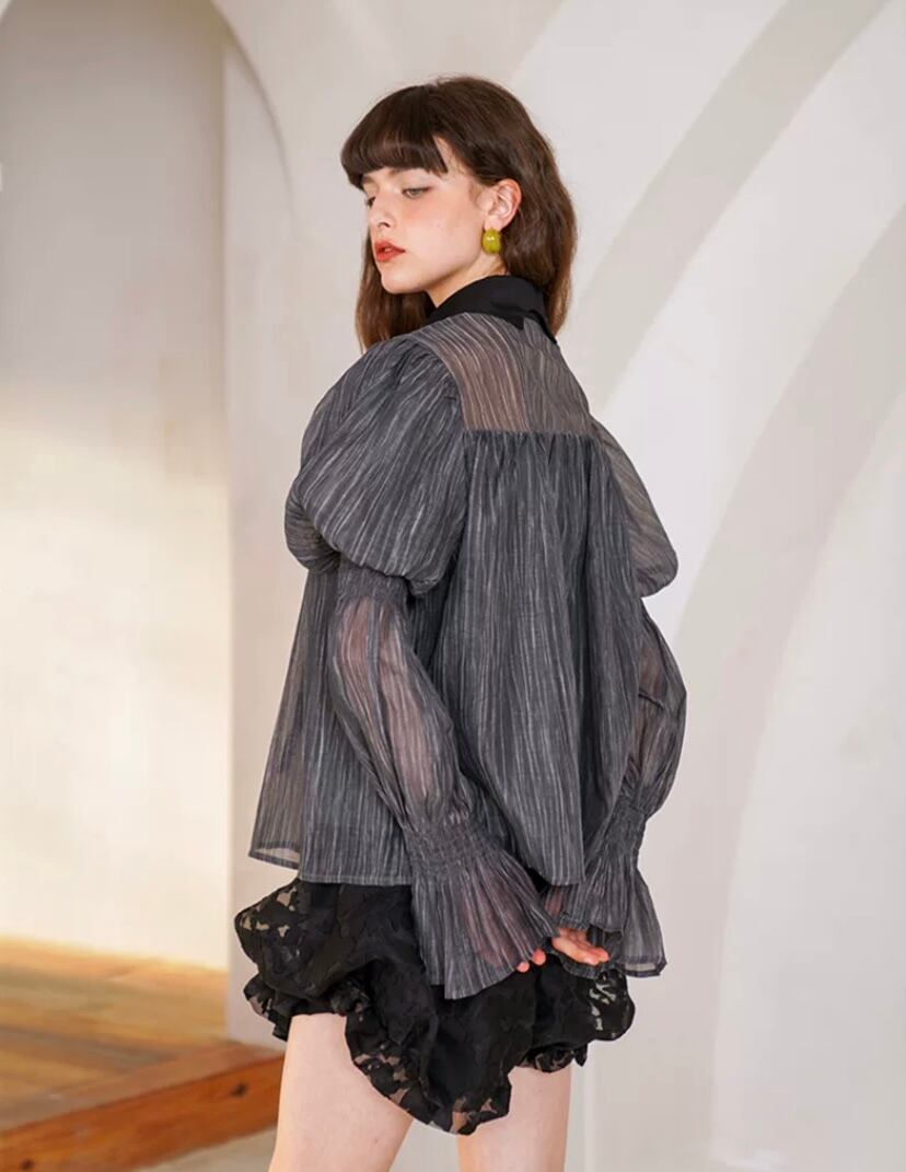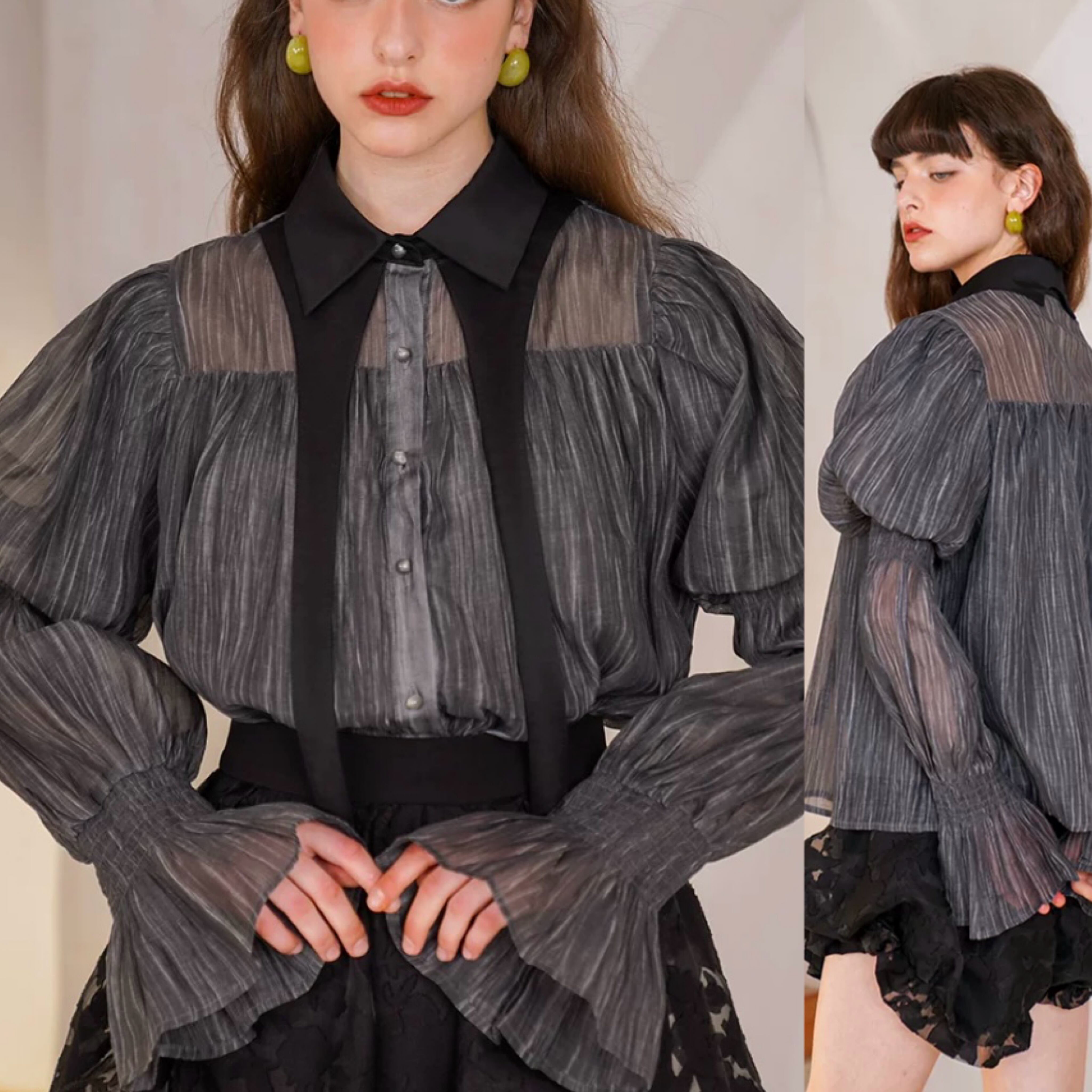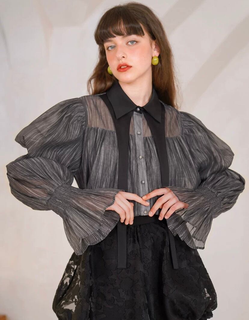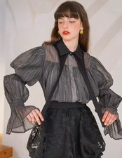 黒 ブラック ブラウス シャツ シースルー リボン 可愛い