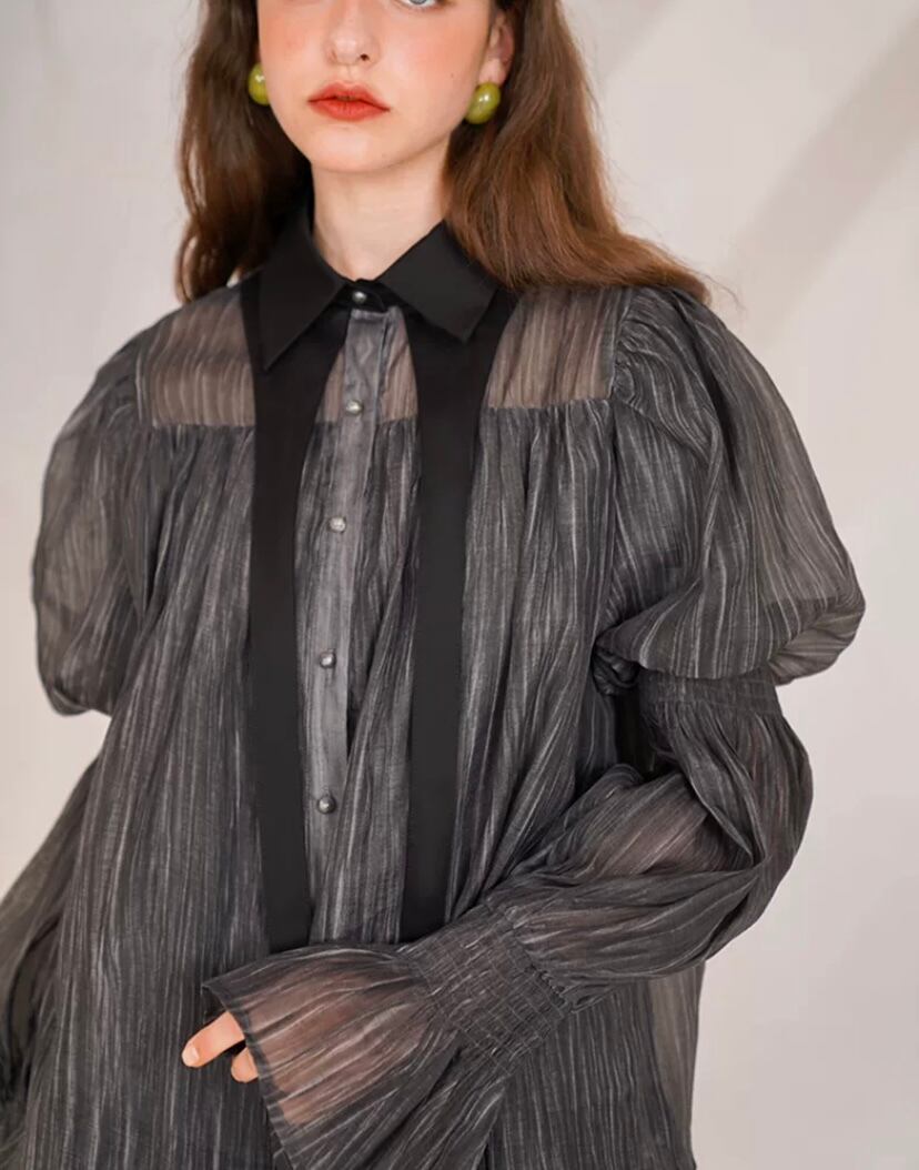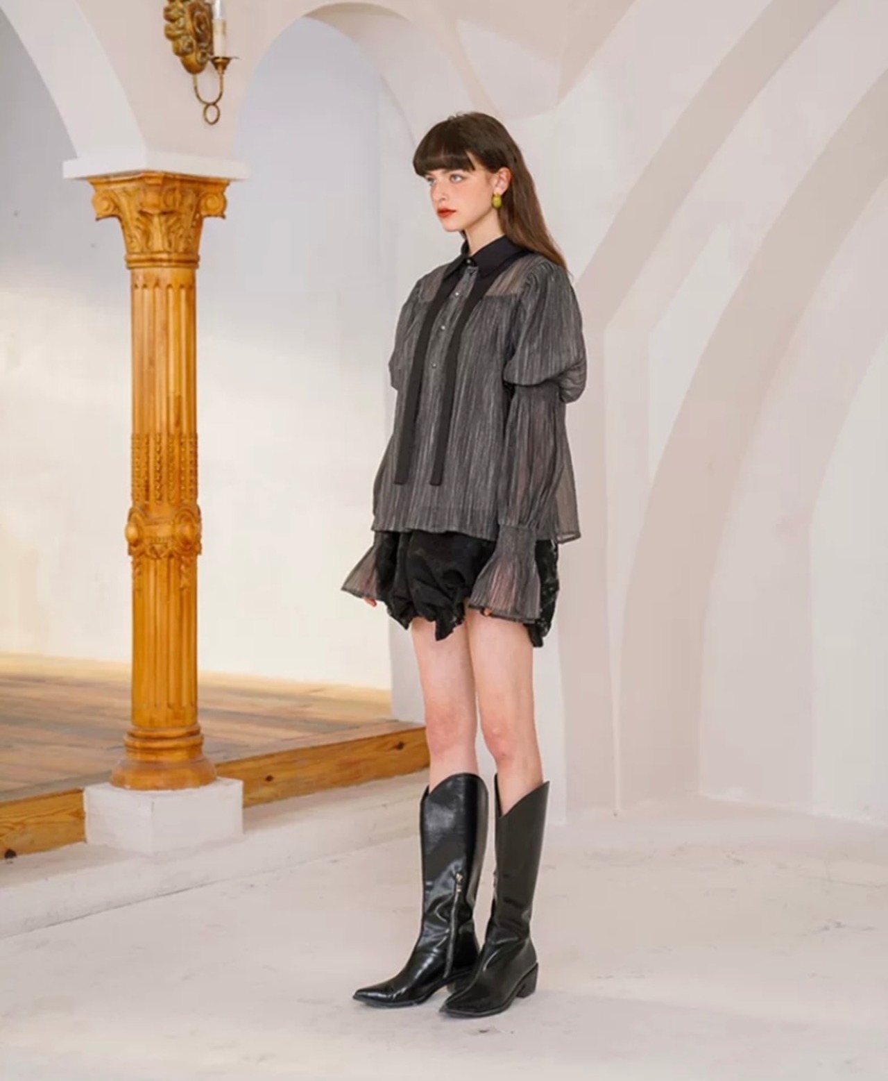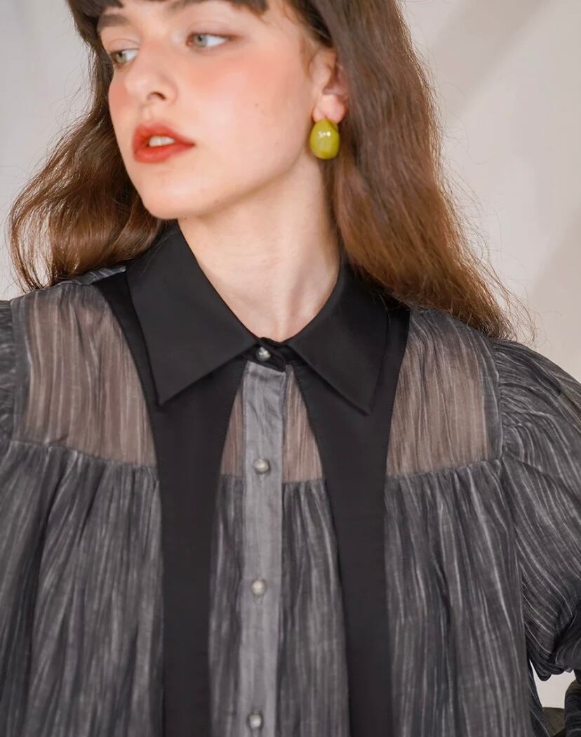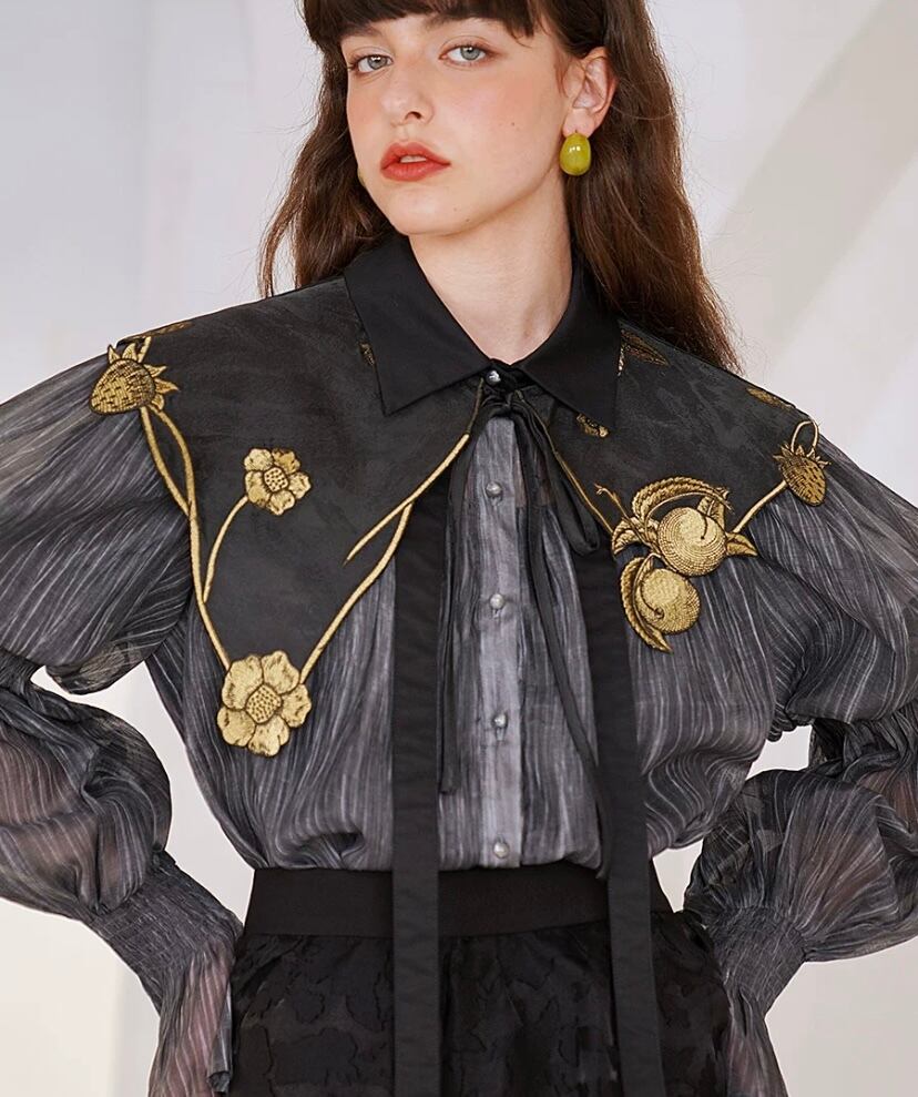 黒 ブラック ブラウス シャツ シースルー リボン 可愛い