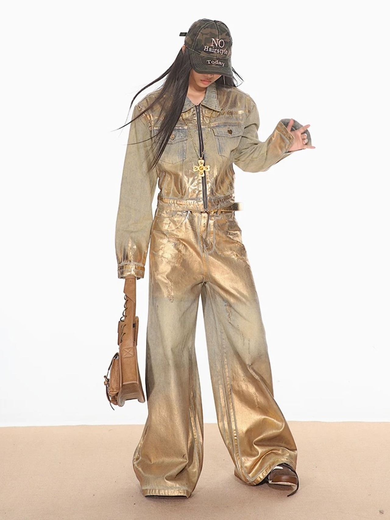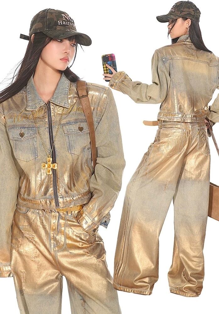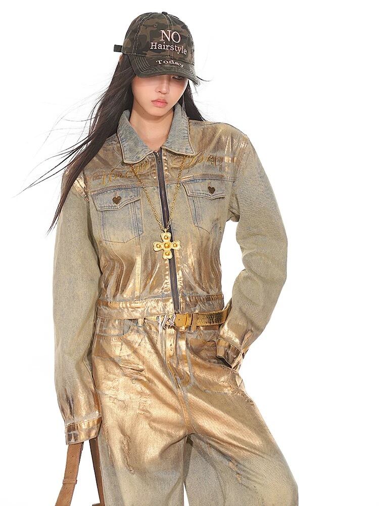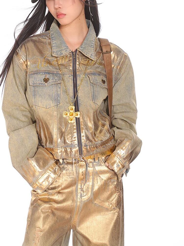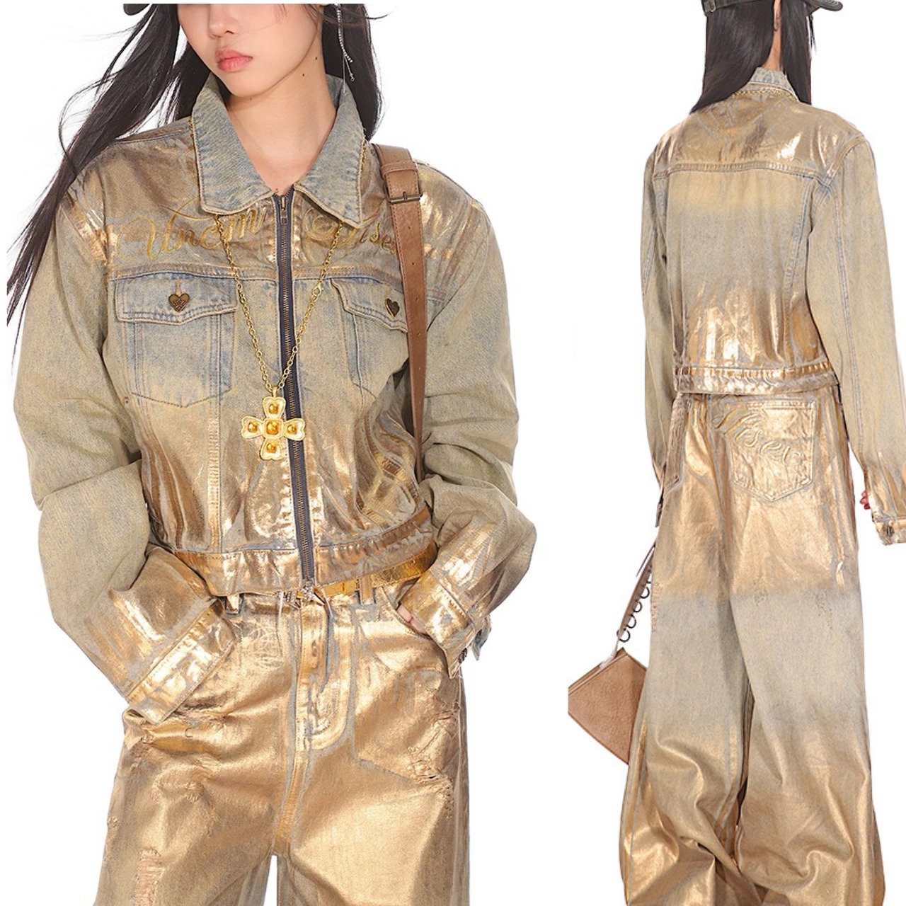 ジャケット ゴールド 金色 アウター カーディガン トップス アウター