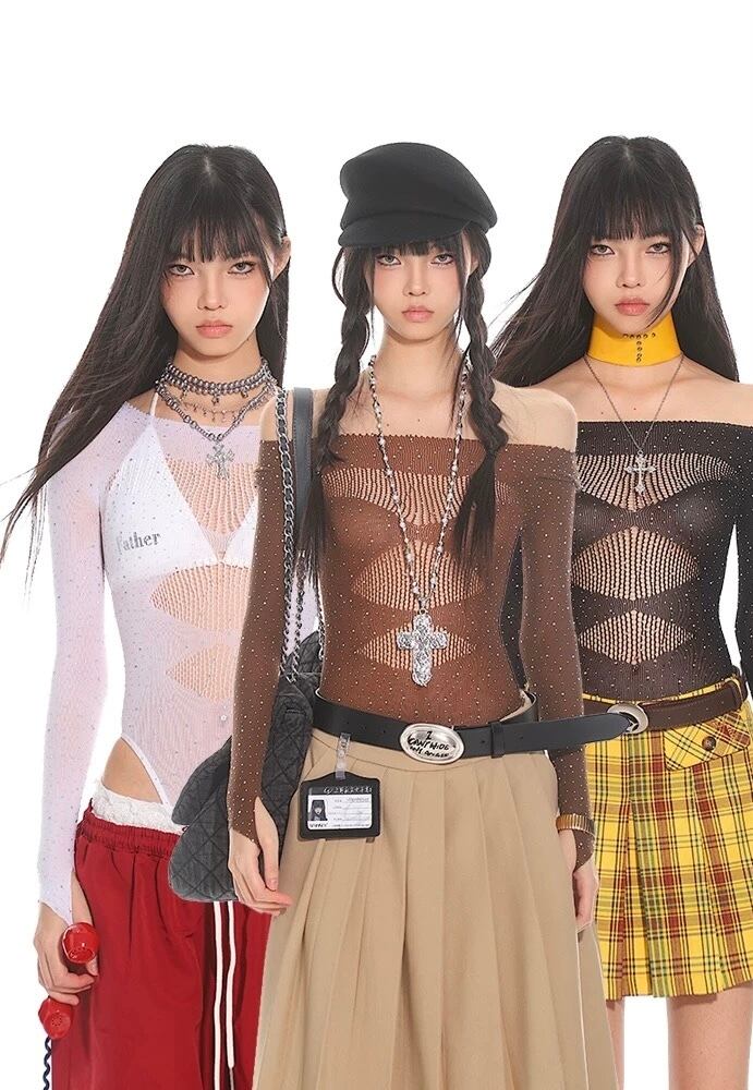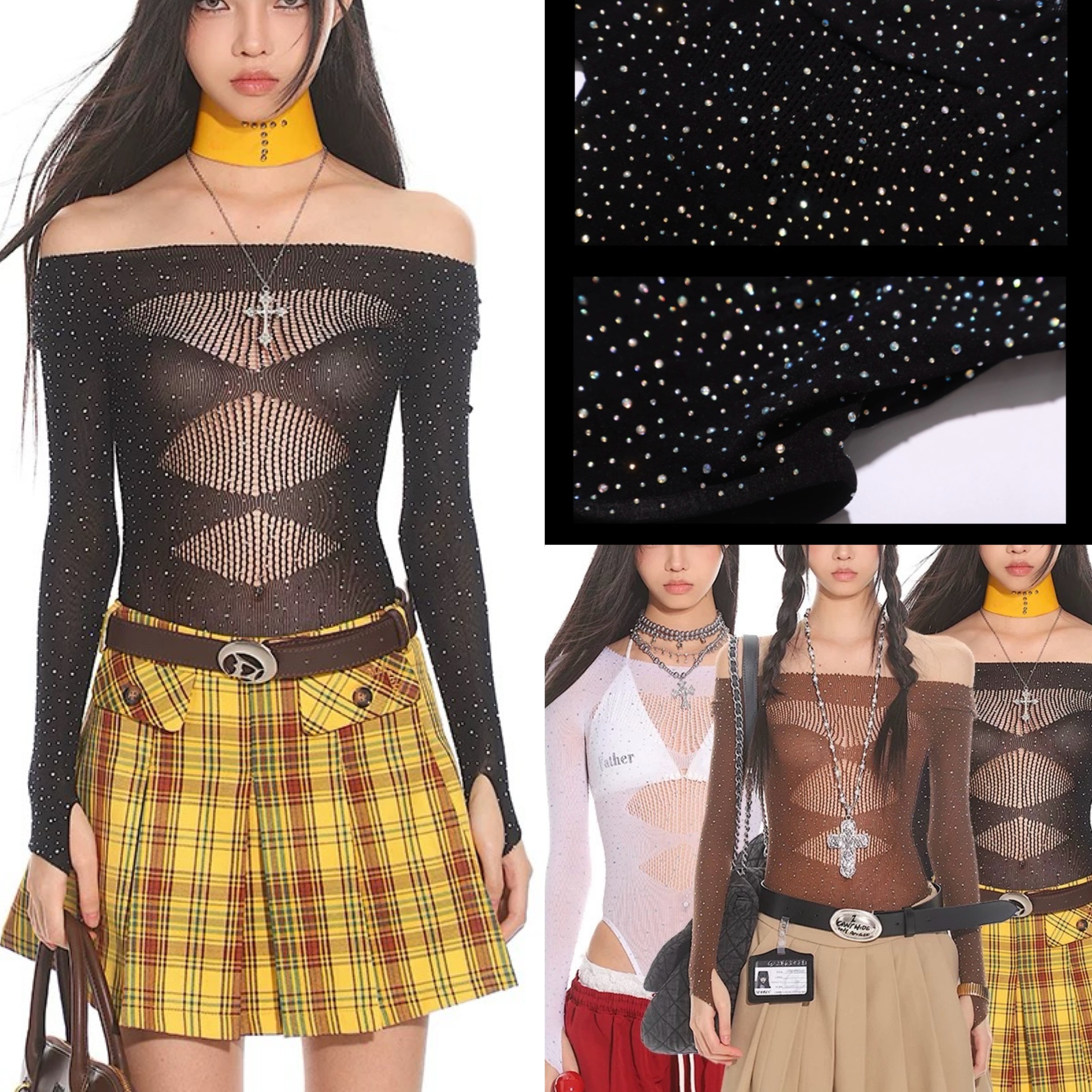 キラキラ シースルー ラインストーン 黒 白 キャミソール トップス 茶色 ブラウス ダンス