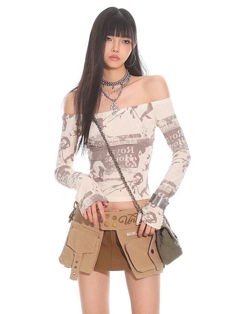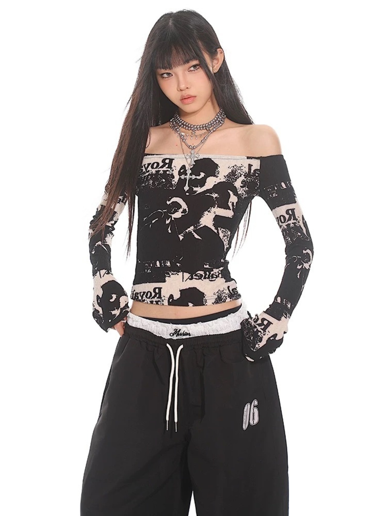 オフショルダー 茶色 黒 ブラウス カジュアル スウェット ダンス クラブ