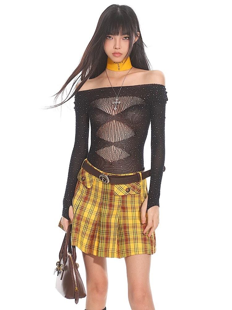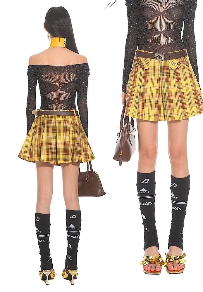 黄色 チェック スクール スカート ボトムス ガーリー 原宿 可愛い チェック