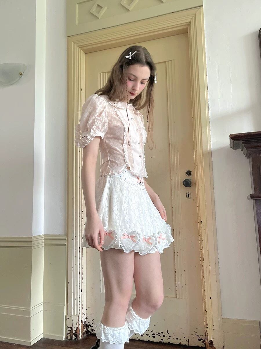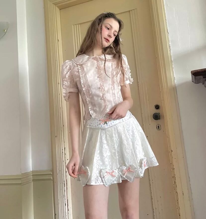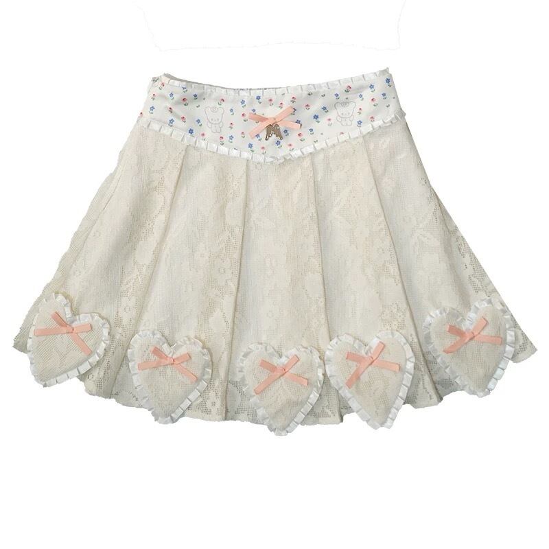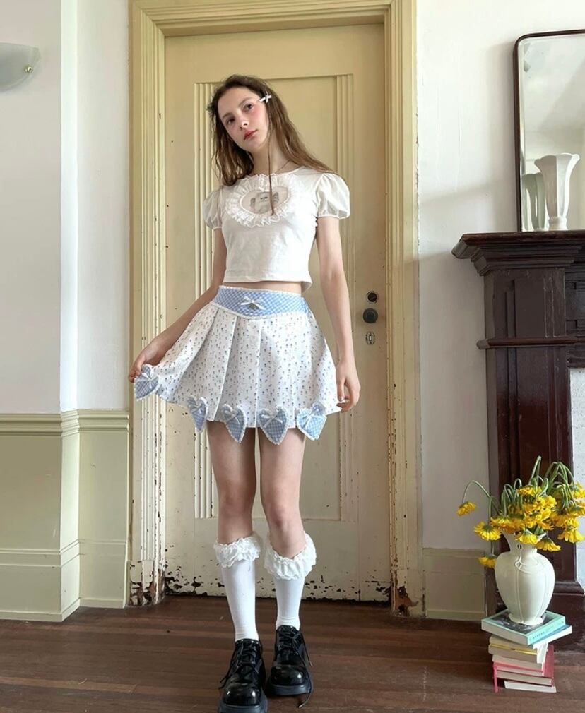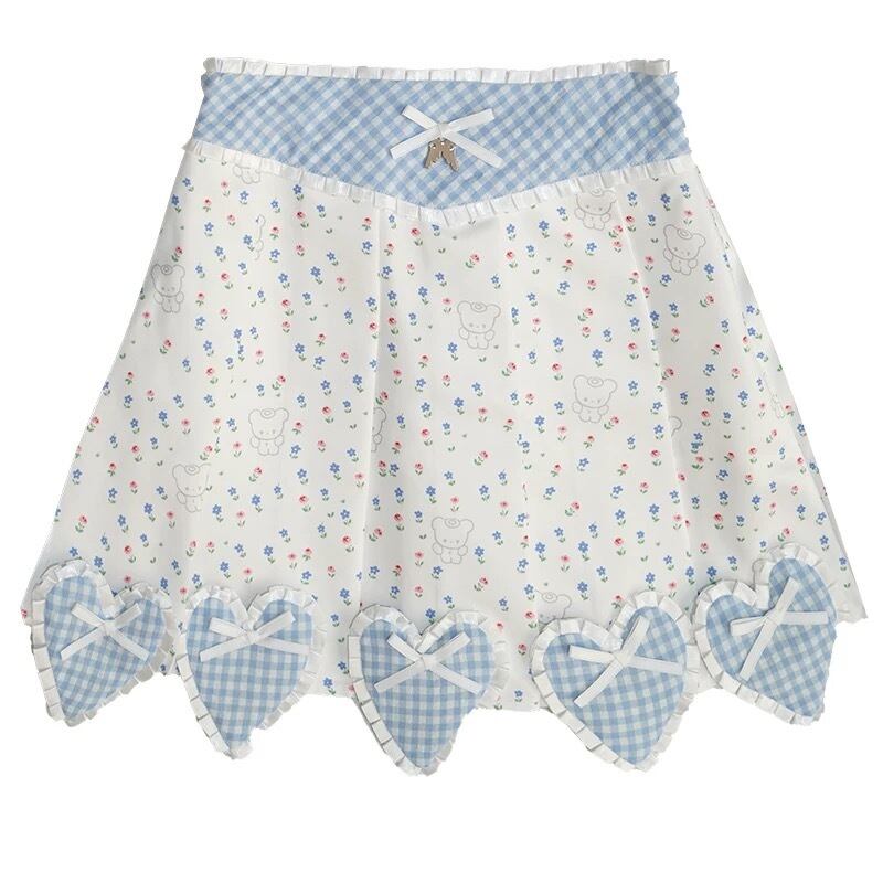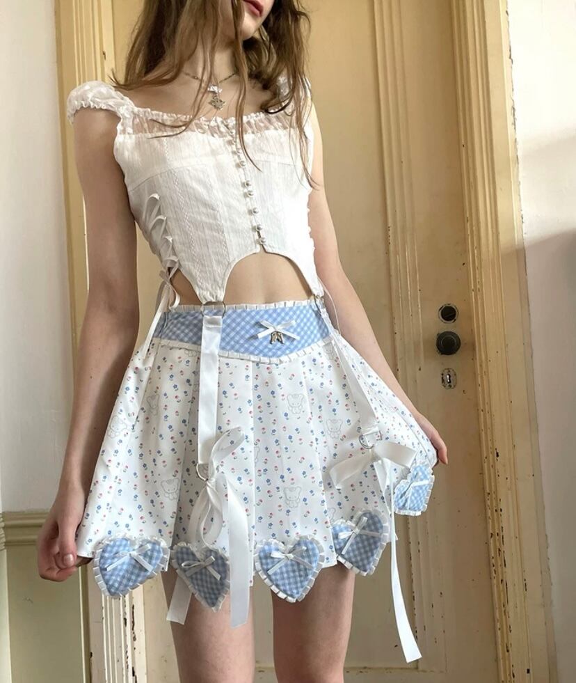 【スカート】水色 可愛い ハート ガーリー ボトムス 姫 原宿 白 ピンク