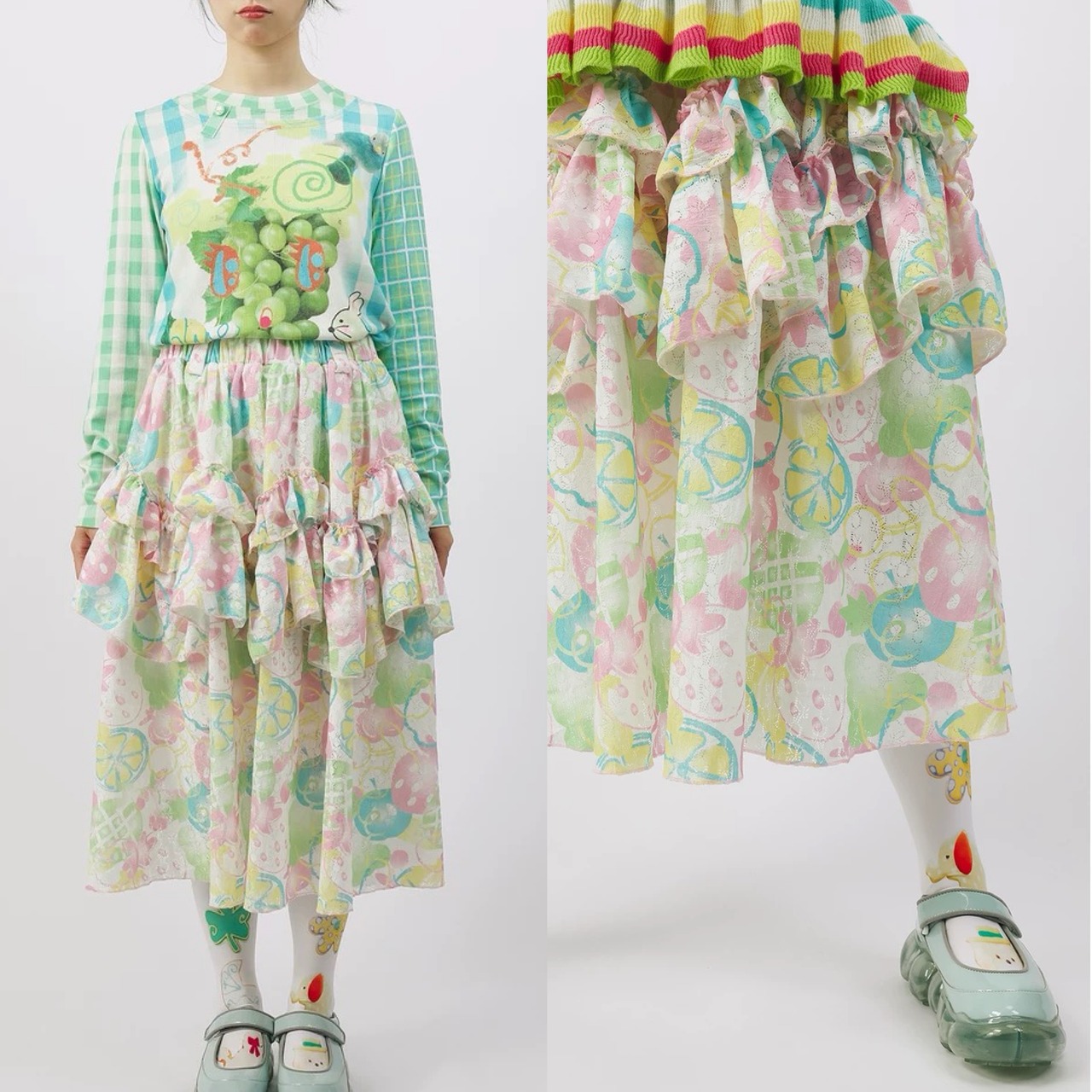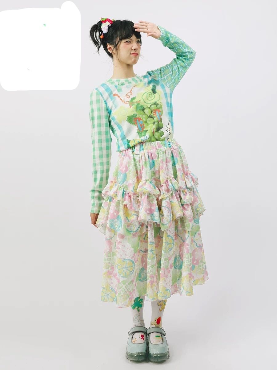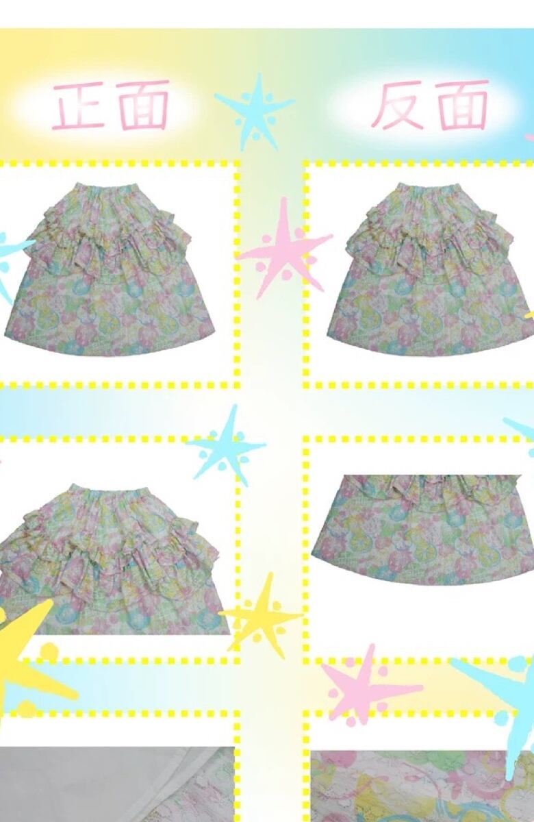 緑 フリル 可愛い ガーリー ボトムス 原宿 水色 落書き