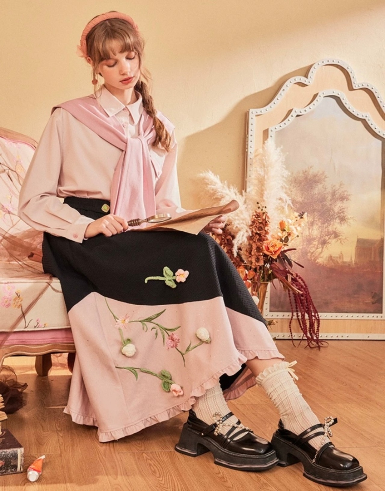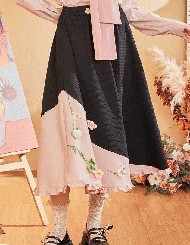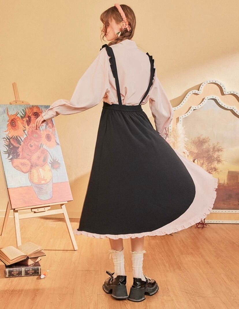 黒 花 ジャンパースカート ピンク 花柄 フラワー 可愛い ガーリー