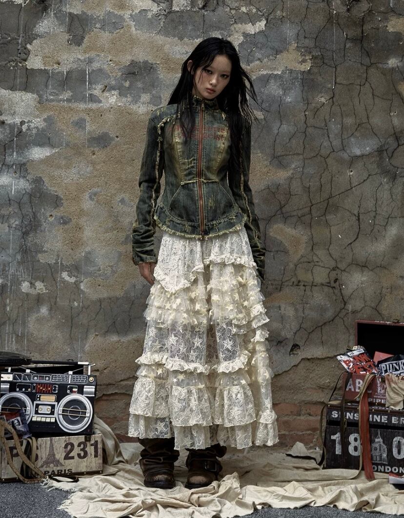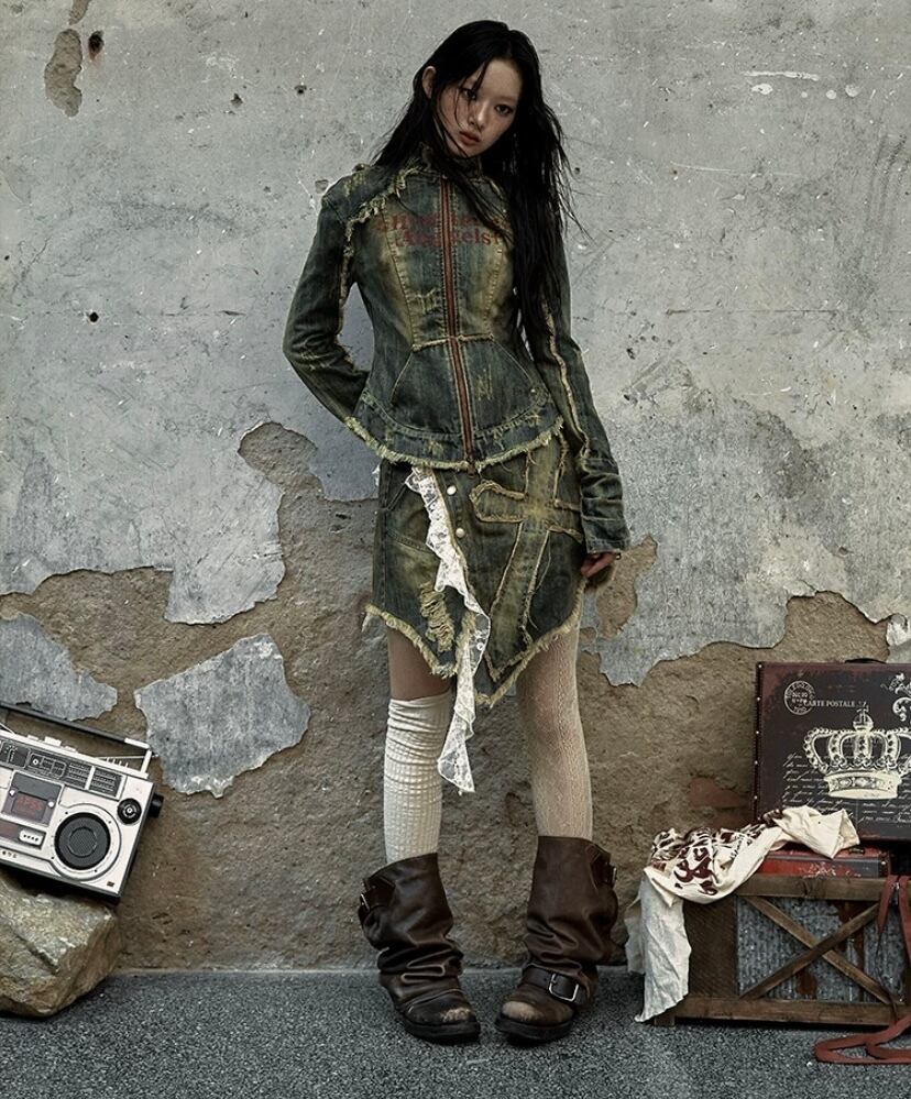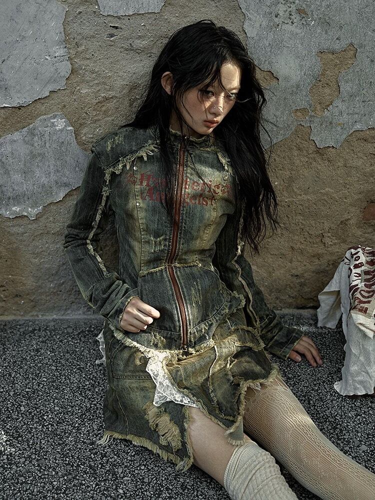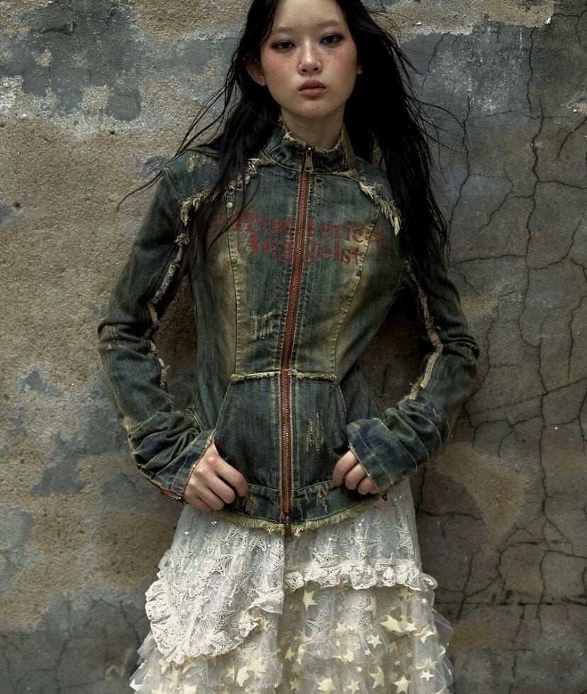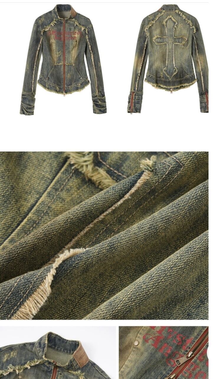 デニム ジャケット ダメージ ネイビー ジージャン アウター ロック カーディガン