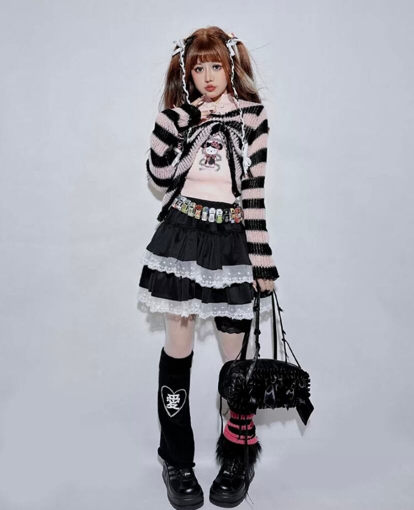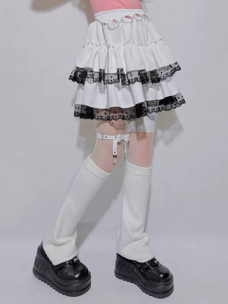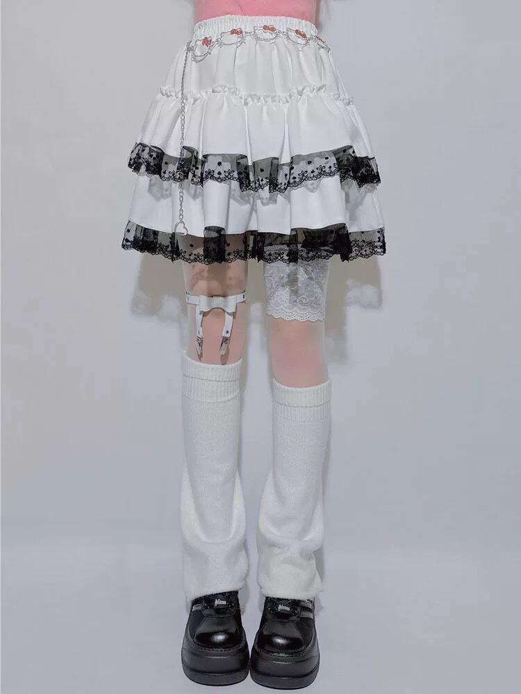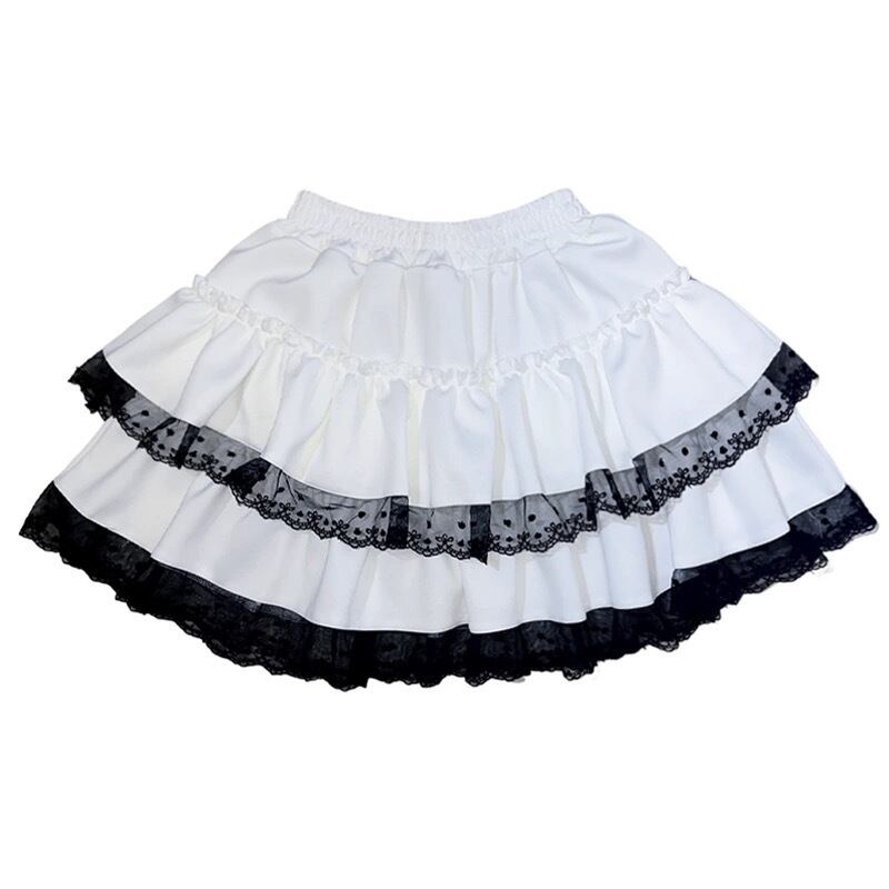 白 黒 ミニスカート ガーリー 可愛い 原宿 シンプル