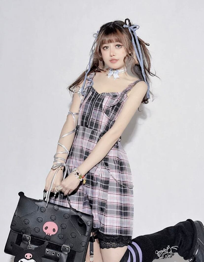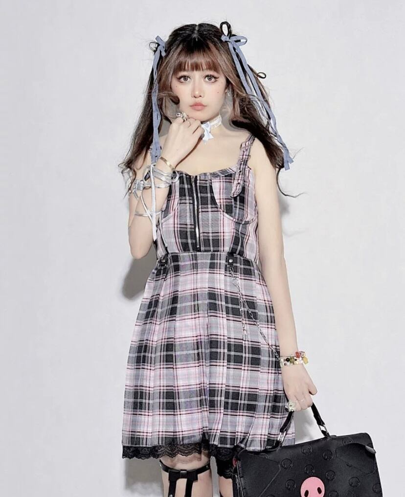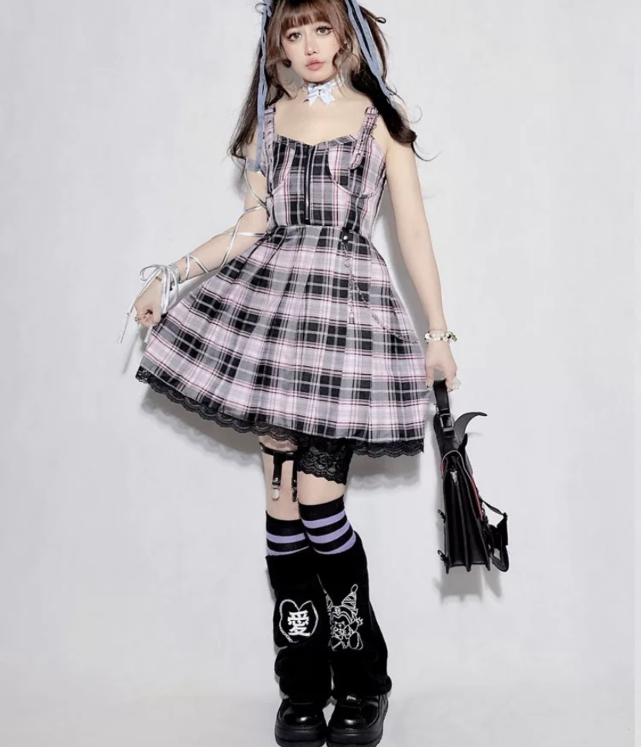 白 ピンク チェック 黒 ガーリー 水色 原宿 ワンピース