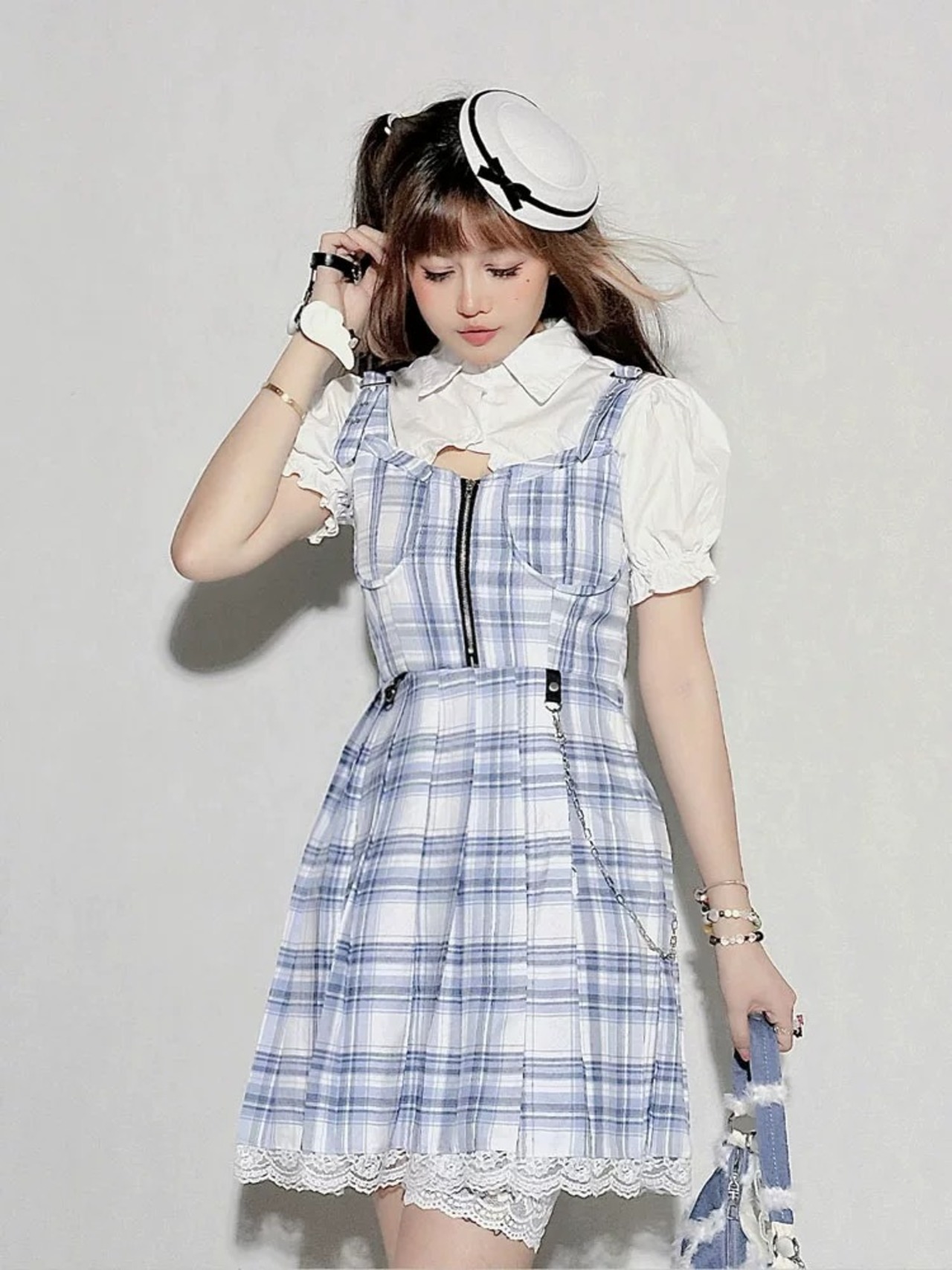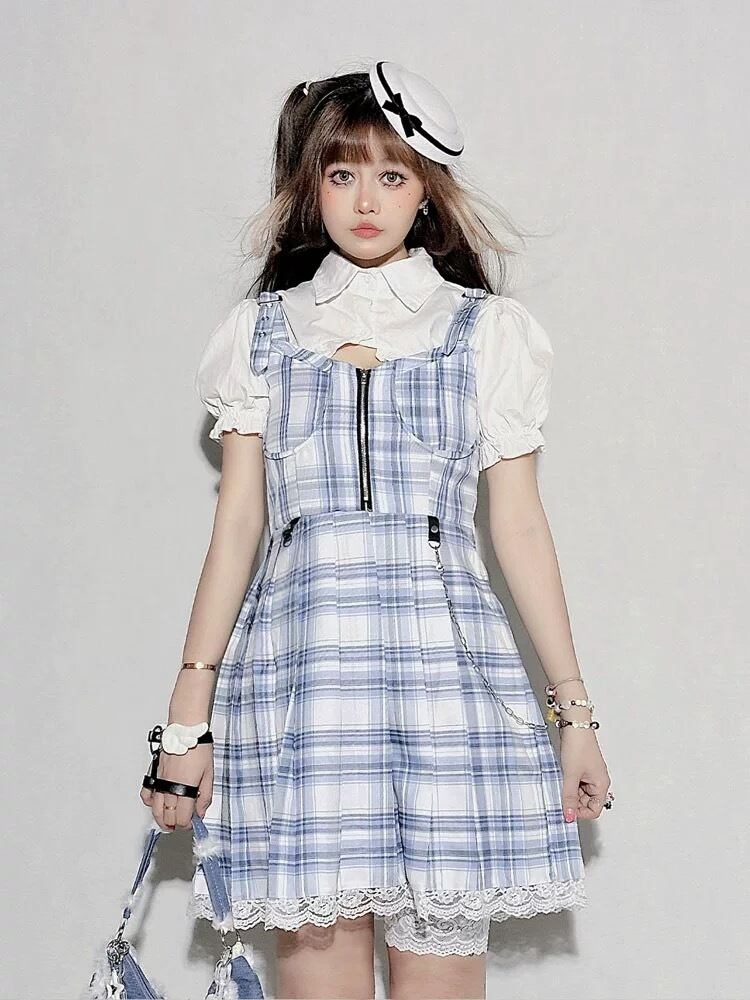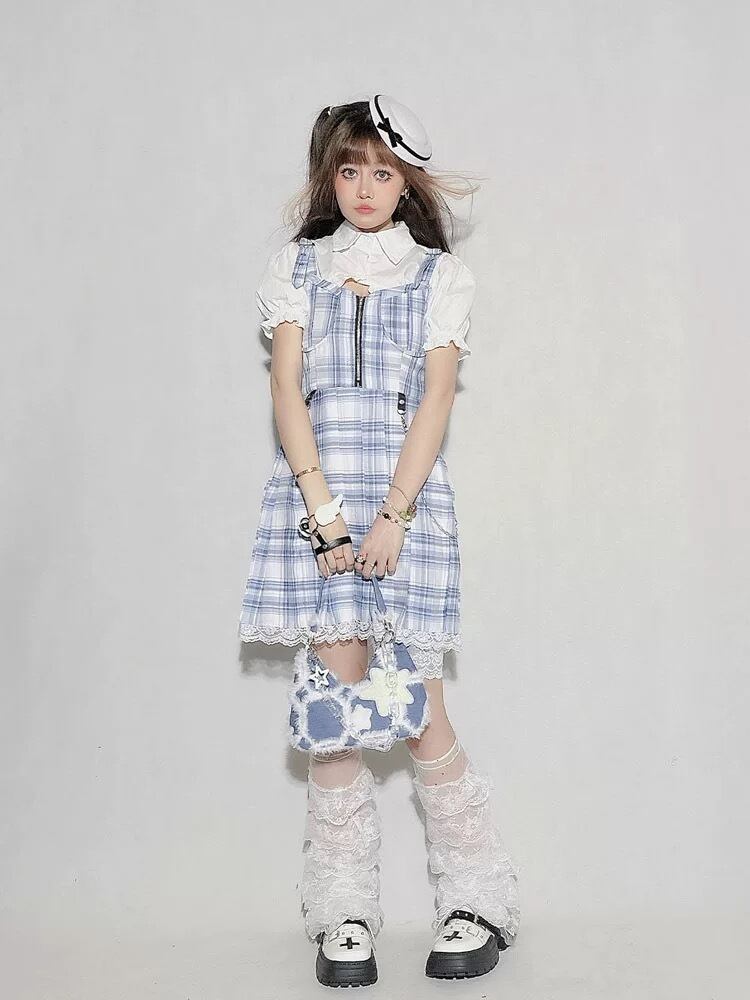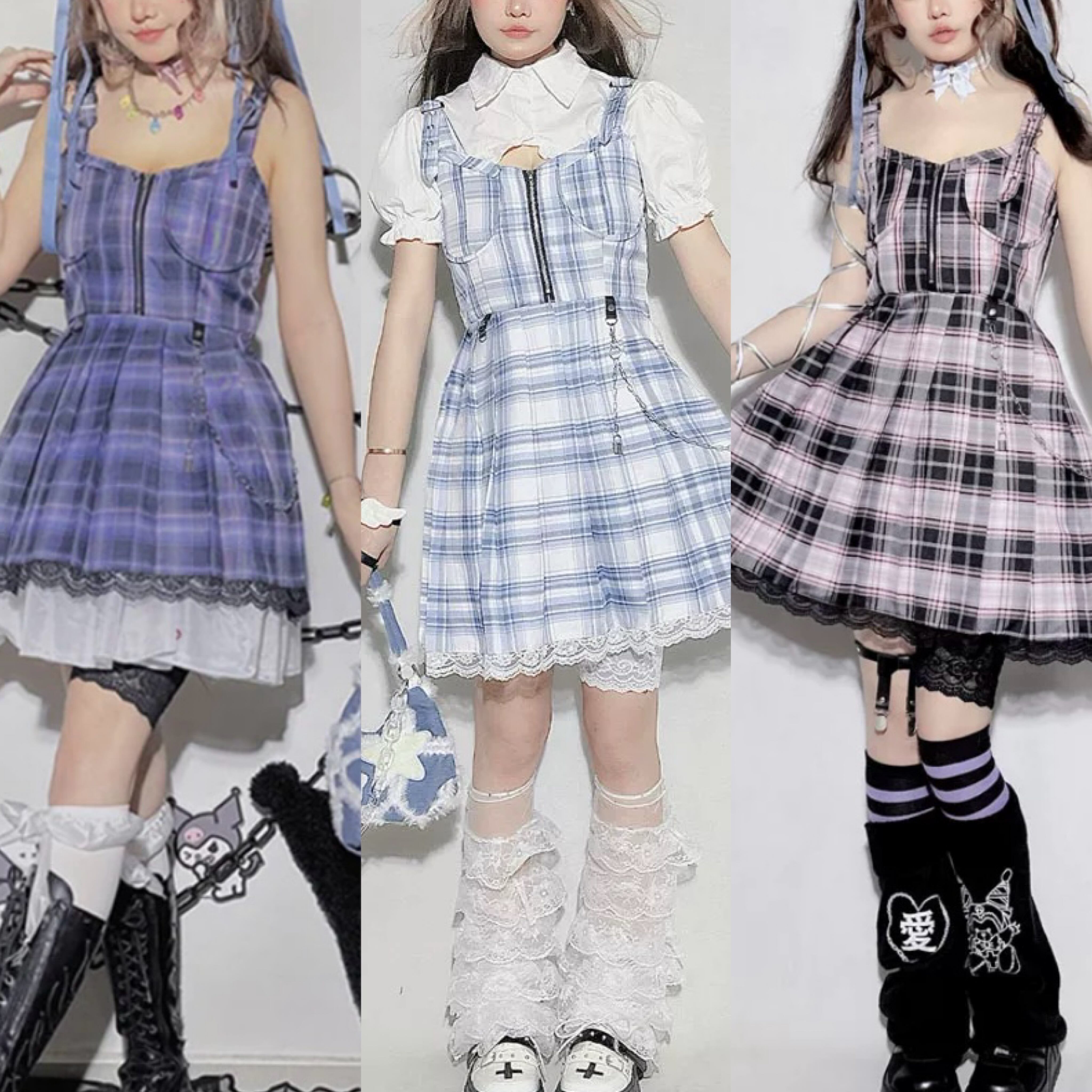 白 ピンク チェック 黒 ガーリー 水色 原宿 ワンピース