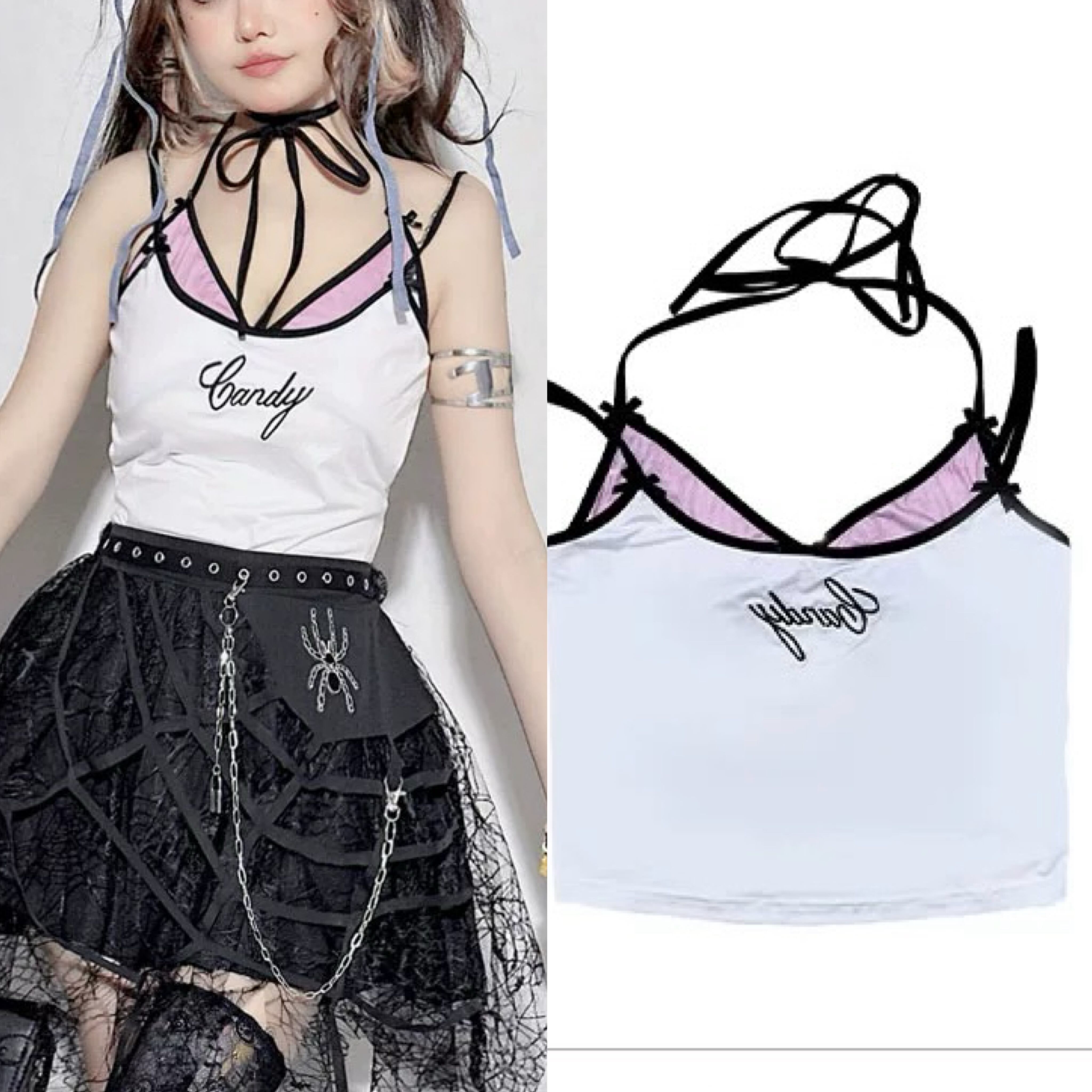 キャミソール 可愛い ギャル ダンス 渋谷 可愛い 原宿 白 ピンク ブラウス