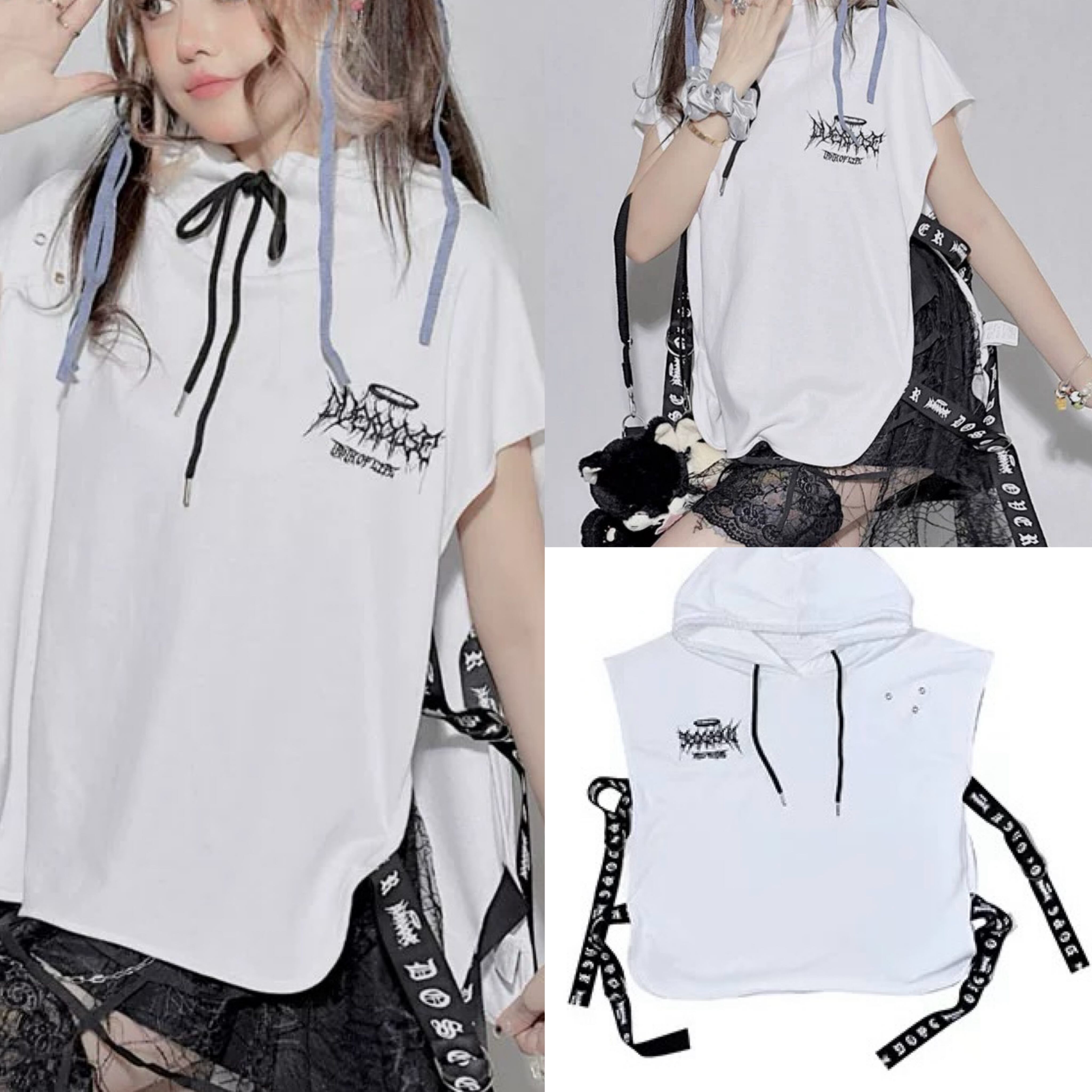 リボン パーカー カジュアル スウェット 白 トレーナー