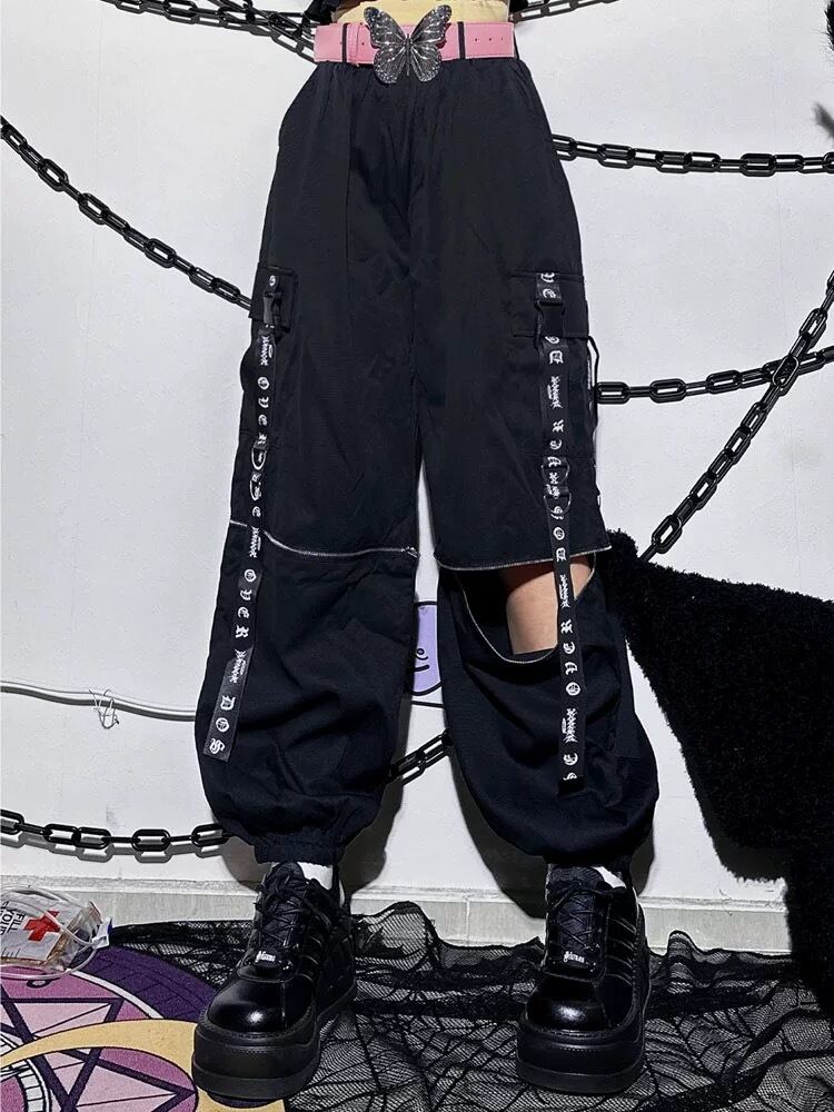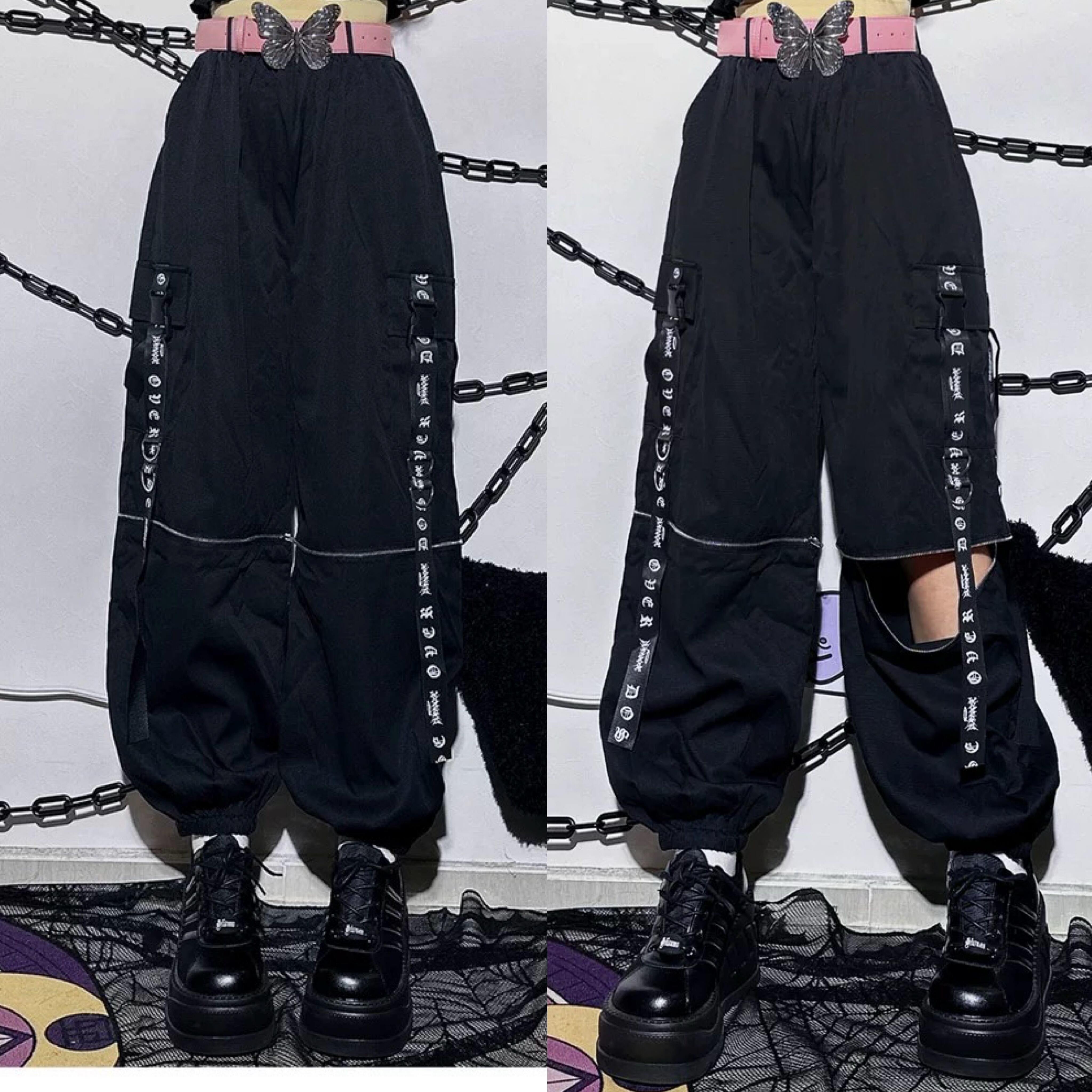 カジュアル パンツ 黒 スウェット 原宿 ダンス ダメージ