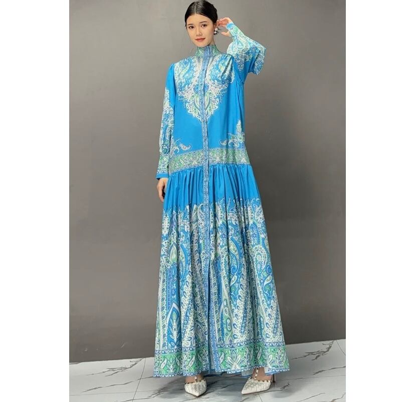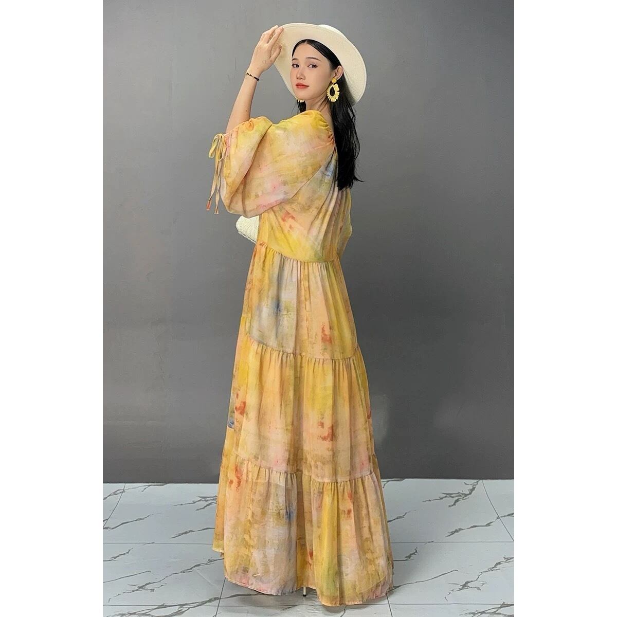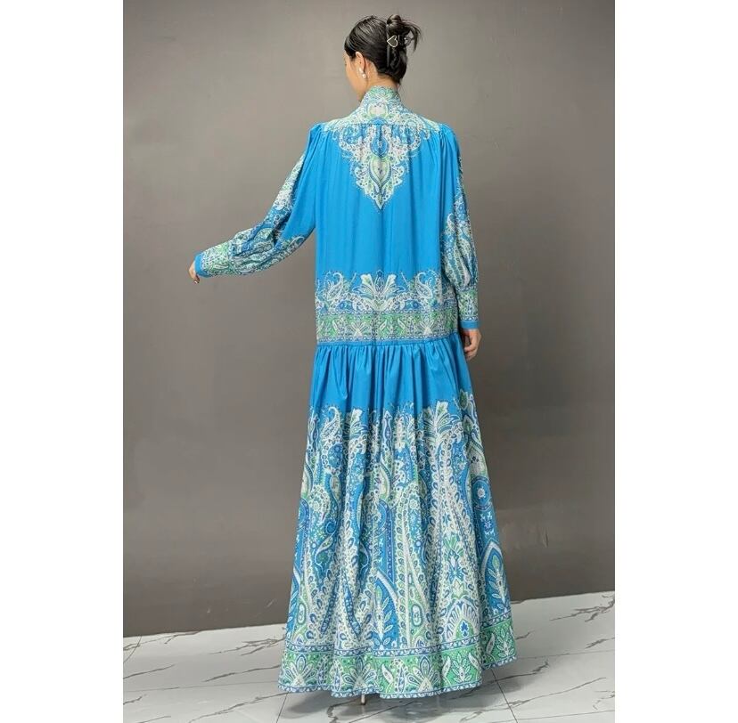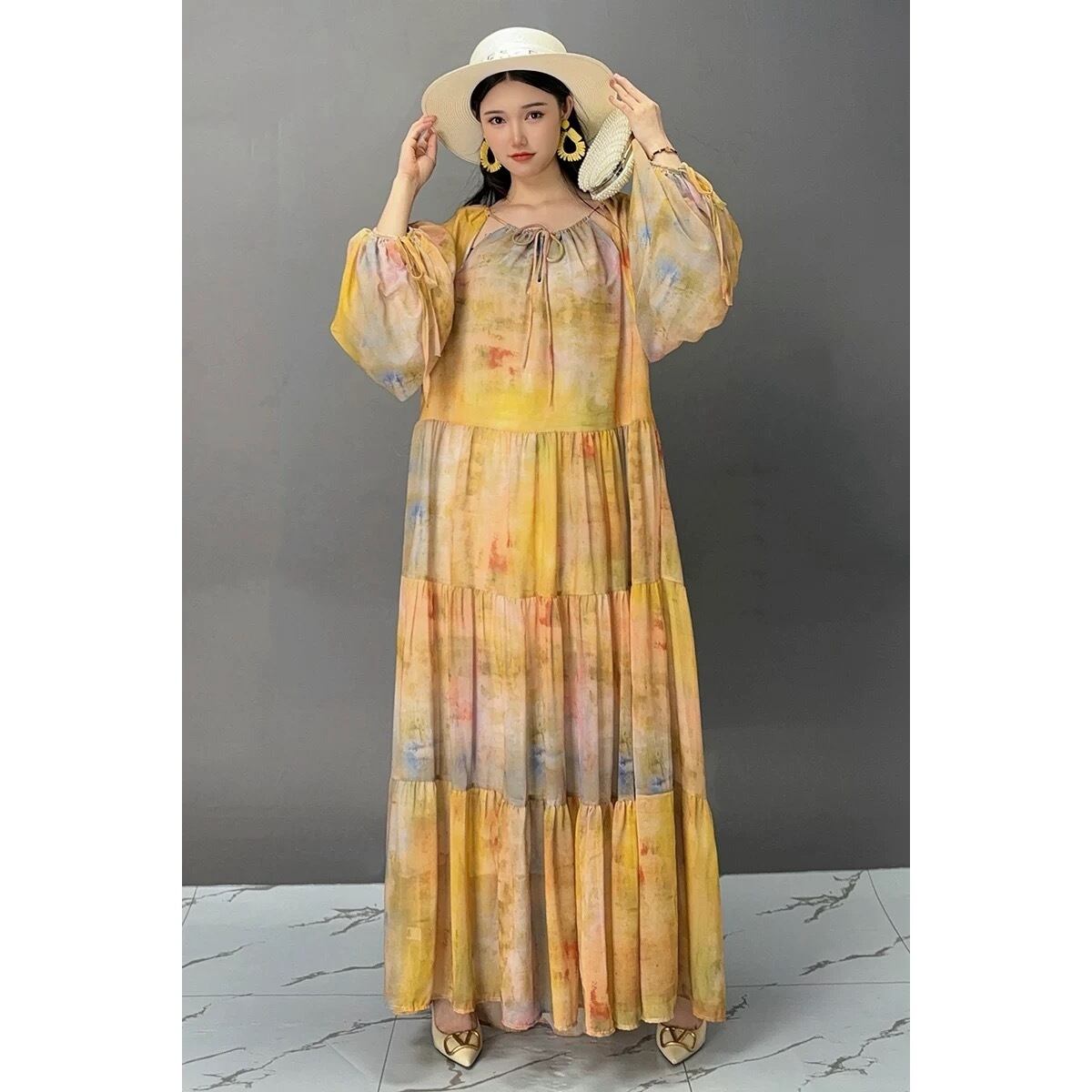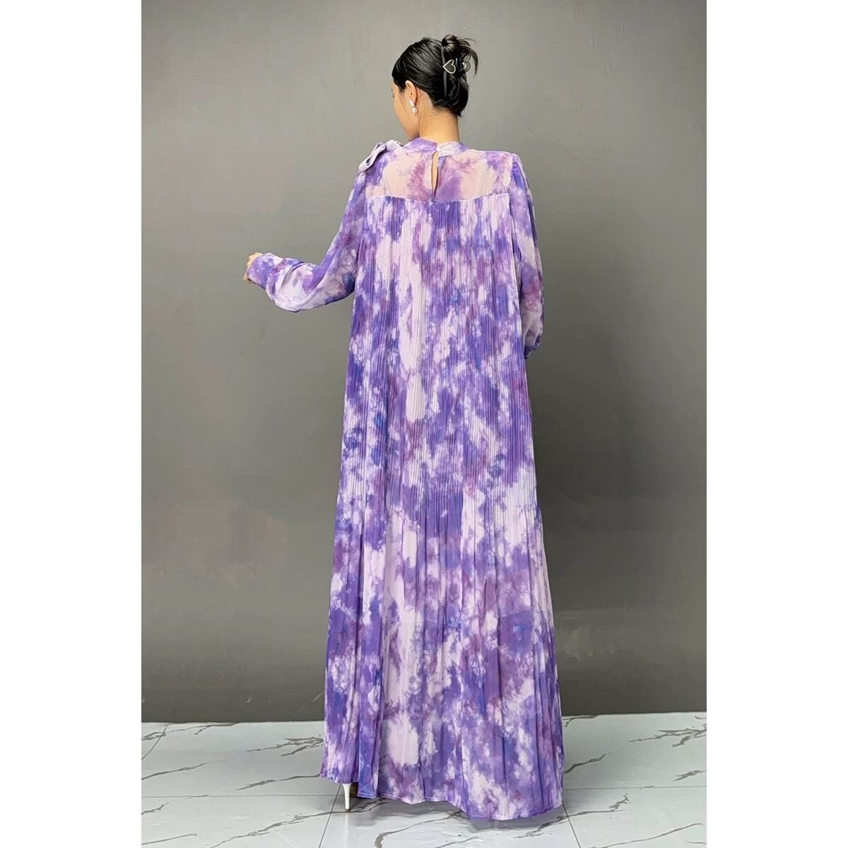 紫 黄色 水色 アジアン 花柄 マキシ ゆったり ブラウス ワンピース XL