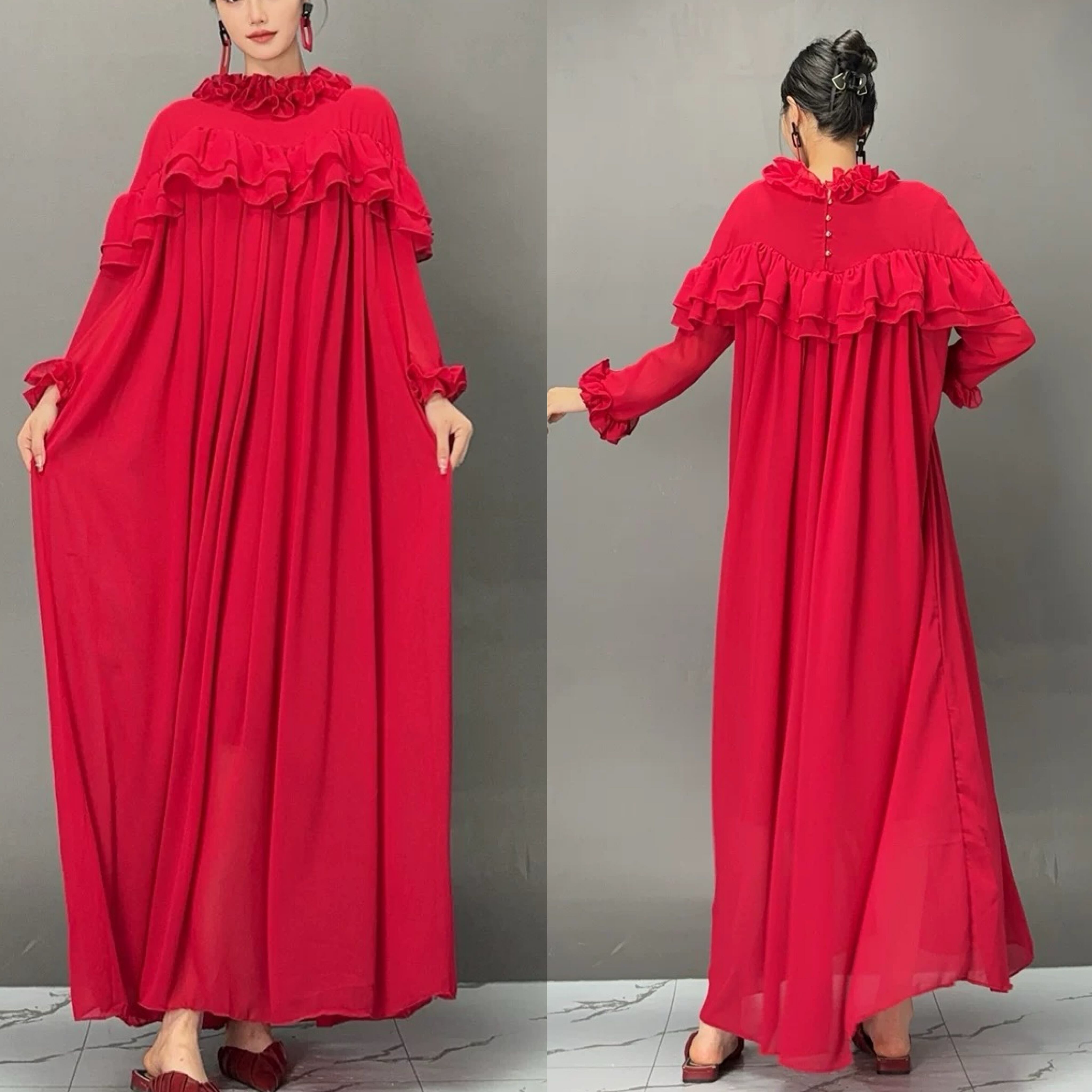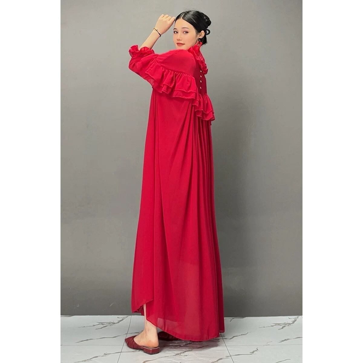 赤 ゆったり ブラウス ワンピース XL エレガント シンプル マタニティ