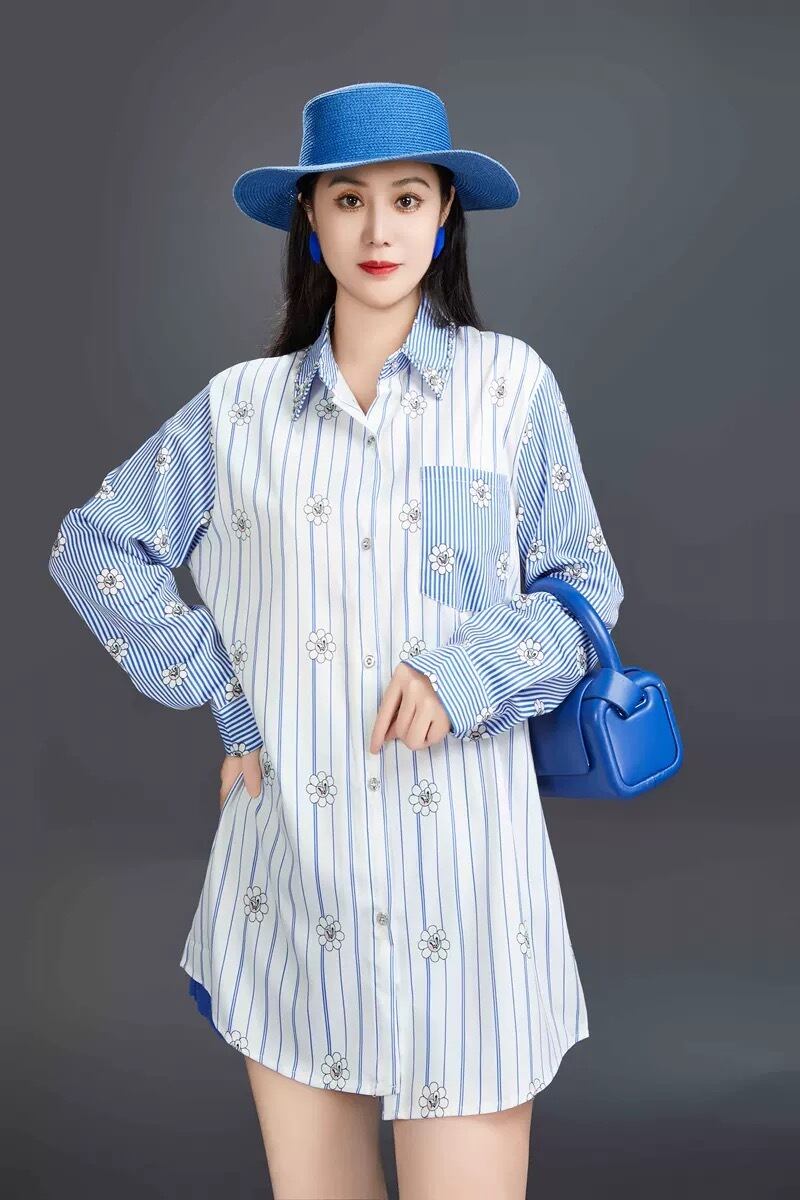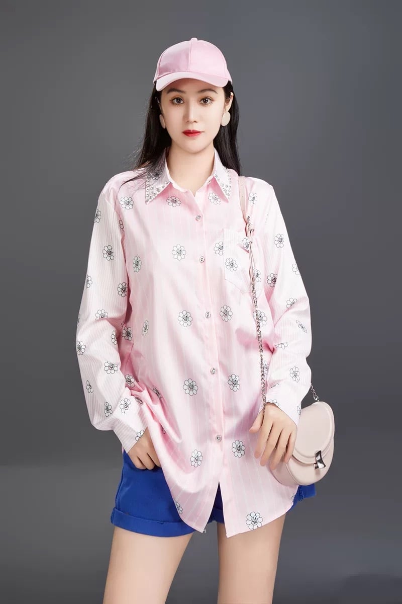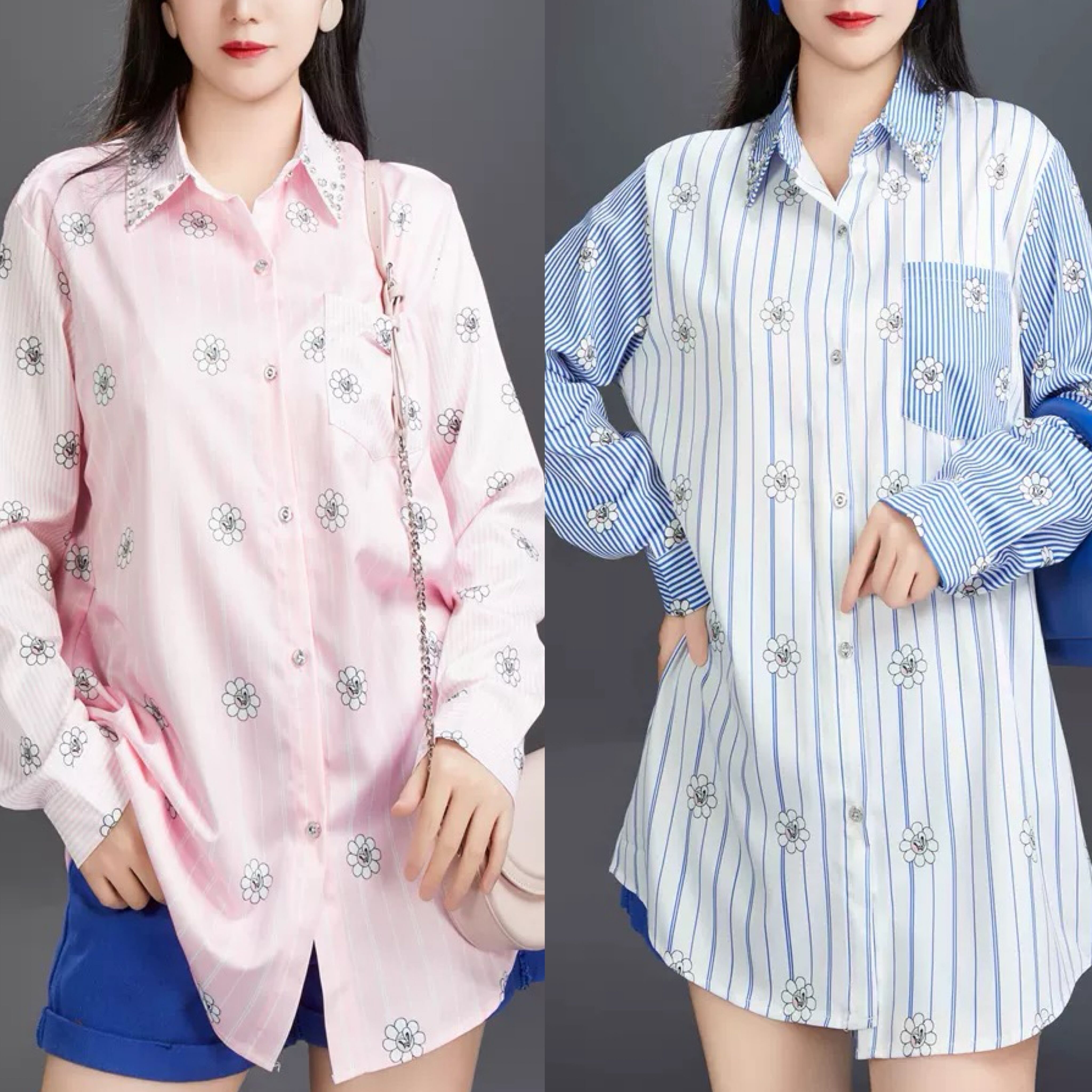ボーダー チェック ストライプ ピンク 水色 ブラウス シャツ トップス