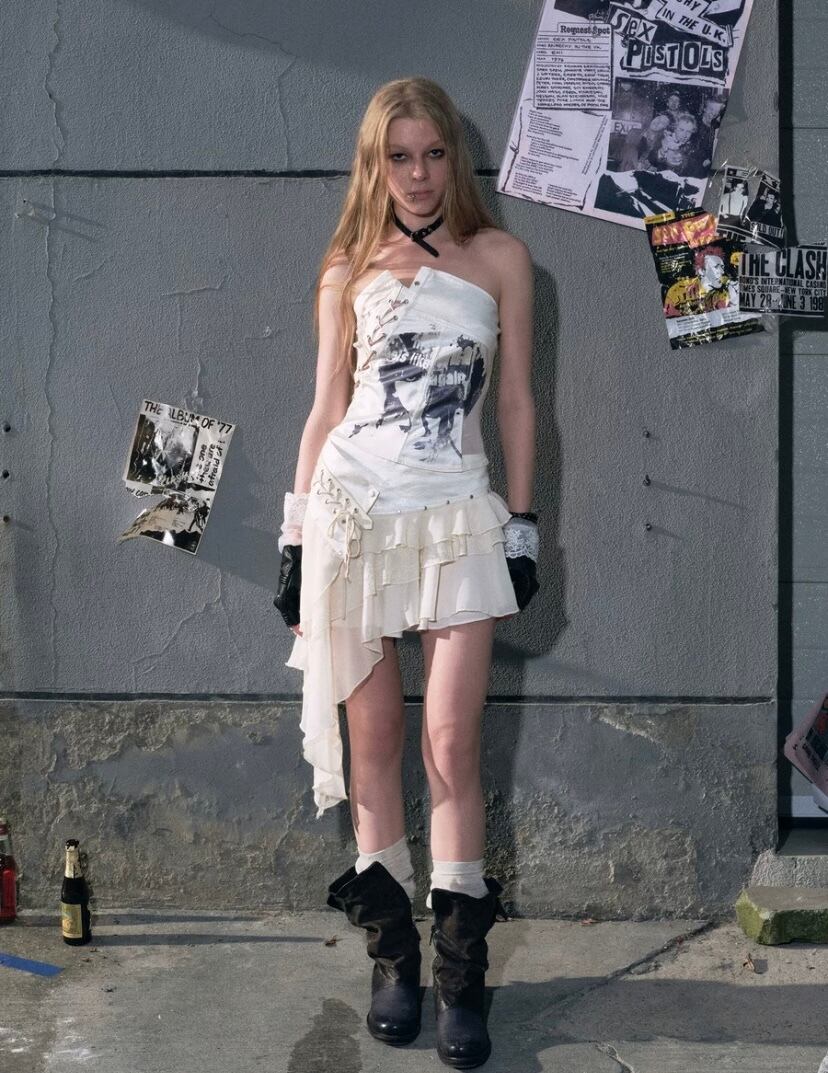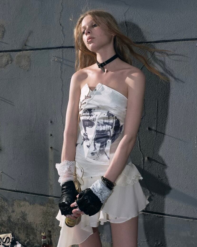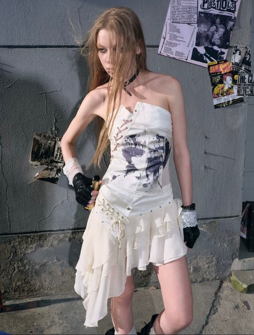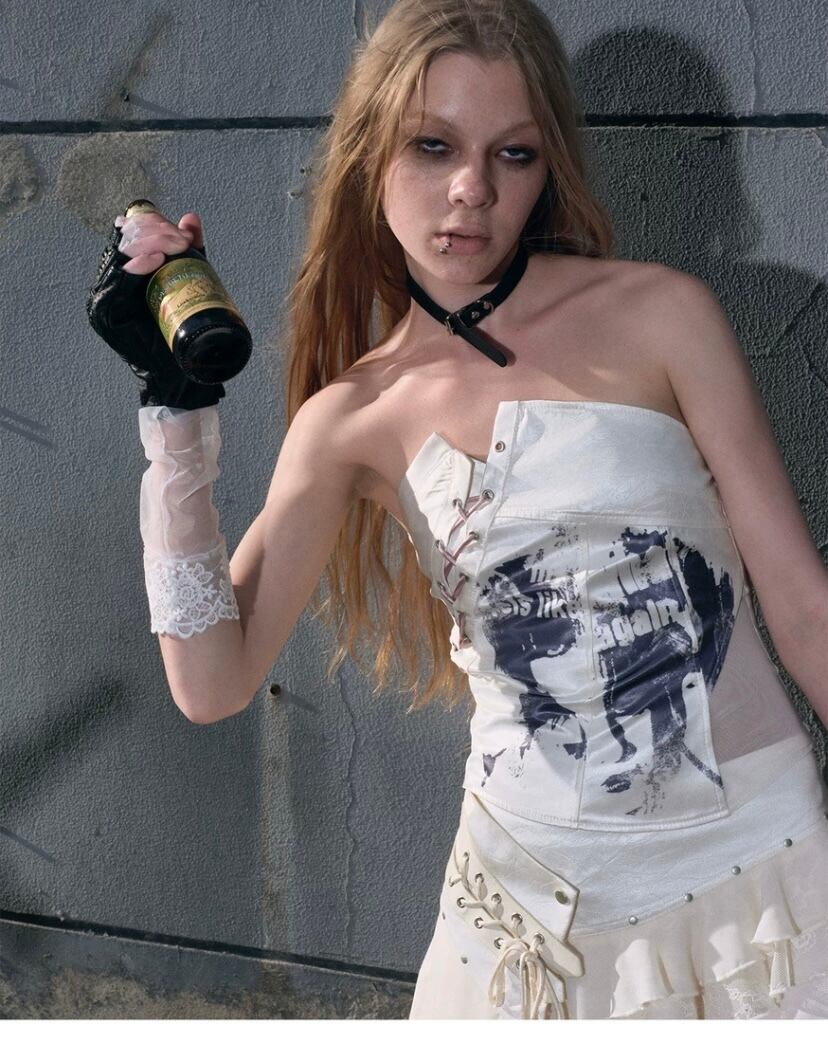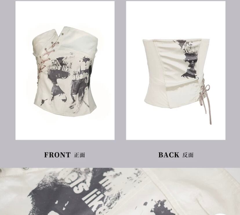【トップス】白 ホワイト ベアトップ チューブトップ 編み上げ ブラウス ロック ダンス