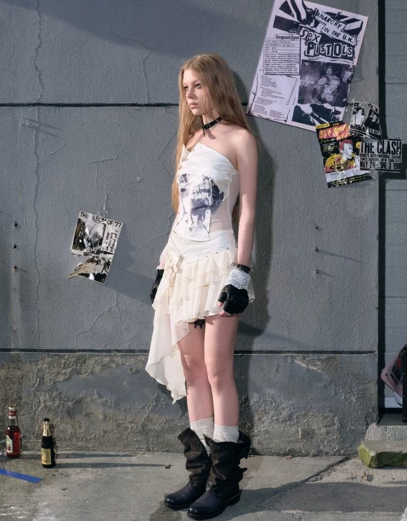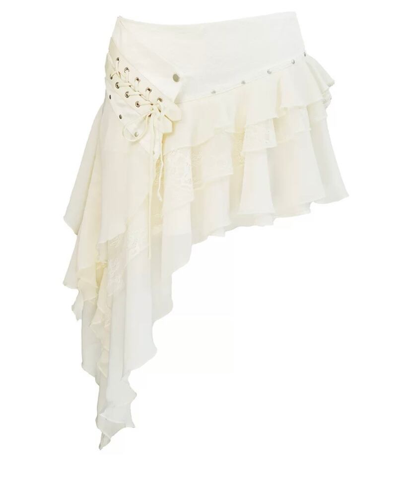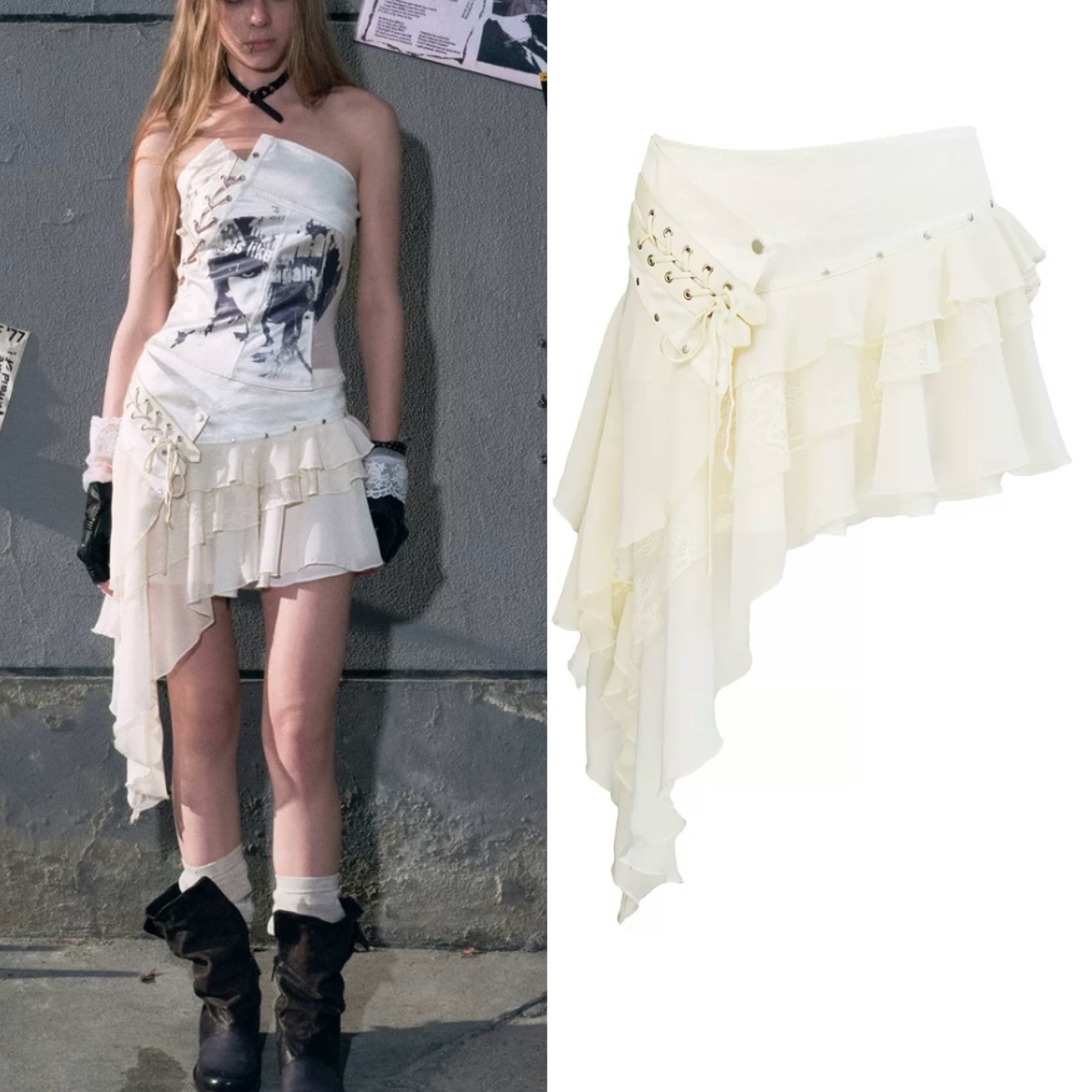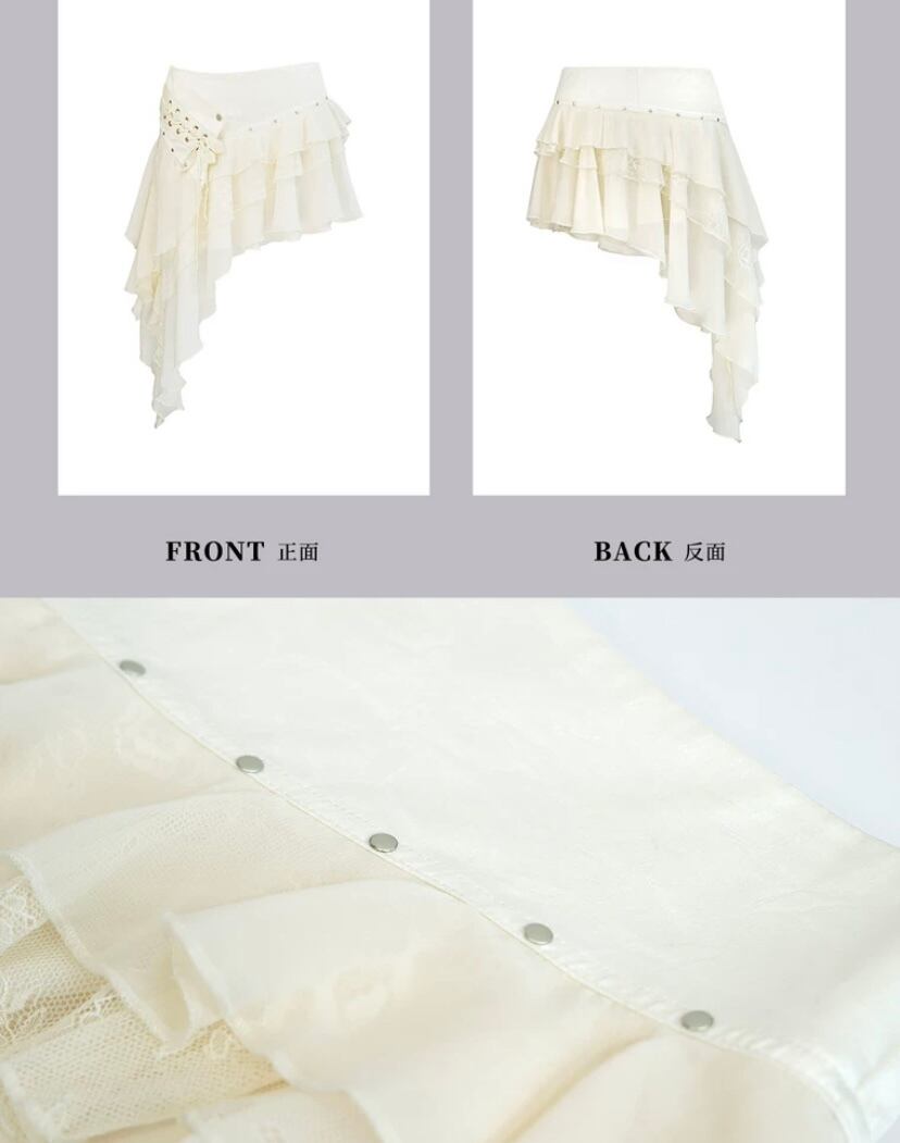 【スカート】白 ホワイト アシンメトリー ロック ミニスカート 原宿