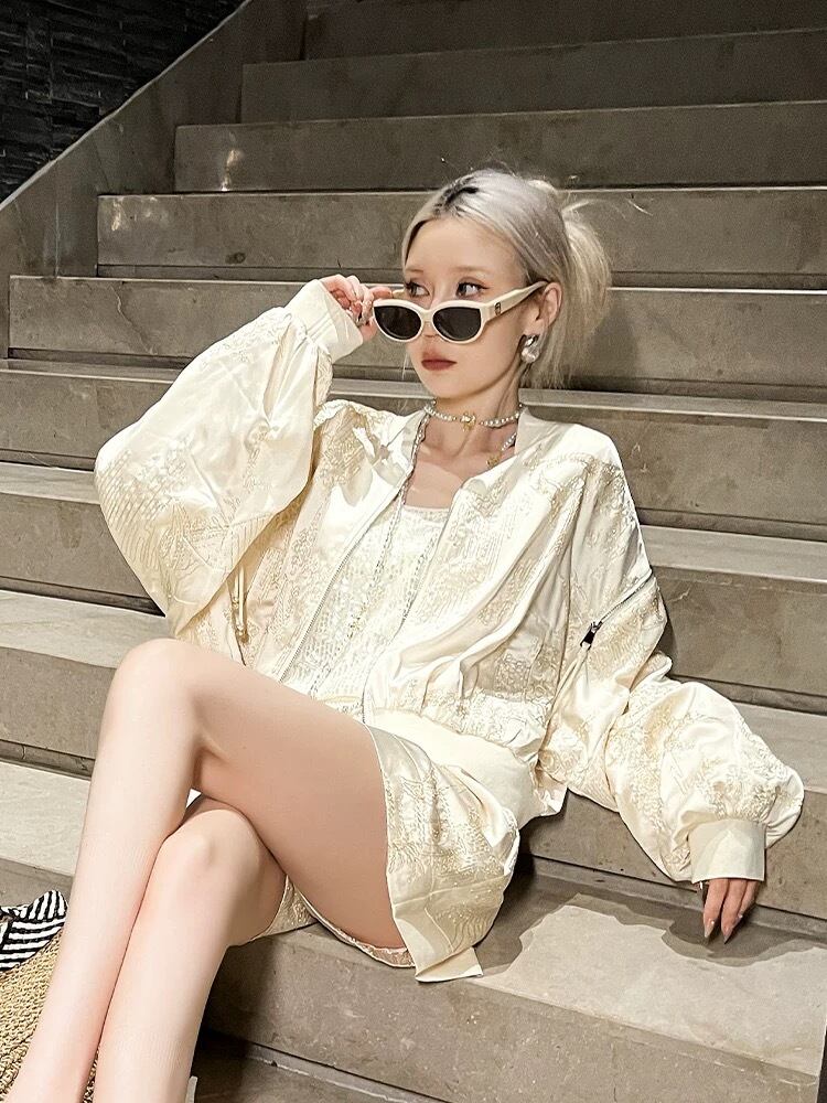 【セットアップ】ジャケット ブルゾン カーディガン 白 黒 カーディガン ストリート