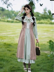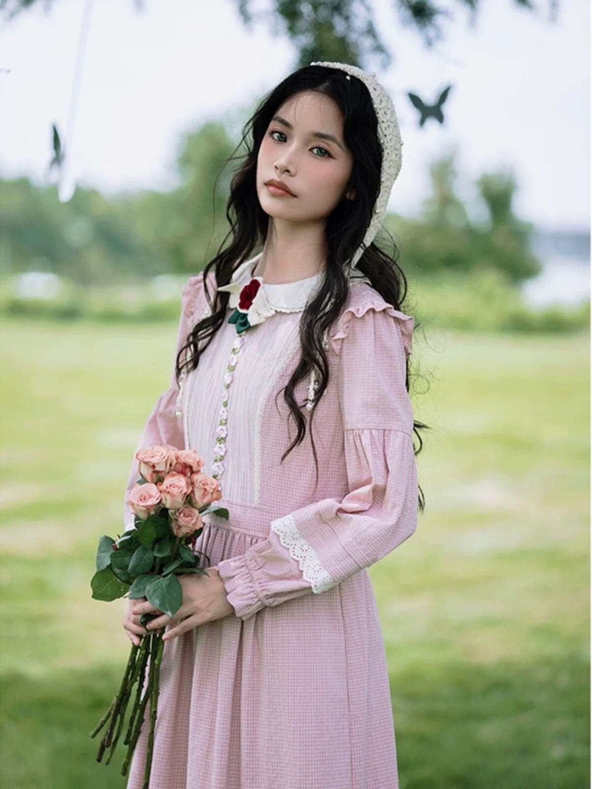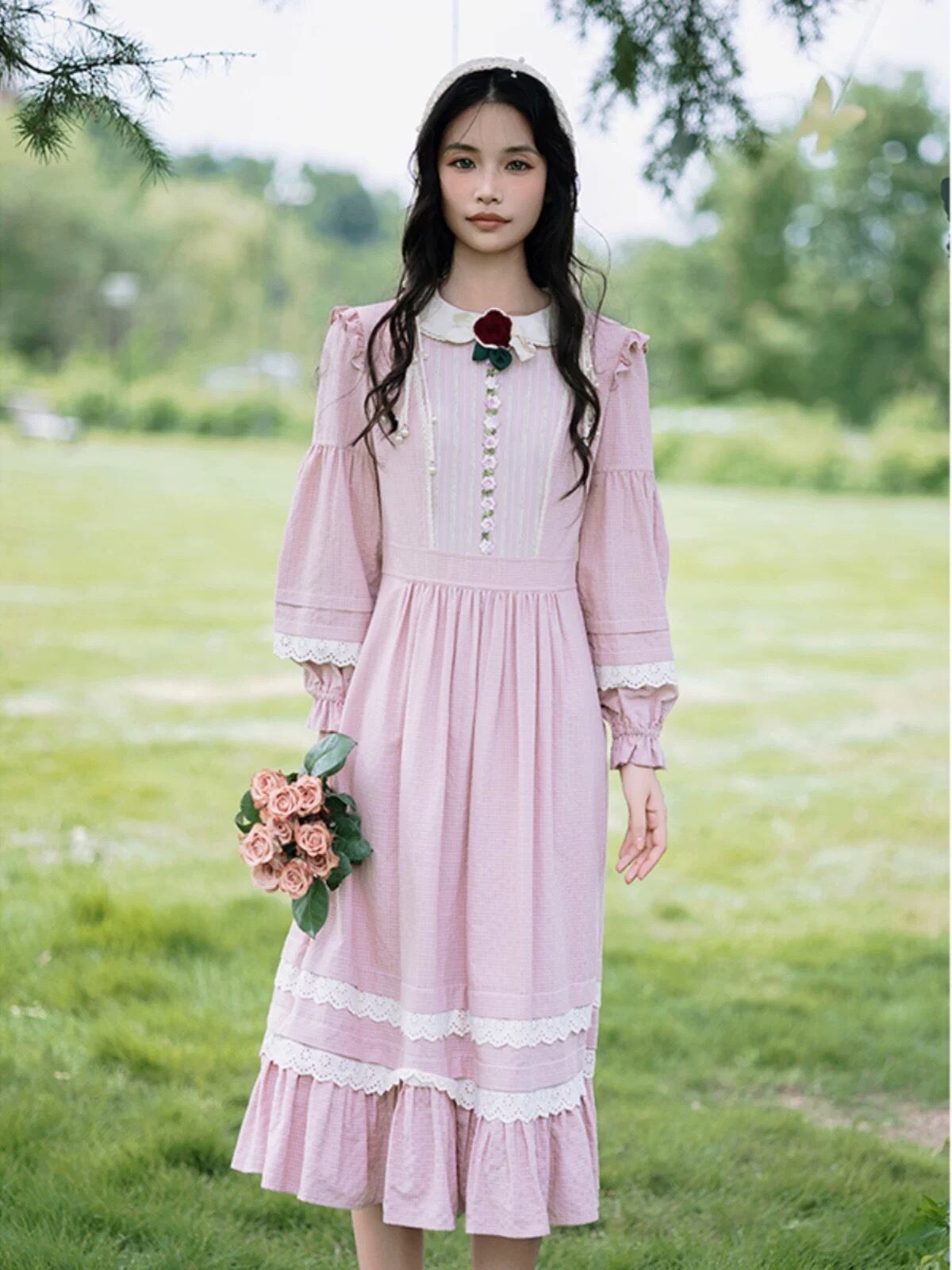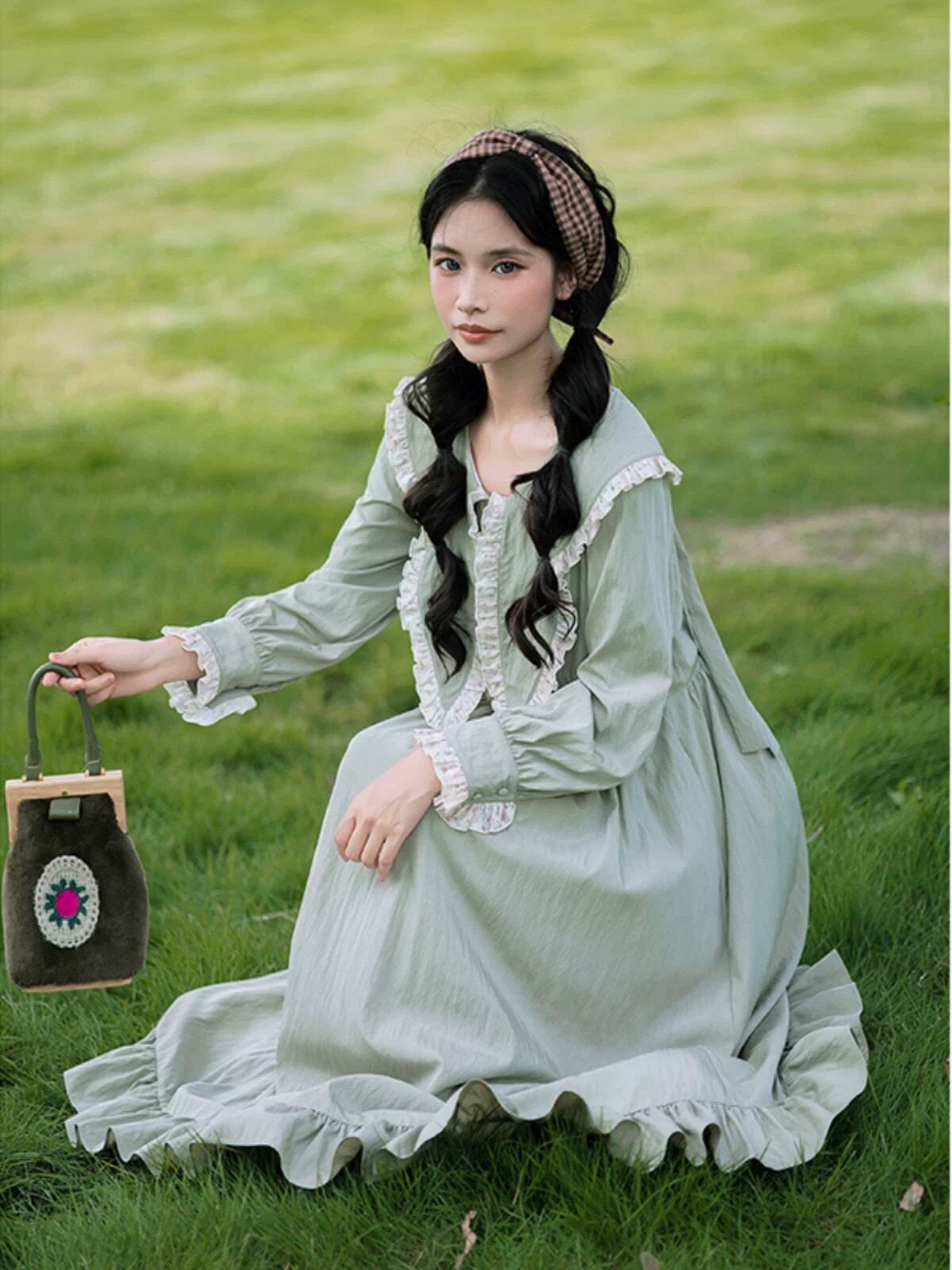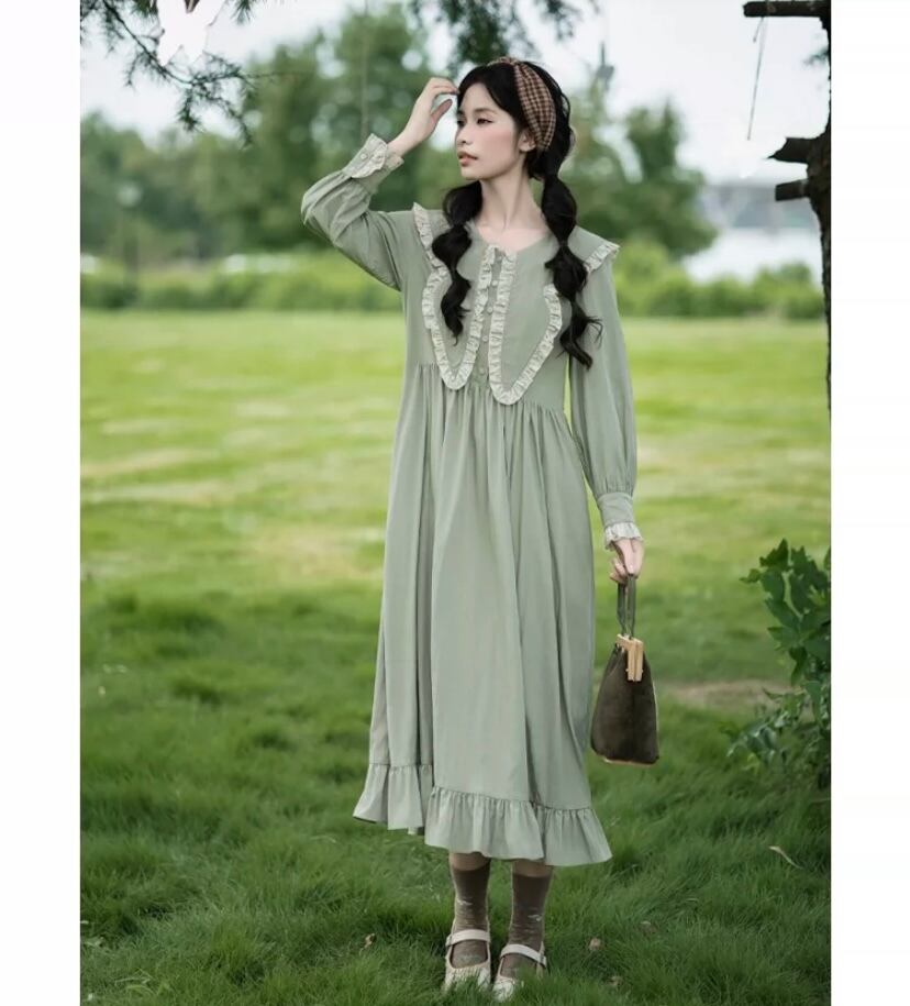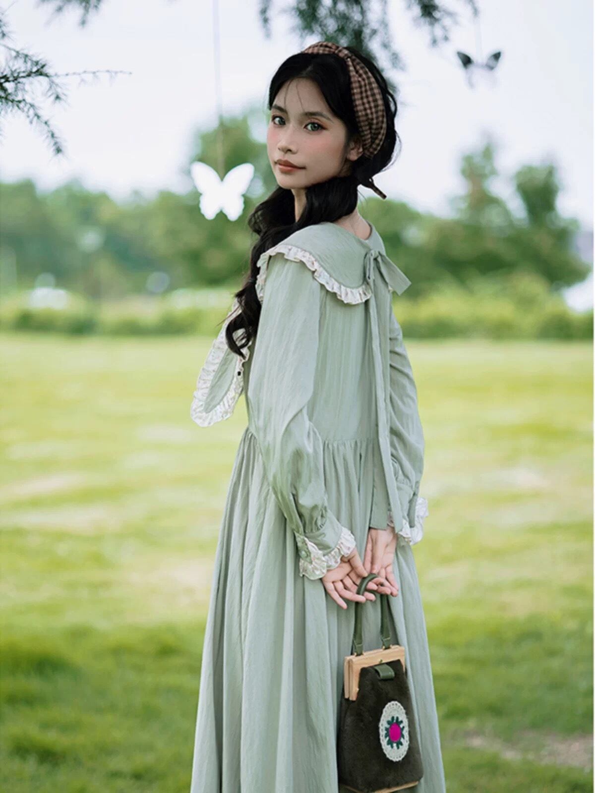 ゆったり ガーリー 緑 ベージュ ピンク リボン XL XXL 丸襟 ブラウス 原宿 ブラウス 森 緑 チェック