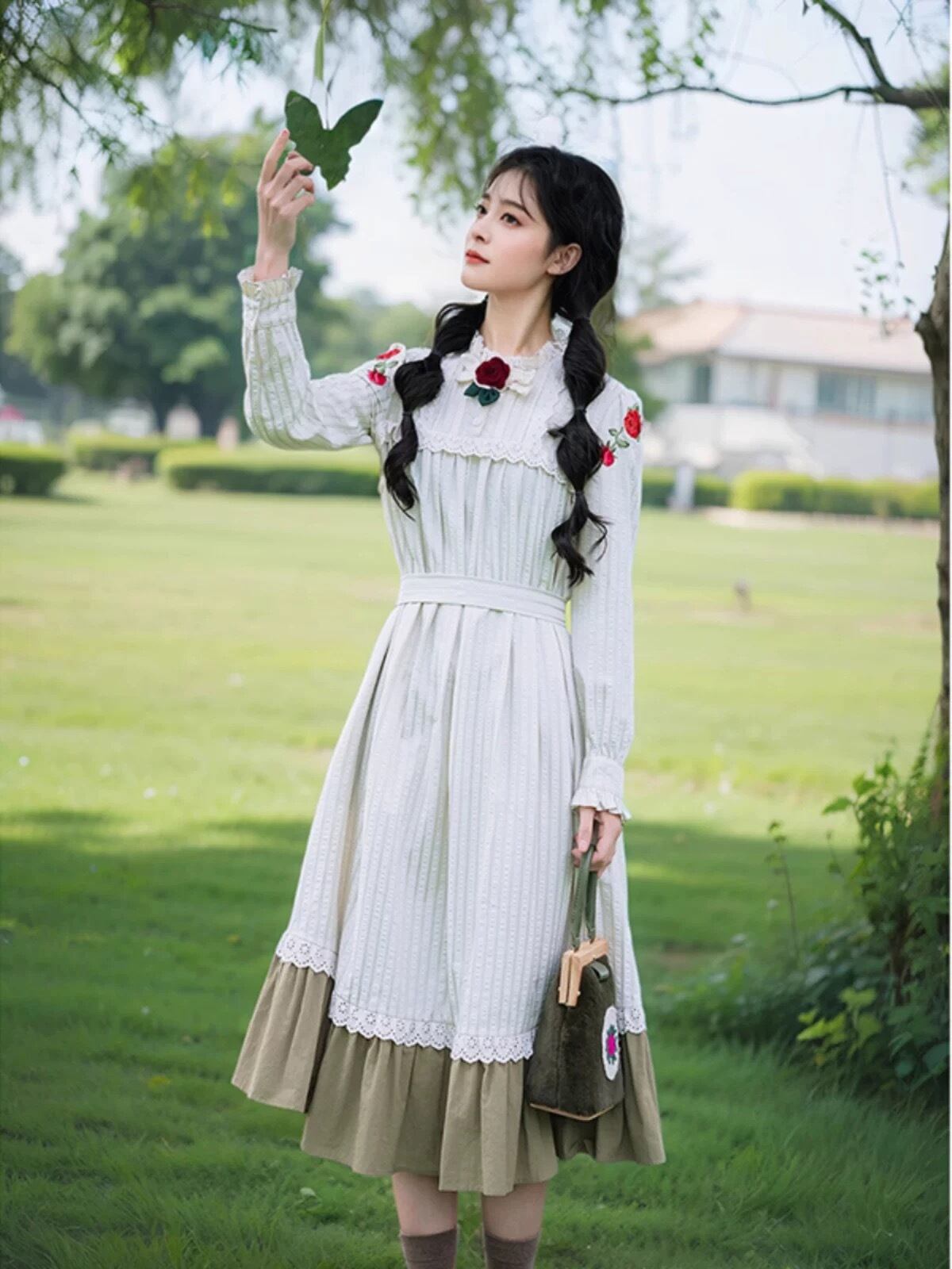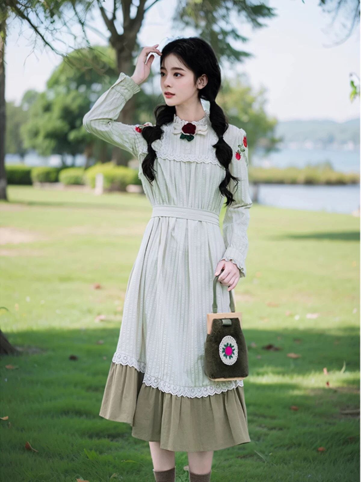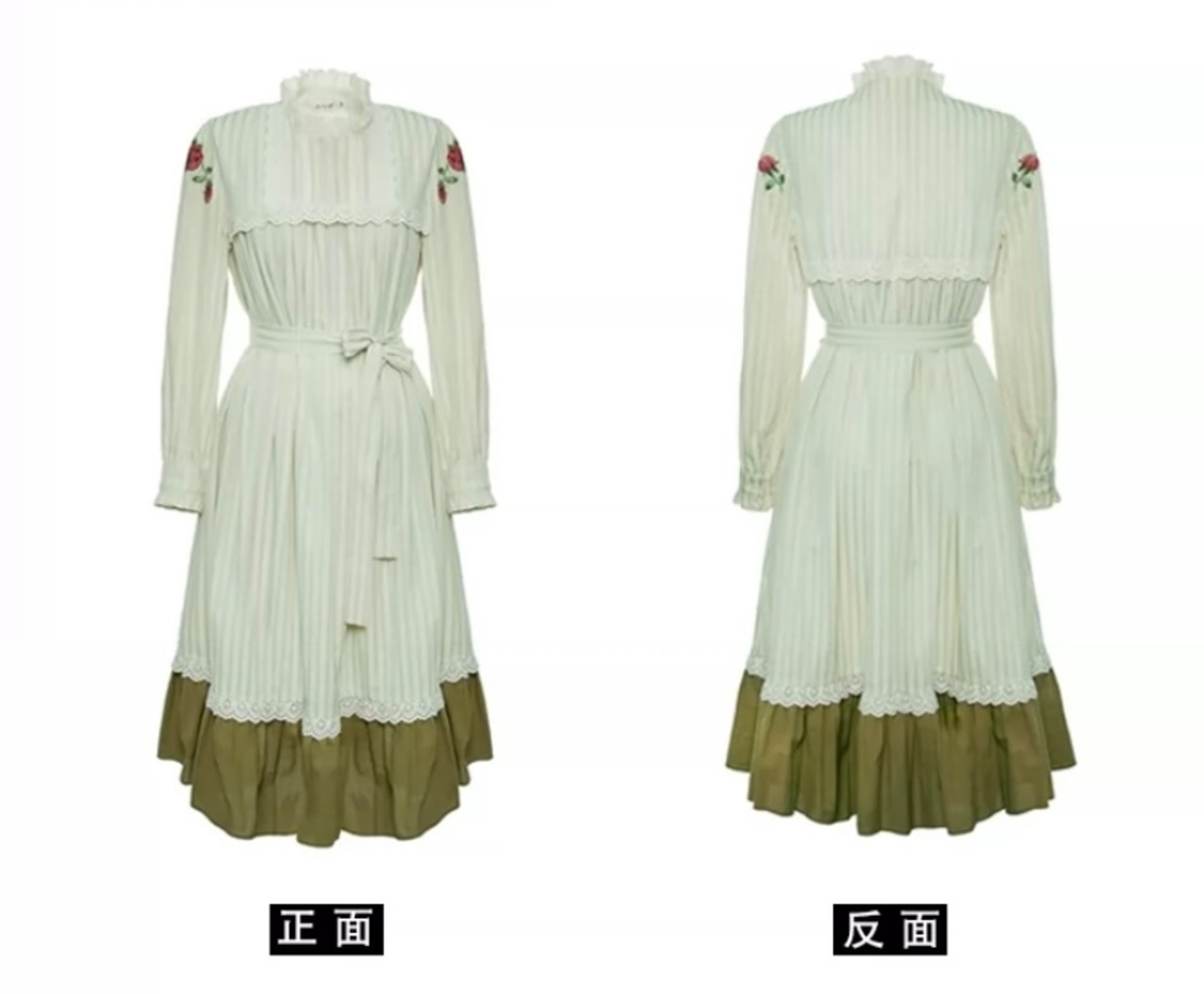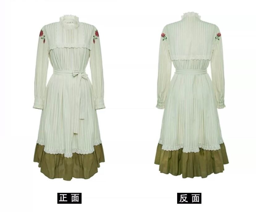 緑 ガーリー 可愛い ワンピース ゆったり 襟 セーラー 原宿 ブラウリボン 薔薇