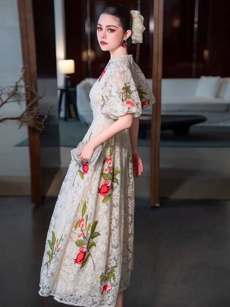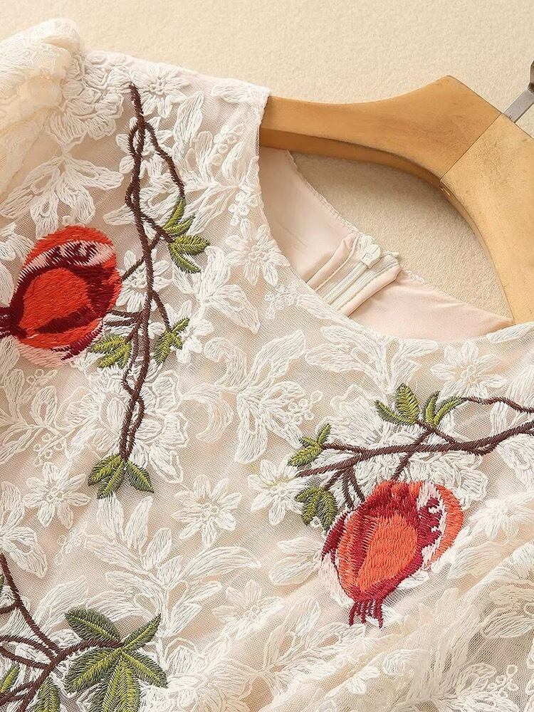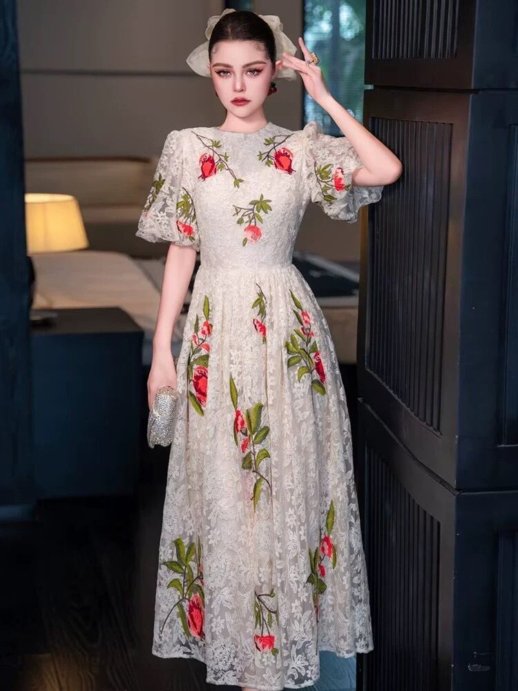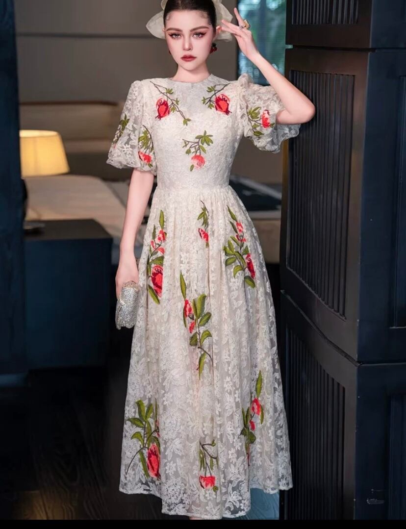 レース 花柄 白 フラワー 赤 XL エレガント ブラウス ワンピース 可愛い