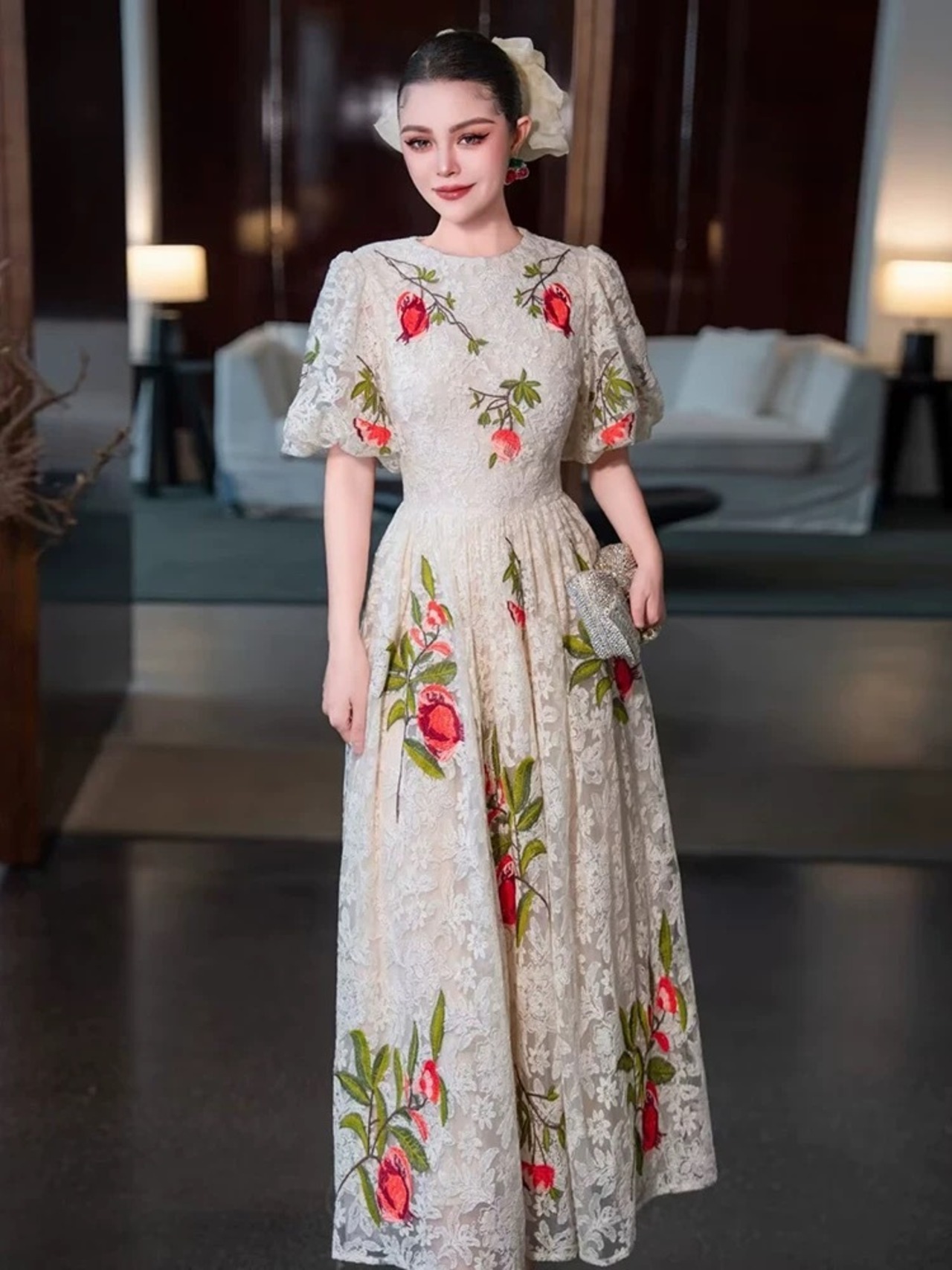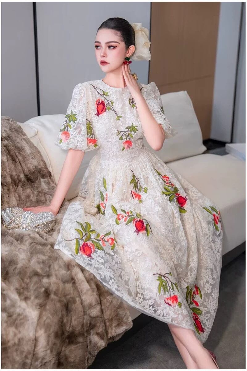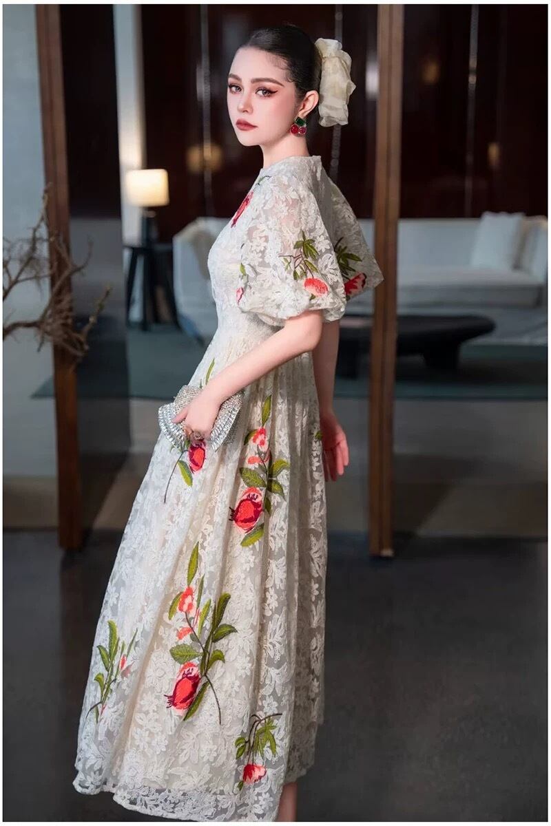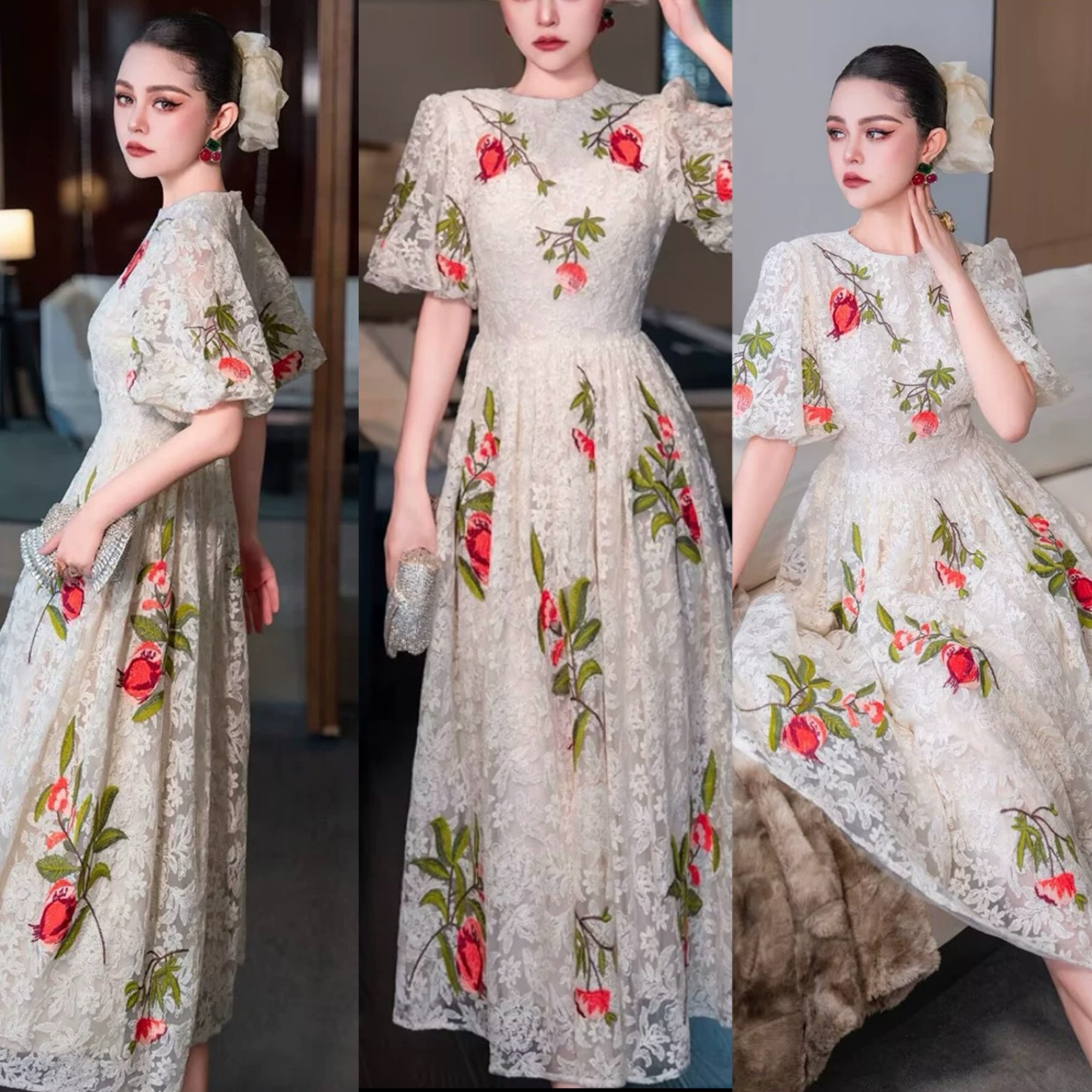 レース 花柄 白 フラワー 赤 XL エレガント ブラウス ワンピース 可愛い