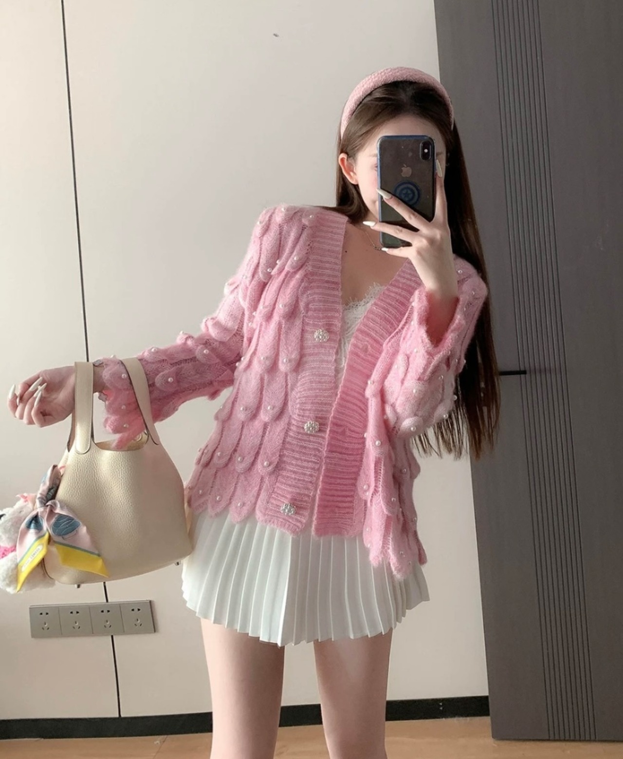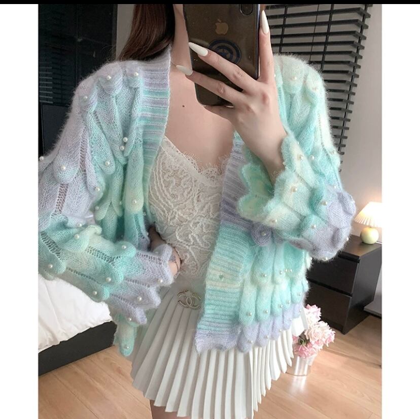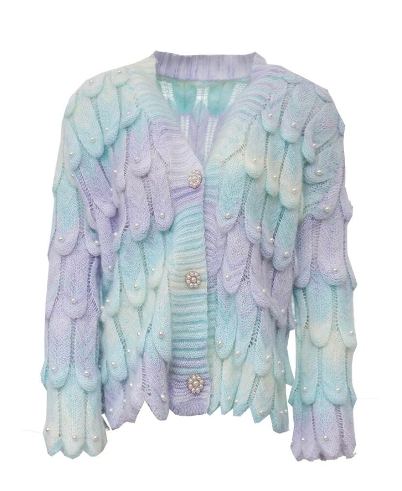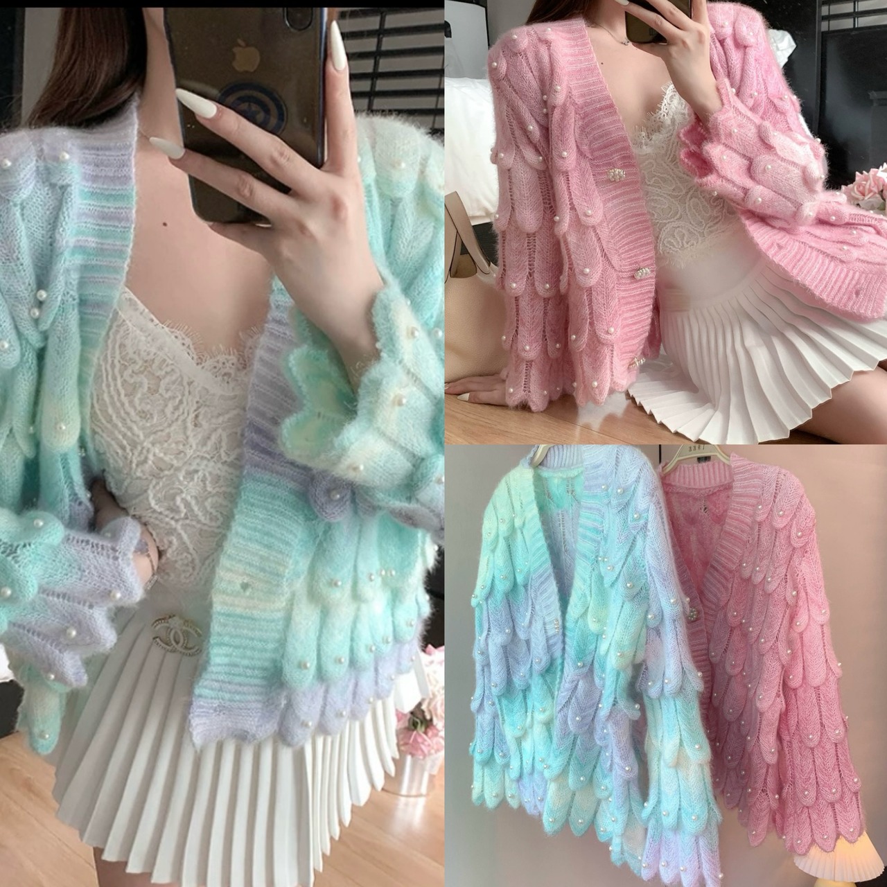 水色 グラデーション ピンク セーター アウター 可愛い ジャケット カーディガン パール 魚 人魚姫